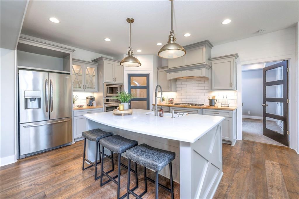 Dramatic $50,000 price adjustment! This exceptional custom-built 1.5-story home by JS Robinson offers a rare blend of thoughtful design and timeless craftsmanship. Situated in the desirable Bristol Ridge subdivision, the home features wide-plank hardwood floors, a spacious great room with a masonry fireplace, and a well-appointed kitchen with granite and butcher block countertops, stainless steel appliances, an oversized walk-in pantry, and a charming built-in breakfast nook with shiplap and bench seating. With 6 true bedrooms, including one that functions beautifully as a private home office, this home provides flexibility for a variety of lifestyles. The main-floor primary suite includes a spa-inspired en suite. The main level also includes a dedicated laundry room and access to a screened-in patio with privacy and sun protecting drapery— perfect for enjoying peaceful evenings. Upstairs, a bonus loft offers versatile space for a second living area, playroom, or study. The finished lower level includes an additional great room, a sixth bedroom, and a full bathroom—ideal for guests or extended family. The backyard backs to shared green space, creating a sense of openness and privacy that is hard to find. Custom finishes and thoughtful details continue throughout this stunning home.