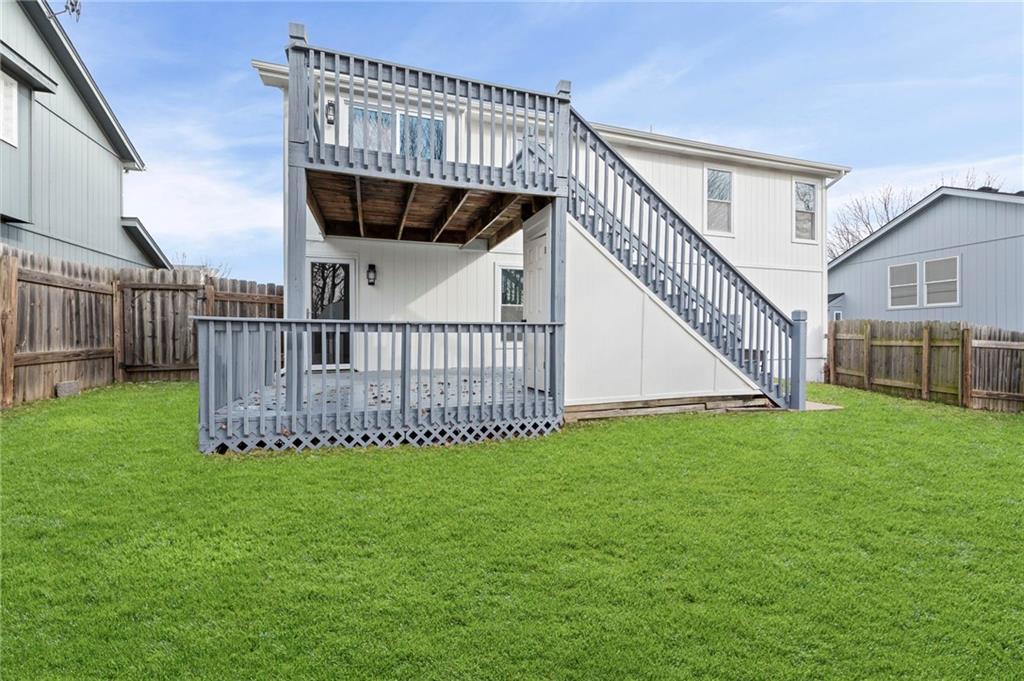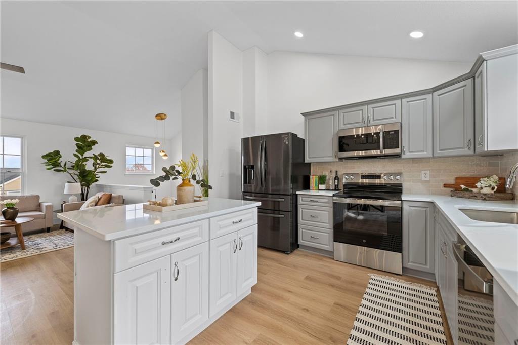This beautifully updated 3-bedroom, 2-bath home offers 1,686 square feet of modern comfort in the desirable Line Creek Meadows subdivision. The bright and open floor plan features a fully updated kitchen with freshly painted cabinetry, quartz countertops, stainless steel appliances, and a brand-new center island designed for everyday living and entertaining. The adjoining dining area opens through sliding glass doors to a spacious deck, creating an ideal indoor–outdoor flow. The inviting family room includes a gas fireplace that serves as a warm focal point for the main living space. The primary bedroom offers a private, updated bath with a new vanity, new flooring, a beautifully tiled shower, and modern lighting. The main bathroom has also been refreshed with new flooring, updated lighting, and contemporary finishes. New flooring is found throughout the home, and the exterior has been freshly painted to enhance curb appeal. The walkout basement features new luxury vinyl plank flooring, an updated laundry area with the washer and dryer included, and direct access to a second deck that overlooks the backyard. A small storage shed is located at the rear of the property, offering additional convenience for tools and outdoor equipment. This home is located in the Platte County R-III School District and is served by Barry Elementary School, Platte Purchase Middle School, and Platte County High School. Buyers are encouraged to verify school boundaries with the district. Convenient access to major highways including 152, I-29, and MO-9 makes commuting easy, and nearby attractions include Line Creek Park and Ice Arena, Line Creek Trail, the Barry Road retail corridor, and the Zona Rosa shopping and entertainment district. With modern updates, multiple outdoor living spaces, and a prime Northland location, this move-in-ready home is ready to impress. Schedule your showing today.