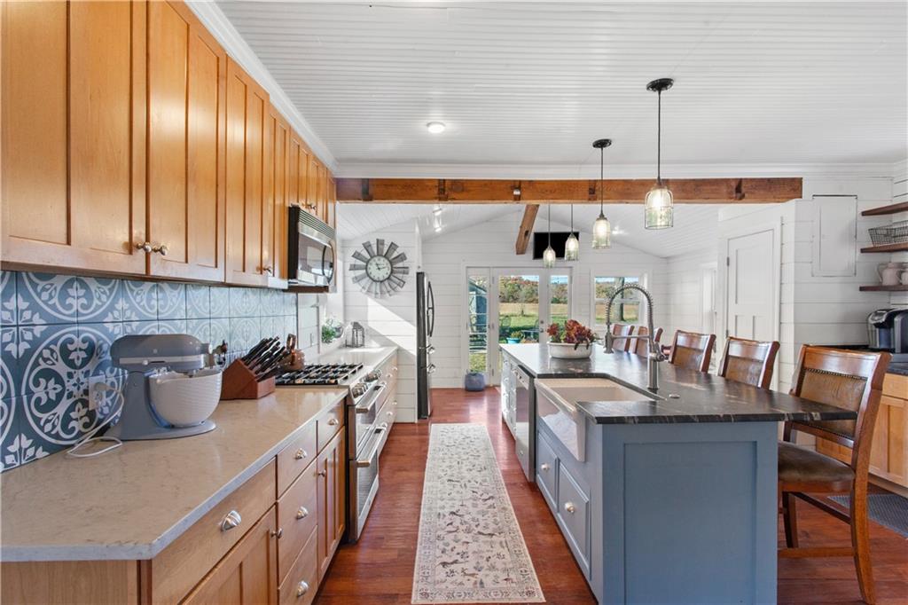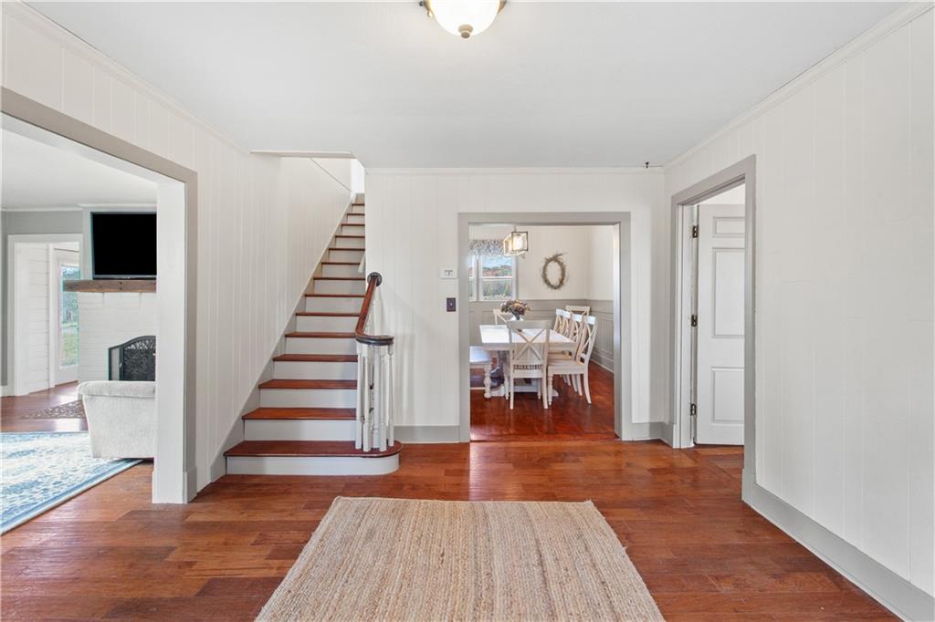 Charming country colonial on 15 acres with a pond and horse facilities. Welcome to this beautifully maintained colonial home nestled on 15 acres of peaceful countryside. This 4-bedroom, 2-bathroom blends country and classic charm, offering a retreat for horse enthusiasts and country living seekers alike. Discover a spacious, fully remodeled country kitchen, ideal for gatherings and everyday living. The island is so big and beautiful, a coffee bar and has a banquet. The formal dining room comfortably seats 10+ perfect for the holidays. Main floor bedroom, full bath and laundry is so convenient. A 4-stall horse barn with a tack room and an outbuilding with concrete flooring and electricity. Two additional storage sheds provide even more space for equipment and tools. There's so much here you really just need to schedule an appointment and come take a look.
