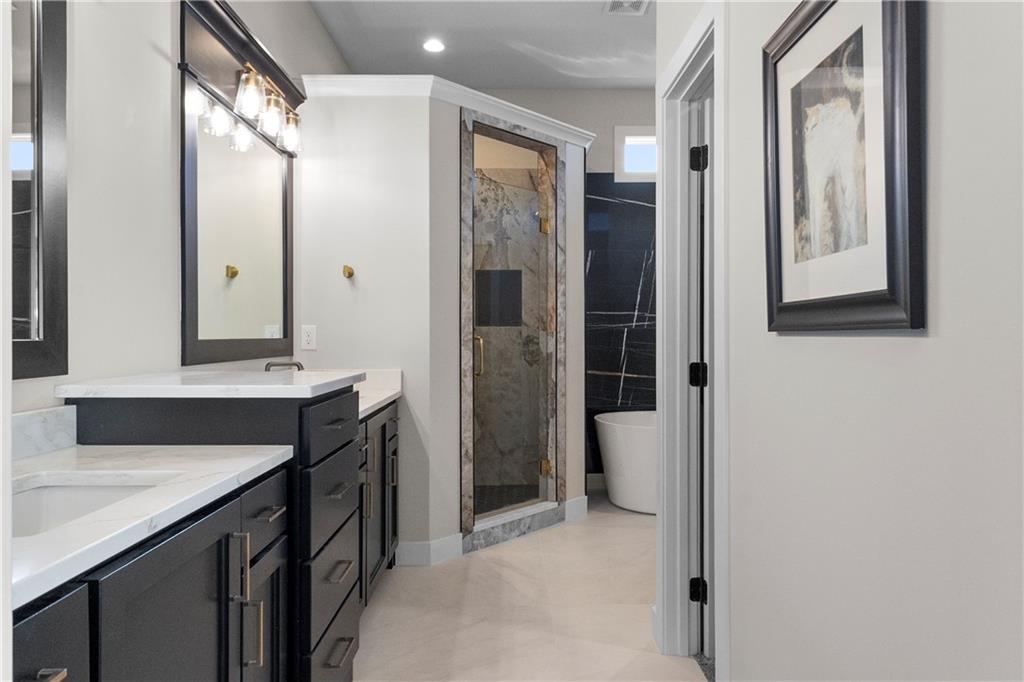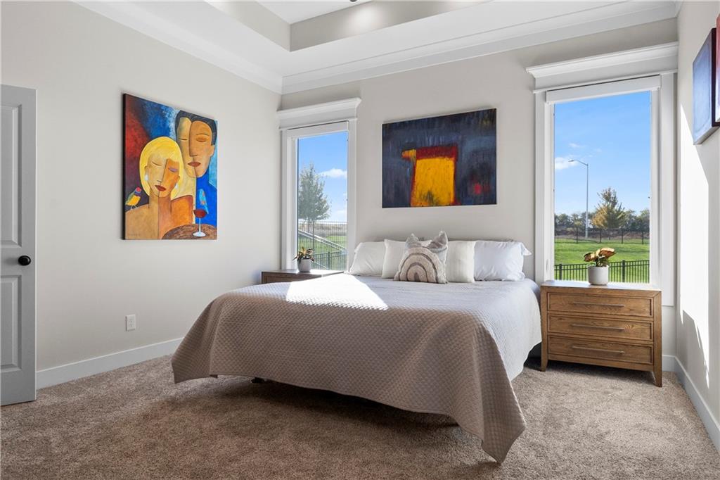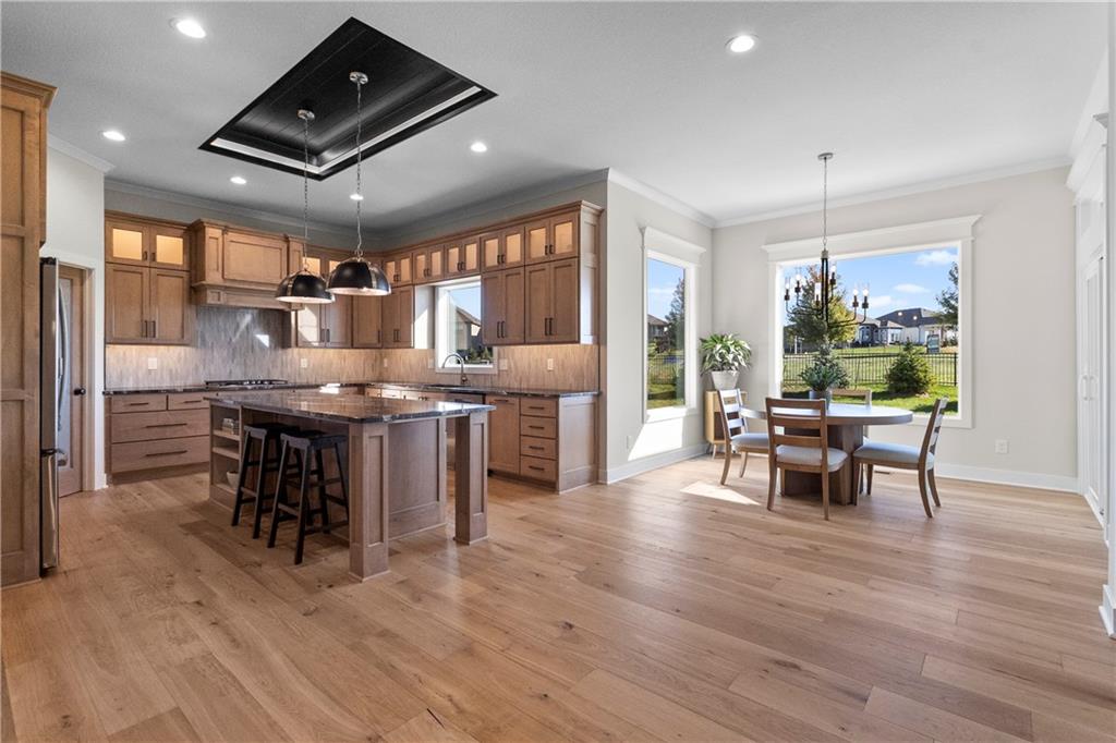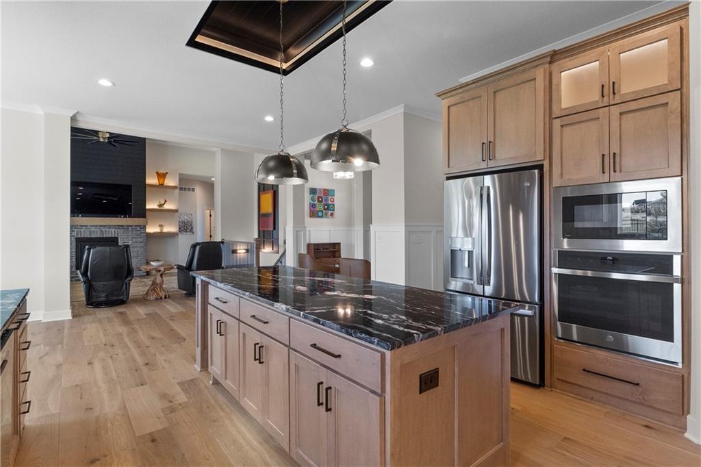 IMMACULATE NEARLY-NEW RANCH - this stunning home, less than a year old, blends modern upgrades with effortless style. Featuring 3 spacious bedrooms and 2.5 bath, the open-concept layout is filled with natural light from large Pella windows and high ceilings throughout. Enjoy designer touches like upgraded, highly figured granite countertops, maple kitchen cabitnets with over-and-under-lighting, and a feature wall in both the living room and primary suite. The kitchen boasts top-tier appliances (upgraded GE Profile Refrigerator and Dishwasher) perfect for entertaining or every day luxury. Relax by the gas fireplace or step outside to a covered patio overlooking a beauitfully landscaped yard with additional trees, landscaping and a fenced in backyard. Smart conveniences include remote-controlled shades in the living room and primary bedroom, plus pull down shades in the guest rooms. The lower level can be finished to meet your needs if you need extra space. With thoughtfull upgrades inside and out, this home is truly move in ready - nothing to do but unpack and enjoy.
