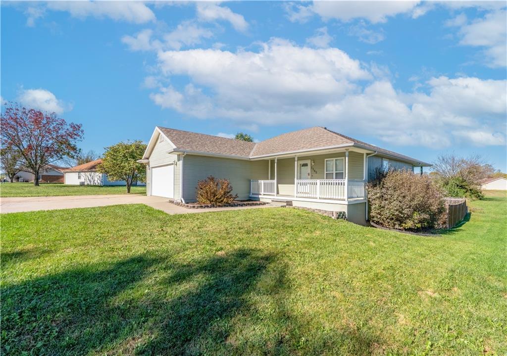 This beautifully maintained 5-bedroom, 3-bath ranch offers a perfect blend of comfort and practicality. The finished walkout basement provides plenty of living space, while the large unfinished portion offers excellent storage or room for future expansion. A dedicated storm shelter/safe zone adds peace of mind. Recent updates include a reverse osmosis water treatment system (2022, owned), water softener (2022, owned), newer appliances, a roof replaced in 2017, and a new HVAC system installed in 2016. The home also features a 2-car attached garage and no HOA, giving you freedom and flexibility. Main-level washer/dryer hookups are available and currently used as a pantry, offering the option for convenient main-floor laundry.