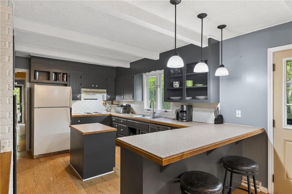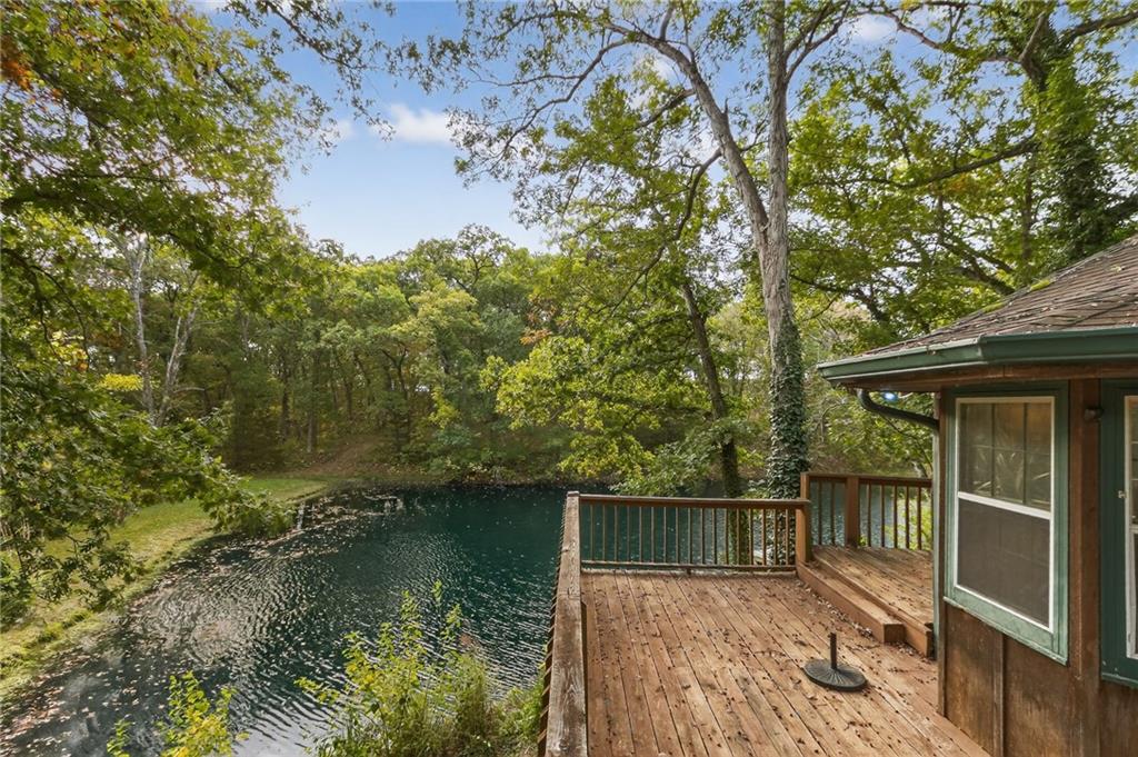 Come and enjoy this beautiful rustic ranch-style home, perfectly nestled on 8.5 private acres! This charming property features a peaceful pond, stocked and ready for fishing, with deer and turkey often seen roaming the grounds. The home offers 3 bedrooms and 2 full baths, a spacious country-style eat-in kitchen, and a formal dining room. Ideal for both casual and family gatherings. Relax and take in the scenery from the large wraparound deck, or cozy up by one of the two fireplaces. One in the family room and another in the finished walkout basement. The property also includes an outbuilding with plumbing and electricity, perfect for a workshop, hobbies, or extra storage. A two-car garage, private road, and quiet setting make this the ideal country retreat. Just an hour and a half away from the airport and an hour 15 mins from Liberty MO.