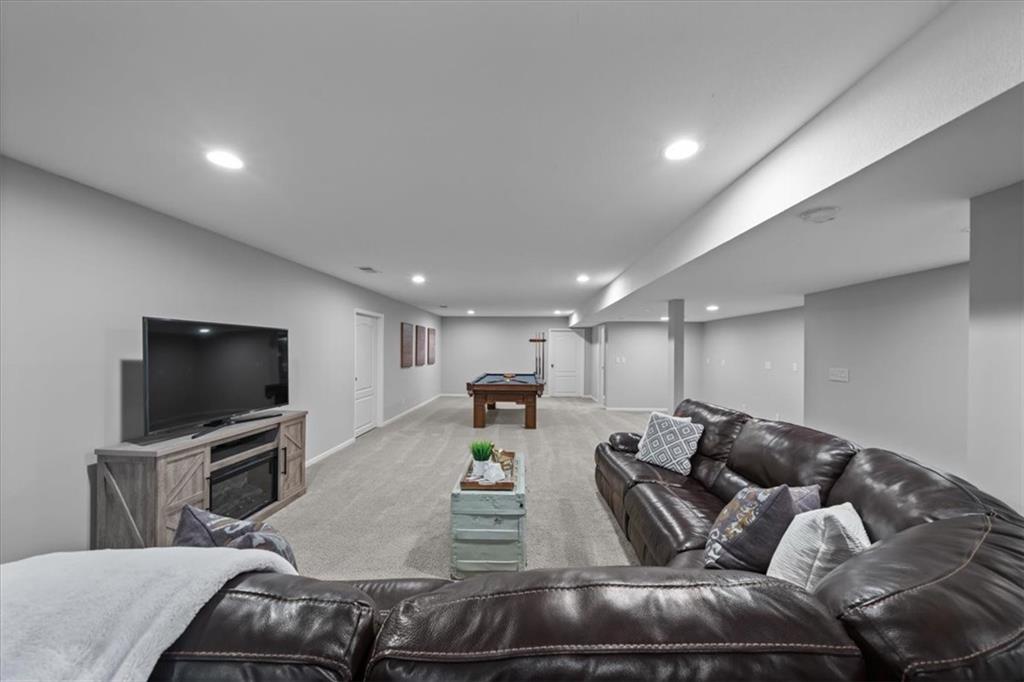 Stunning Two-Story in Award-Winning Blue Valley Schools! This beautifully updated home offers a perfect blend of comfort, style, and functionality in an unbeatable location. Over the past five years, updates include new interior and exterior paint, new carpet throughout the first and second floors, a new stamped concrete patio, updated kitchen backsplash and fireplace surround, a new furnace, 220V EV outlet, and more. The spacious, open floor plan is ideal for entertaining with a hearth room, formal dining room, and inviting living room. A main-floor bedroom with a full bath also makes the perfect guest suite, home office or flex space. Upstairs, the primary suite is a true retreat featuring a cozy sitting room, luxurious ensuite bath, and a huge walk-in closet. All secondary bedrooms are generously sized, include walk in closets and have convenient access to bathrooms. The finished basement provides additional living space, a full bath, and the potential to easily add a sixth bedroom if desired. The expansive patio is perfect for outdoor gatherings. Located just minutes from top-rated Blue Valley schools, shopping, dining, and major highways—this home truly has it all!