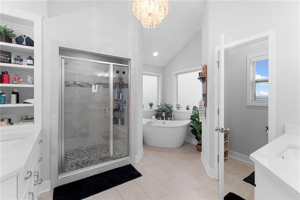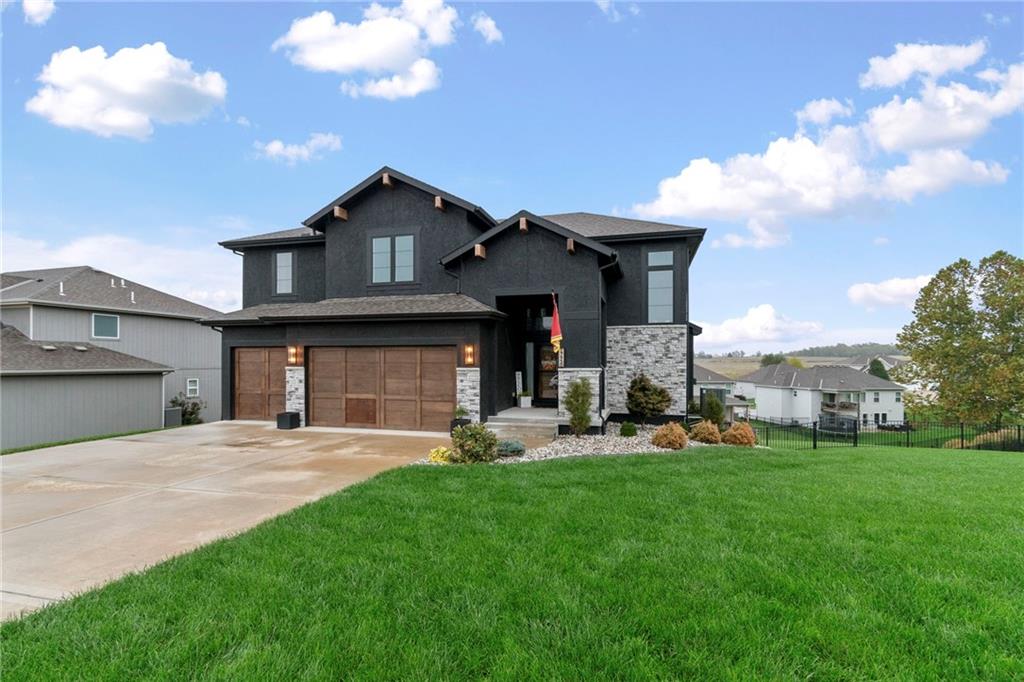 Welcome to this stunning modern home in the coveted community of Seven Bridges. Set on nearly a HALF-ACRE, one of the LARGEST LOTS in the neighborhood, this property seamlessly blends timeless design with everyday comfort. The newly painted exterior showcases dark stucco, warm wood garage doors, and stone accents that create instant curb appeal. Inside, wood floors flow throughout an open-concept layout filled with natural light from oversized windows. The kitchen, with its large quartz island, elegant gray arabesque backsplash, and walk-in pantry, opens to a cozy family room and covered deck. The adjoining patio, connected by the walkout basement, creates a seamless indoor-outdoor flow. Step outside to a giant backyard with fresh landscaping, full fencing, and a sprinkler system. The yard transitions beautifully from the neighborhood’s gentle landscape into wide-open green space beyond, making every sunset view unforgettable. This home includes abundant storage closets, a practical mudroom with a built-in desk, and a deep utility sink in the laundry room. The primary suite feels like a private retreat with an oversized walk-in closet that connects directly to the laundry room. The spa-style bath features double vanities, a freestanding tub, a dual-head tile shower, and an elegant cascading chandelier. The walkout basement has large windows that bring in natural light and endless potential to finish your way. This fall, picture family nights by the fire, weekend games in the yard, and quiet mornings on the porch with coffee and sunrise views. Seven Bridges offers resort-style amenities including pools, tennis and basketball courts, a clubhouse, playground, and scenic walking paths for community living at its best.