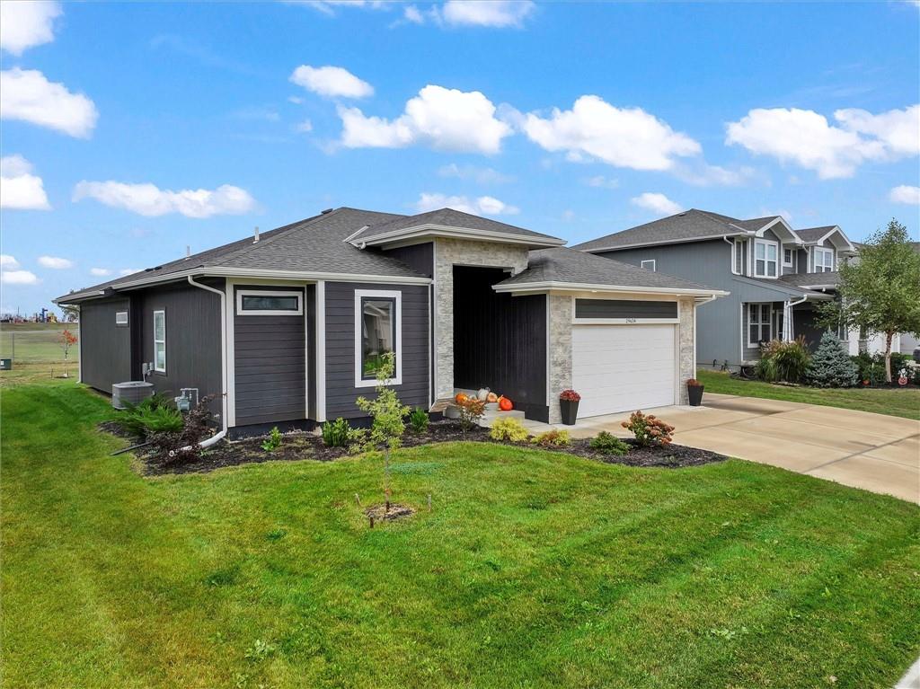 Fantastic flow and functionality offered in this floor plan that blends contemporary design and classic charm. This true ranch offers 3 spacious bedrooms with two beautifully appointed bathrooms. Neutral palette compliments any style. Striking exterior gives way to an interior with 12' entry leading to great room and kitchen & dining that is both modern and timeless. Kitchen features quartz counters, gas range, butlers pantry that leads to main pantry .Great room with floor-ceiling stone electric fireplace. Lovely master suite with walk in closet. Relaxing back patio. Tandem 4 car garage for plenty of room for vehicles, toys and storage. Buyer bought during construction. Upgrades over allowances on fixtures, flooring, appliances.