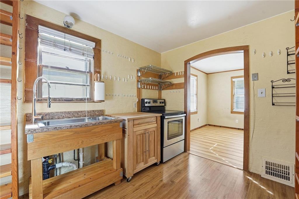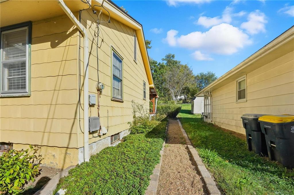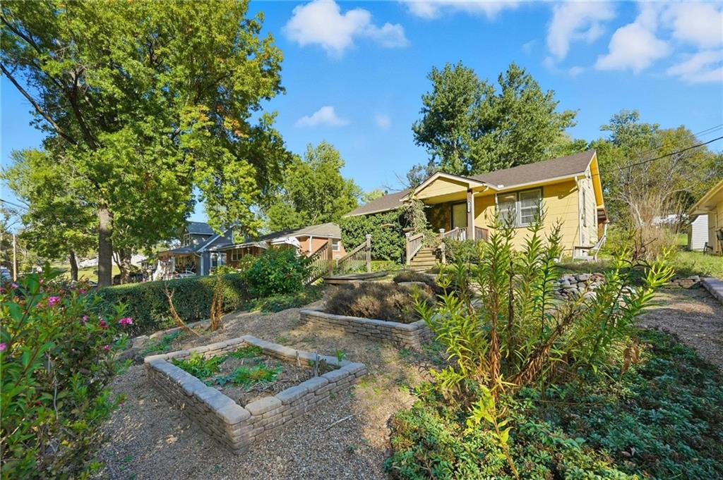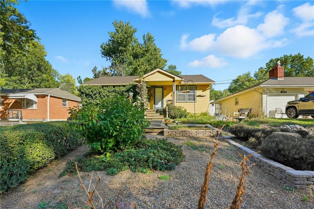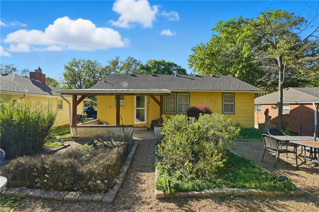 Welcome to this cozy and comfortable 3-bedroom, 1-bath home full of character and thoughtful updates! Ideally located near the I-29/I-35 split, this property offers easy access to all parts of the city. Step inside to find new luxury vinyl plank flooring throughout the living room, hallway, and all three bedrooms, along with freshly painted walls and closets. Each bedroom features new LED dimmable ceiling light fixtures, while the living room and hallway also include new LED lighting for a warm, efficient glow. You’ll appreciate the new blinds in the living room and two bedrooms, new shelving in multiple closets, and the newly rebuilt roof over the covered back porch—perfect for enjoying quiet mornings or evening gatherings. The kitchen features charming open shelving, ideal for those who love to cook and keep their favorite tools within easy reach. Outside, the property truly shines. The extensive landscaping showcases drought-tolerant, low-maintenance plants and gravel pathways winding through both the front and back yards. The gardens are alive with colorful blooms that attract birds and butterflies year-round, creating a tranquil retreat. Solar-powered lighting lines the garden beds and front walkway posts, adding beauty and safety—especially in the evenings—with motion-activated lights welcoming you home. Whether you’re relaxing by the fire pit, enjoying the peaceful backyard, or entertaining on the porch, this home provides the perfect blend of comfort, convenience, and natural beauty.