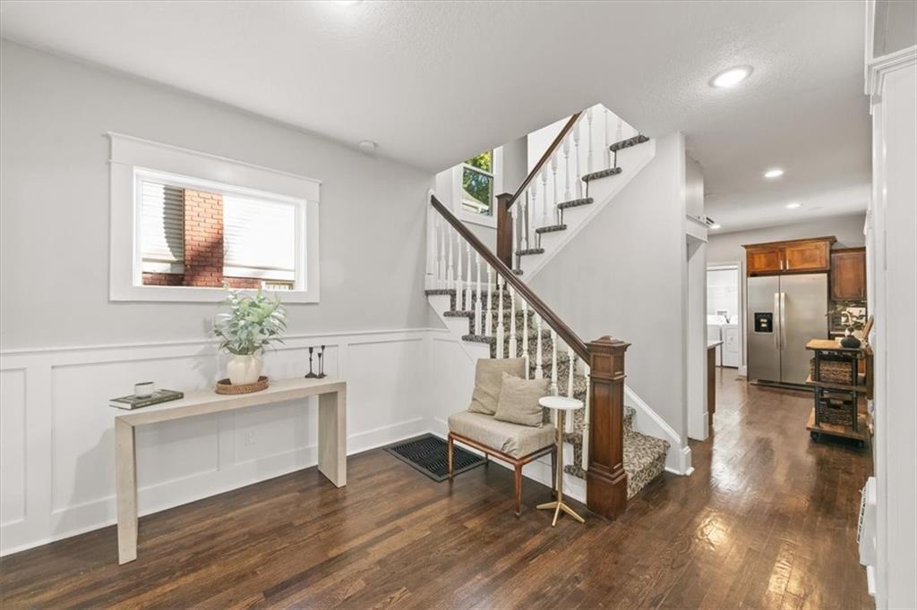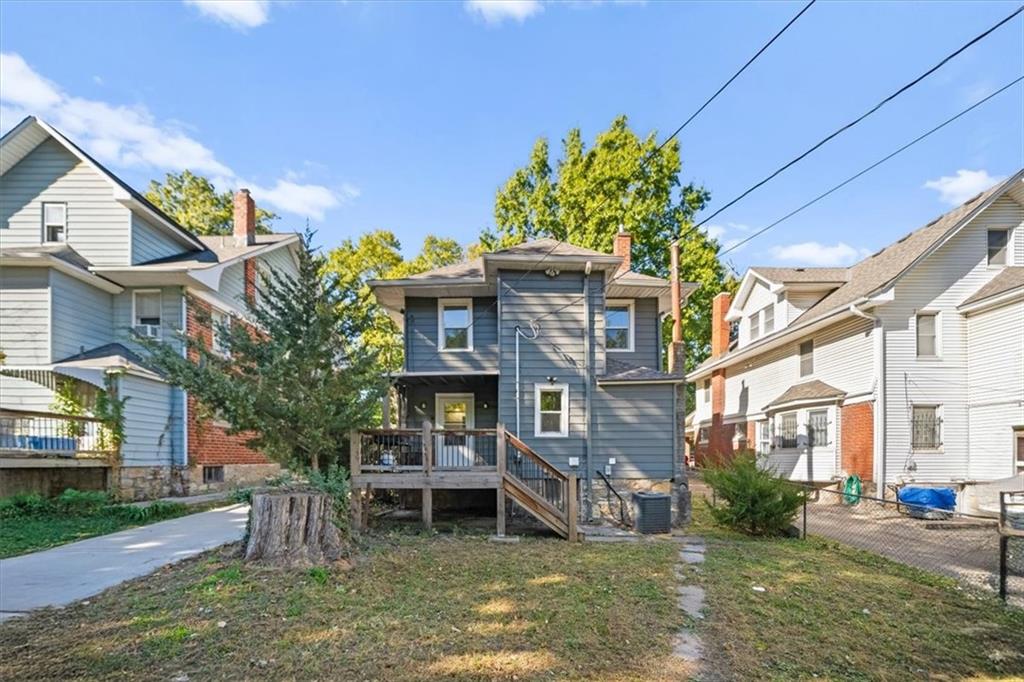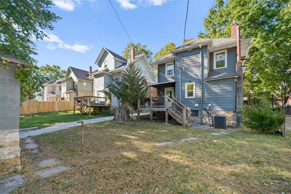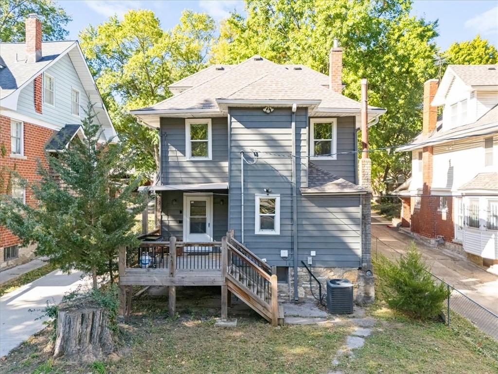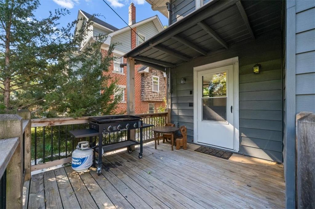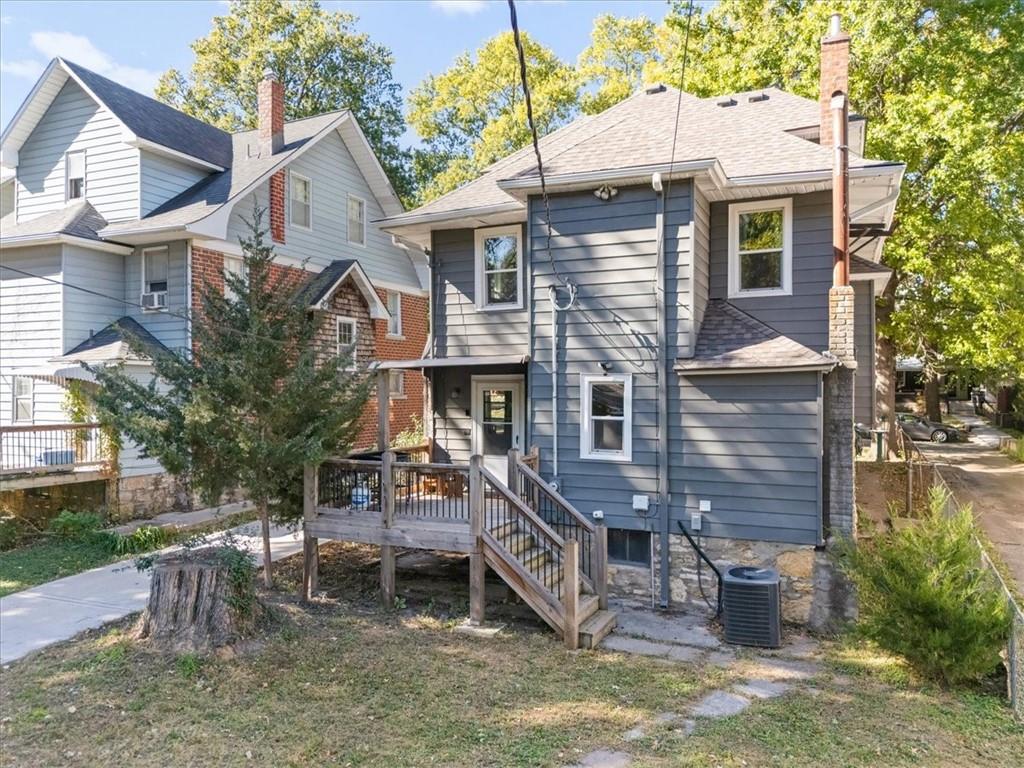 Step into the charm of this beautifully maintained 1910 Craftsman-style home that perfectly blends timeless character with modern comfort. Featuring stunning original hardwood floors, newer kitchen cabinetry with granite countertops, and a full bath on the main level, this home is both stylish and functional. The spacious dining room includes a custom built-in hightop, ideal for entertaining or everyday dining. Upstairs offers four inviting bedrooms and an updated full bath with a large walk-in shower, while the third floor serves as a versatile loft or fifth bedroom with three generous closets—perfect for guests, a home office, or creative space. Enjoy relaxing on the cozy covered front porch or back deck overlooking the yard. Additional highlights include a detached garage with private driveway, brand-new roof, 200-amp electrical panel, PEX plumbing, 5-year-old HVAC and water heater, replacement windows, and built-in speakers in the kitchen and primary bath. Nestled in a welcoming neighborhood with easy highway access and just minutes from downtown, this 3-story historic gem offers the perfect combination of charm, comfort, and convenience.