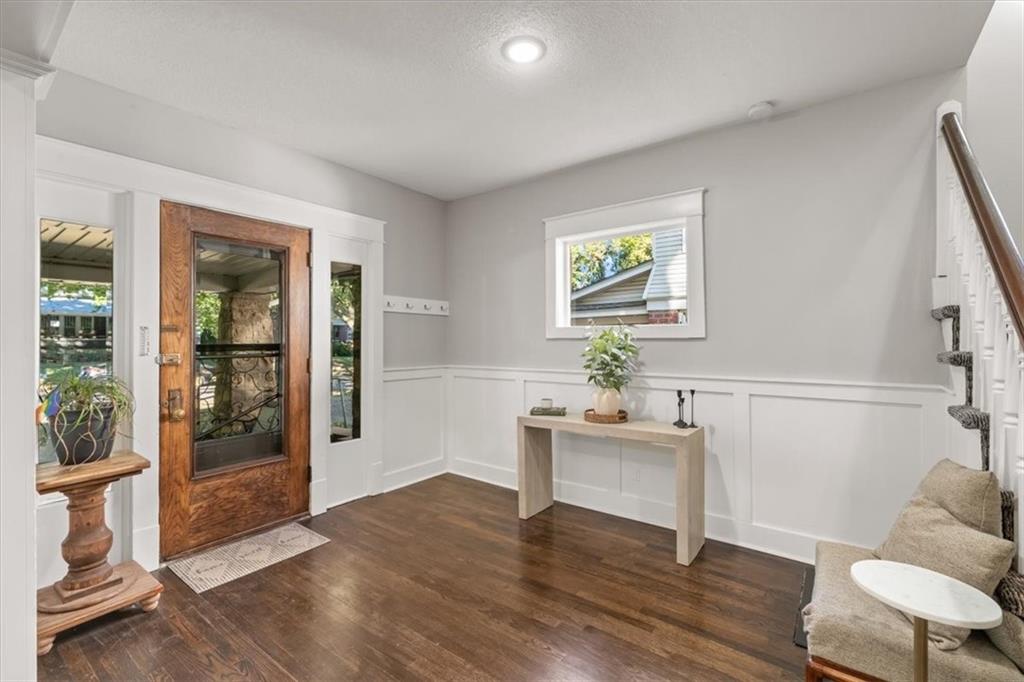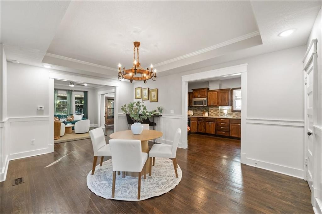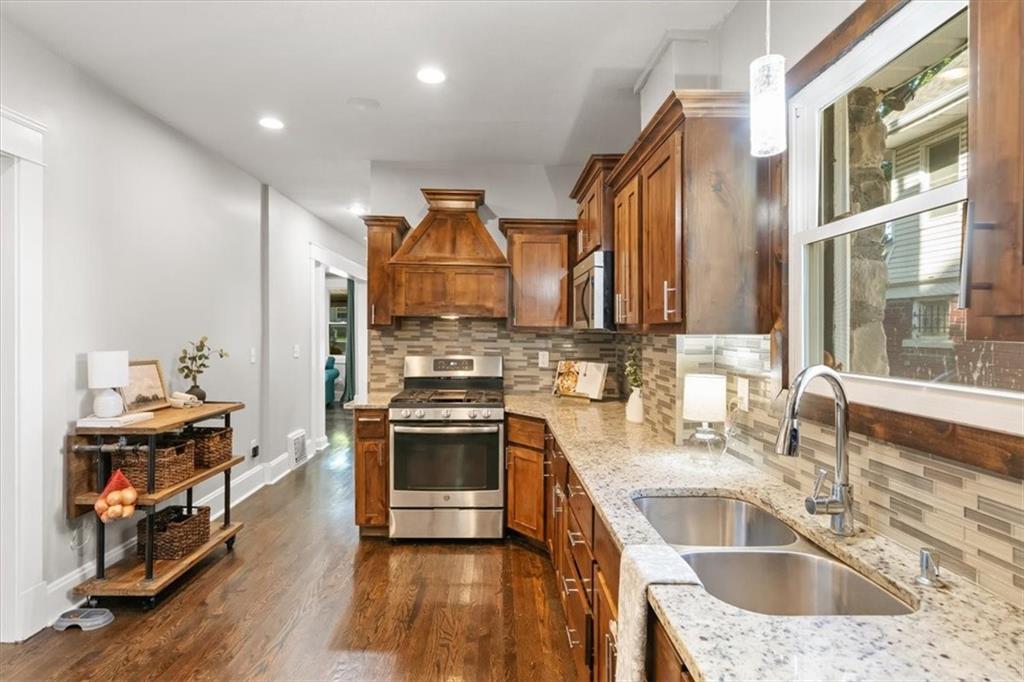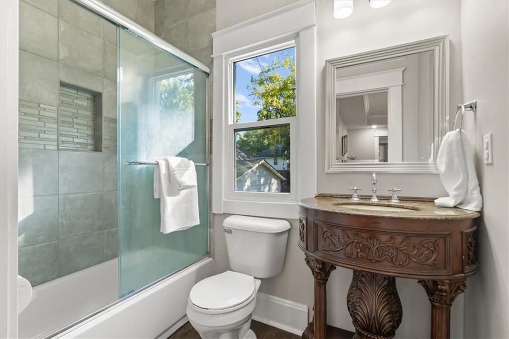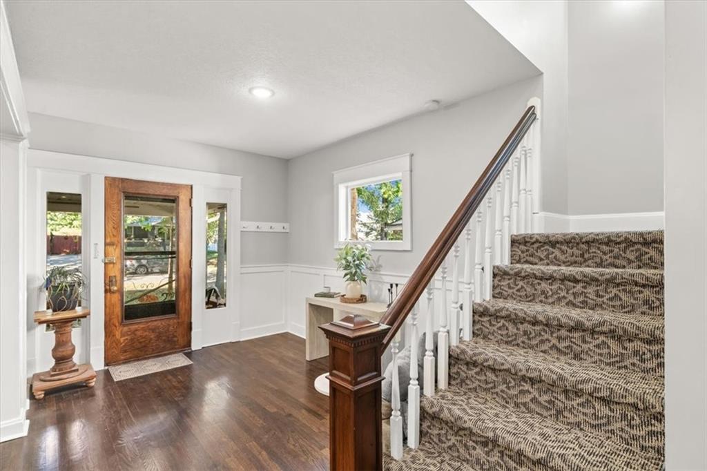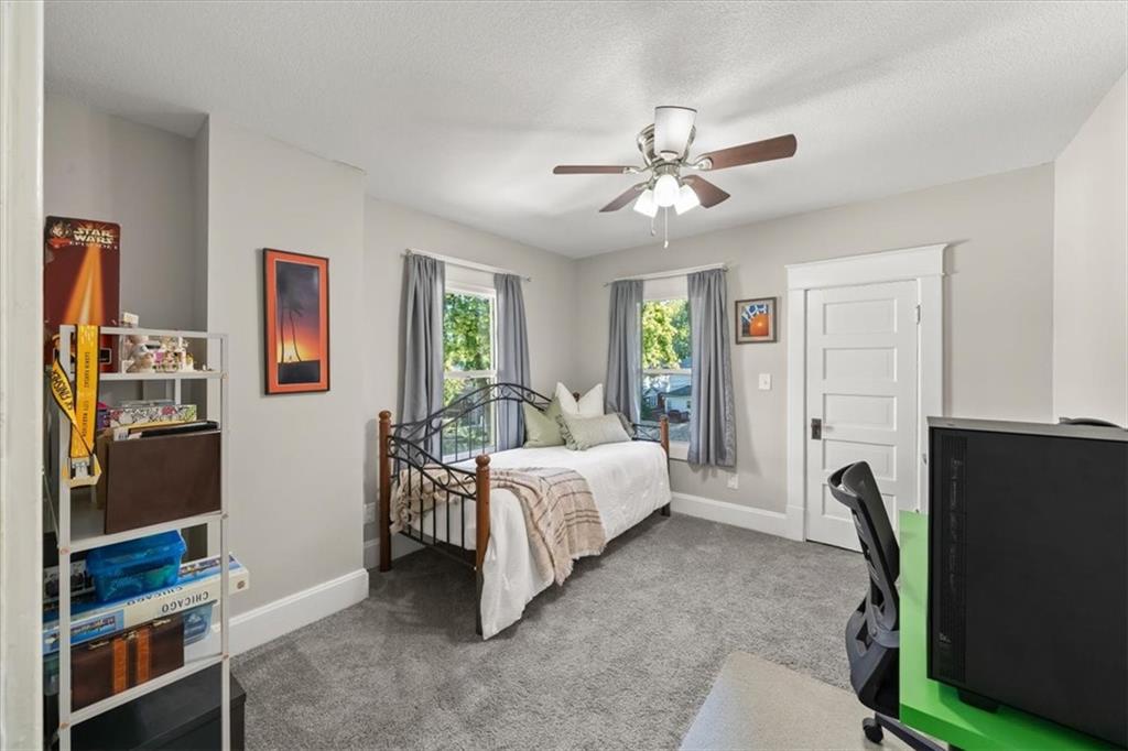 Step into the charm of this beautifully maintained 1910 Craftsman-style home that perfectly blends timeless character with modern comfort. Featuring stunning original hardwood floors, newer kitchen cabinetry with granite countertops, and a full bath on the main level, this home is both stylish and functional. The spacious dining room includes a custom built-in hightop, ideal for entertaining or everyday dining. Upstairs offers four inviting bedrooms and an updated full bath with a large walk-in shower, while the third floor serves as a versatile loft or fifth bedroom with three generous closets—perfect for guests, a home office, or creative space. Enjoy relaxing on the cozy covered front porch or back deck overlooking the yard. Additional highlights include a detached garage with private driveway, brand-new roof, 200-amp electrical panel, PEX plumbing, 5-year-old HVAC and water heater, replacement windows, and built-in speakers in the kitchen and primary bath. Nestled in a welcoming neighborhood with easy highway access and just minutes from downtown, this 3-story historic gem offers the perfect combination of charm, comfort, and convenience.