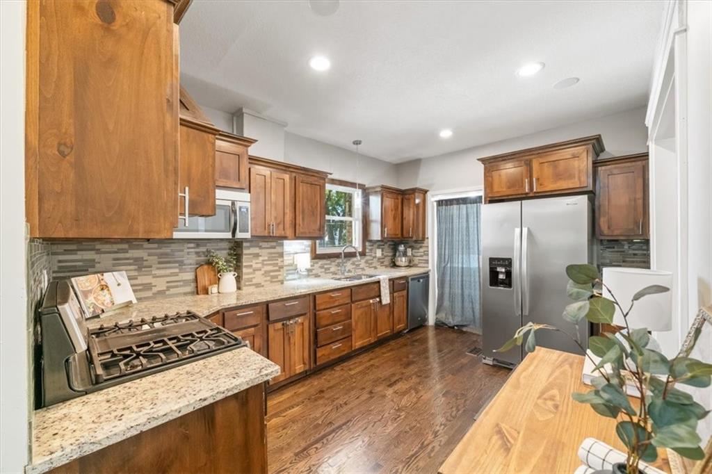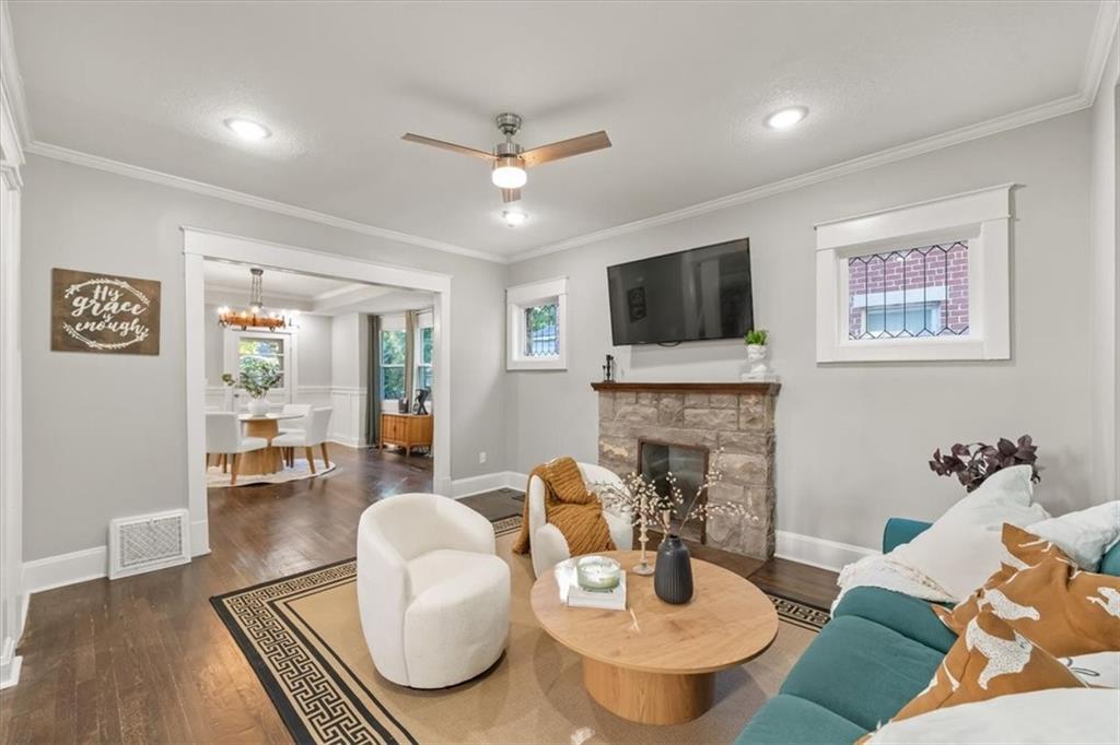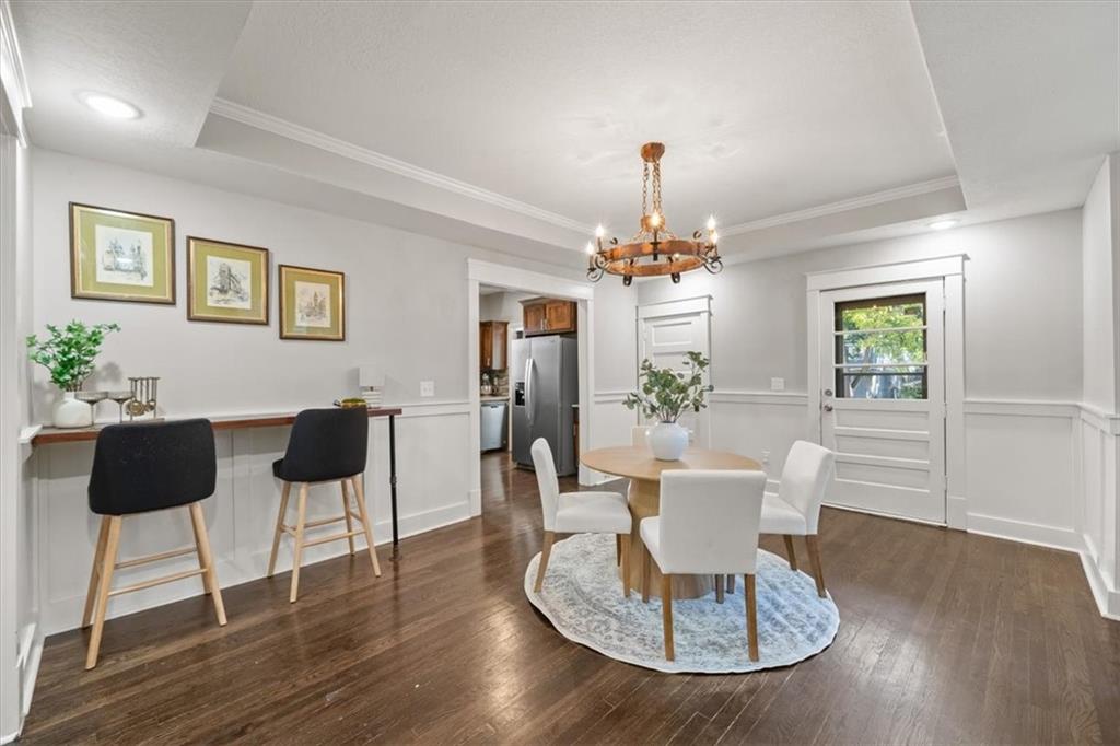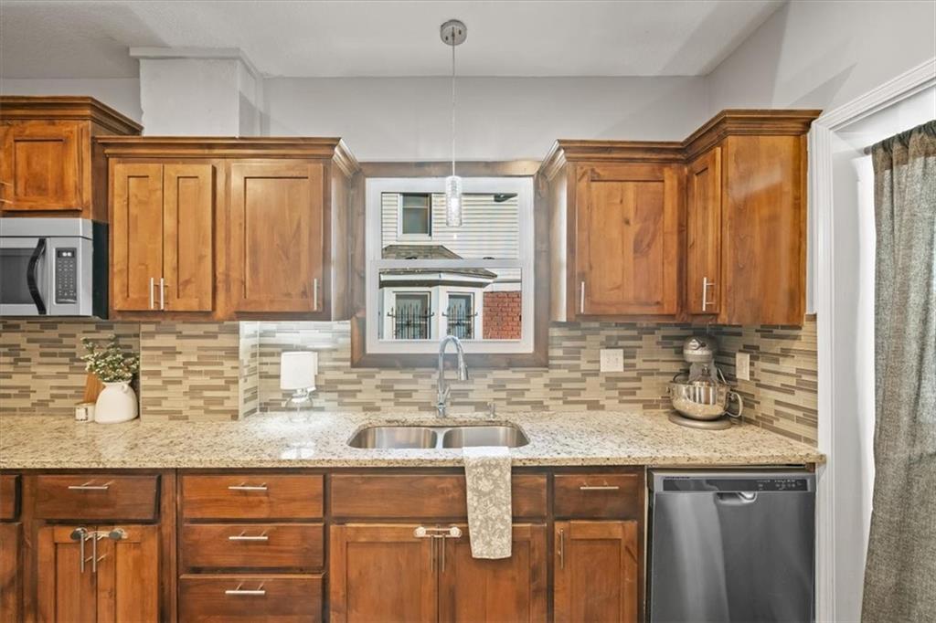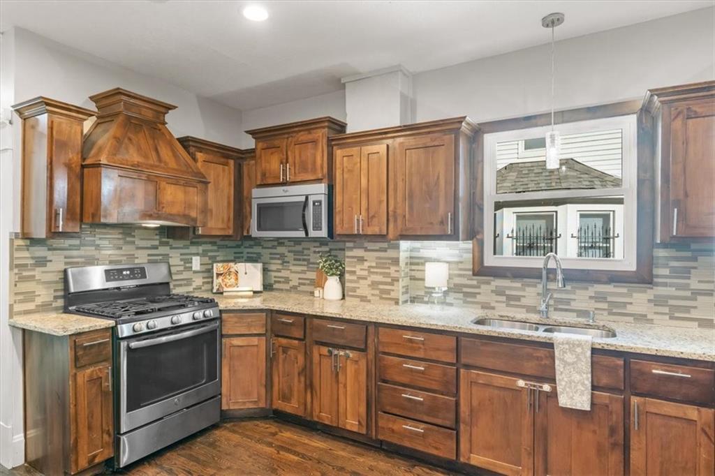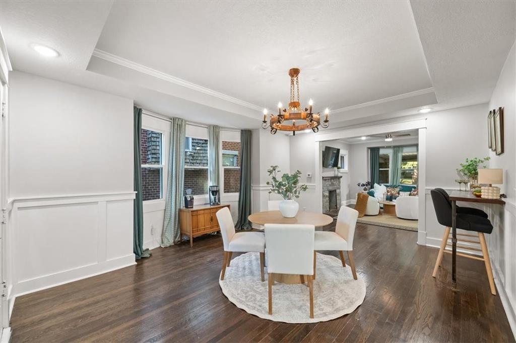 Step into the charm of this beautifully maintained 1910 Craftsman-style home that perfectly blends timeless character with modern comfort. Featuring stunning original hardwood floors, newer kitchen cabinetry with granite countertops, and a full bath on the main level, this home is both stylish and functional. The spacious dining room includes a custom built-in hightop, ideal for entertaining or everyday dining. Upstairs offers four inviting bedrooms and an updated full bath with a large walk-in shower, while the third floor serves as a versatile loft or fifth bedroom with three generous closets—perfect for guests, a home office, or creative space. Enjoy relaxing on the cozy covered front porch or back deck overlooking the yard. Additional highlights include a detached garage with private driveway, brand-new roof, 200-amp electrical panel, PEX plumbing, 5-year-old HVAC and water heater, replacement windows, and built-in speakers in the kitchen and primary bath. Nestled in a welcoming neighborhood with easy highway access and just minutes from downtown, this 3-story historic gem offers the perfect combination of charm, comfort, and convenience.