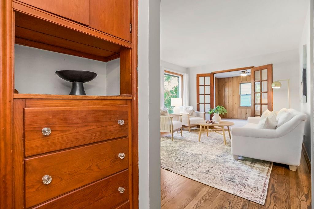 This adorable home is brimming with charm, featuring arched doorways, French doors, built-ins and rich wood trim throughout. Recent updates include a new roof, air conditioning, water heater, fresh paint and dishwasher. Enjoy gorgeous hardwood floors, a spacious primary bedroom and a fenced backyard perfect for your furry friends. The double driveway offers plenty of parking, while the full basement with garage access offers endless possibilities-ideal for a home gym, craft space or workshop. Located in the heart of Overland Park, you'll love being minutes from shopping, dining, and entertainment. You won't want to miss this one!