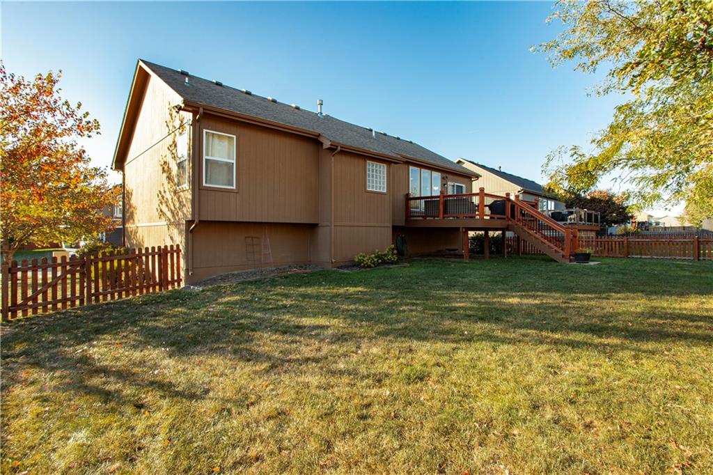 Very nice open concept floor plan with 4 full bedrooms, 3 full bathrooms and roomy 3 car garage. You will love how the comfortable main level flows. The large angled granite topped kitchen island opens to the great room for easy conversation with your family or when entertaining friends. Nice looking stainless steel kitchen appliances and a nice size pantry makes the kitchen area functional and in style! First floor bedrooms including the main bedroom and open bathroom complete with garden tub and separate shower. The finished lower level has a nice size family room, the third full bathroom and 4th bedroom that is perfect for the teenager "needing space" or, can be that perfect separate office space. Play outside in the large backyard of your fenced in corner lot or hang out with family and friends on the oversized deck finished with long lasting composite decking material. Great location close to shopping and restaurants, and, all in the sought after Lees Summit school district. Come take a look, you won't be disappointed!