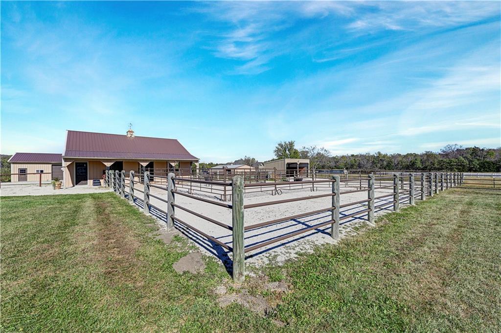 Experience refined country living on this stunning 17-acre 1.5-story estate bordering Hillsdale Lake Corp land on both the east and south sides — creating privacy and uninterrupted views. The land offers a beautiful mix of open and wooded space, including just under 3 acres of timber, approximately 7 acres of hay ground, and an additional 5 acres of lush pasture ideal for grazing. Designed with horses and acreage living in mind, the property features a 5-stall barn with turnouts and a 60x200’ arena for training or riding. A separate shop provides convenient hay/equipment storage and includes two oversized bays with garage doors. The home is framed by gorgeous landscaping, with two outdoor seating areas overlooking the pastures and arena — a peaceful backdrop for everyday living. With a 3-car garage and a layout built for both function and lifestyle, this property offers a rare combination of privacy, usability, and a setting that feels wide open and still private.