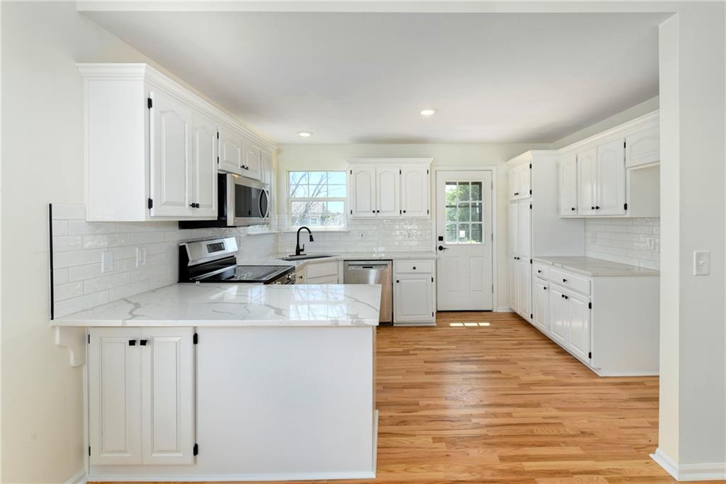 Just in time for the holidays! Move right into this beautifully renovated home, featuring open and bright floor plan with tall ceiling and spacious bedrooms. 4 bedrooms and 3 full bathrooms, including a finished basement with family / flex room with daylight windows, bedroom with egress, full bathroom, and additional storage room. Granite counters, new plumbing and lighting fixtures throughout, 2 Car garage w/new door; all new flooring throughout - real hardwood floors. Seller to install a new roof prior to closing; Seller provides a 1-year mechanical home warranty for peace of mind.
