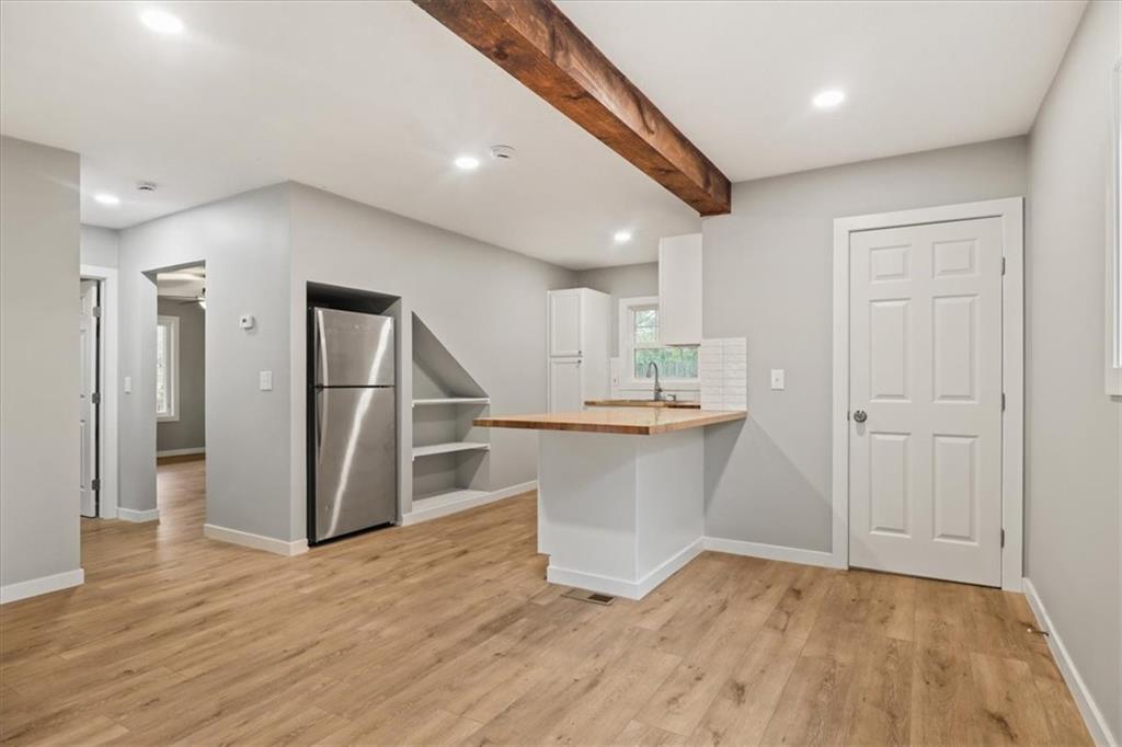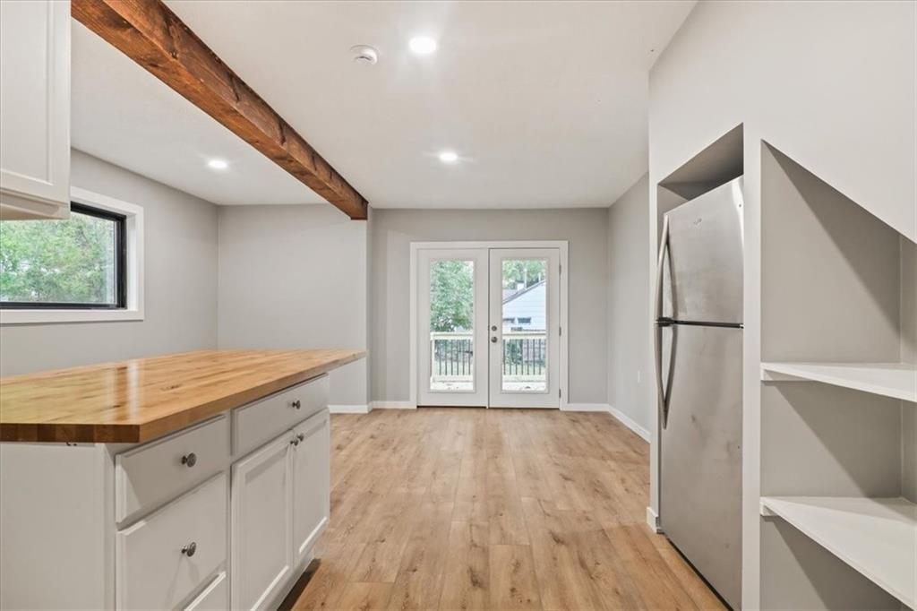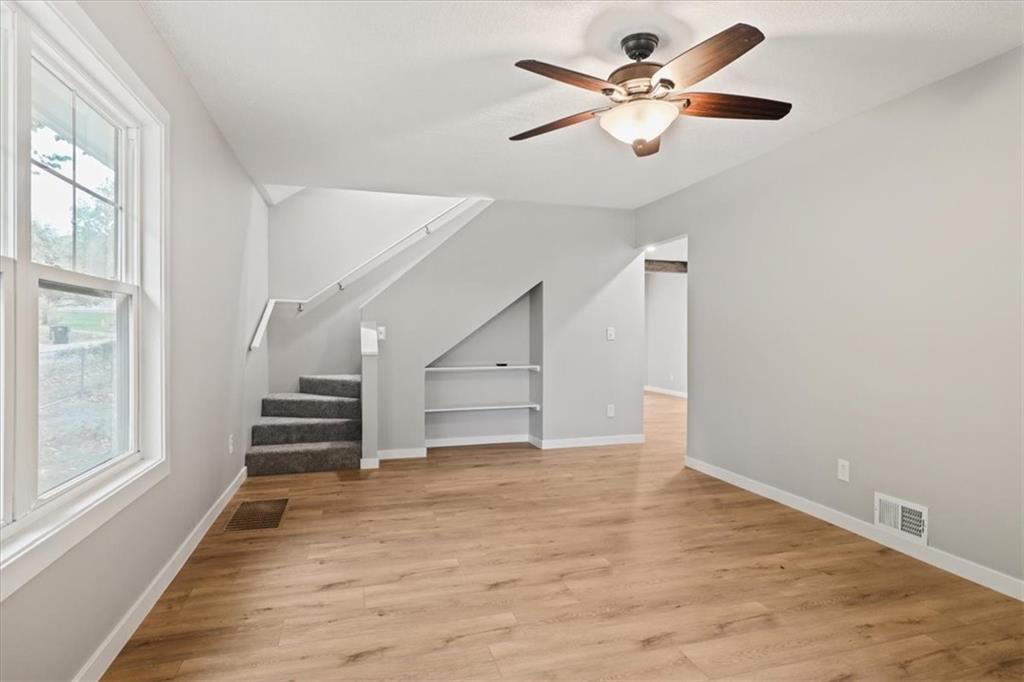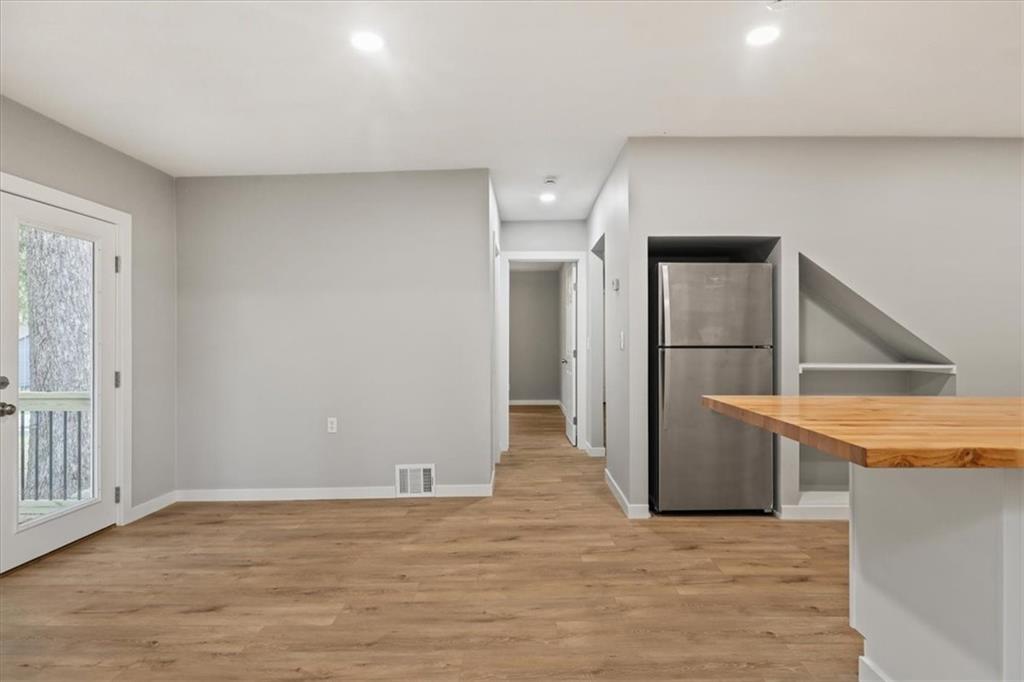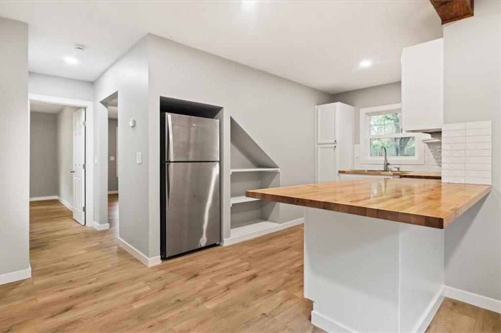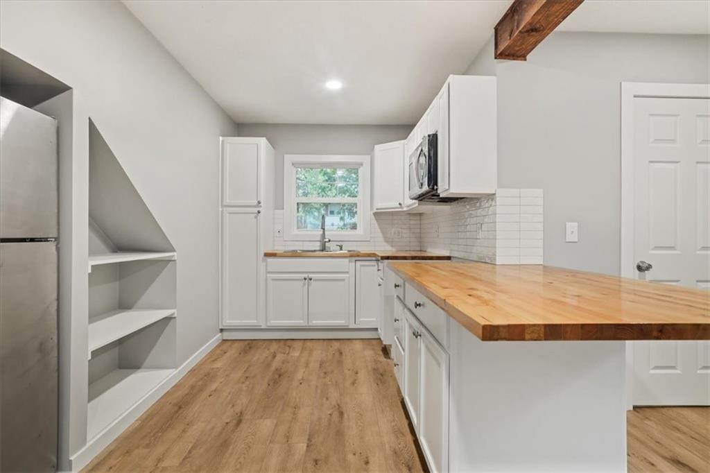 Charming 3-bedroom, 1-bath home situated on a spacious corner double lot! This thoughtfully remodeled property shines from the welcoming front porch to the freshly updated interior. Per the sellers, all city permits and inspections were properly pulled and approved—remodeled with care and attention to detail. The flexible floor plan offers a primary bedroom on either the main or upper level—you choose. Enjoy the stylish kitchen with beautiful countertops and a beautiful main-level bath. Perfect for hosting outdoors, the large yard is ready for your next gathering or barbecue. Don’t miss your chance to see this one in person—it’s move-in ready and ready to be enjoyed. (Stove has been installed after photos were taken.)