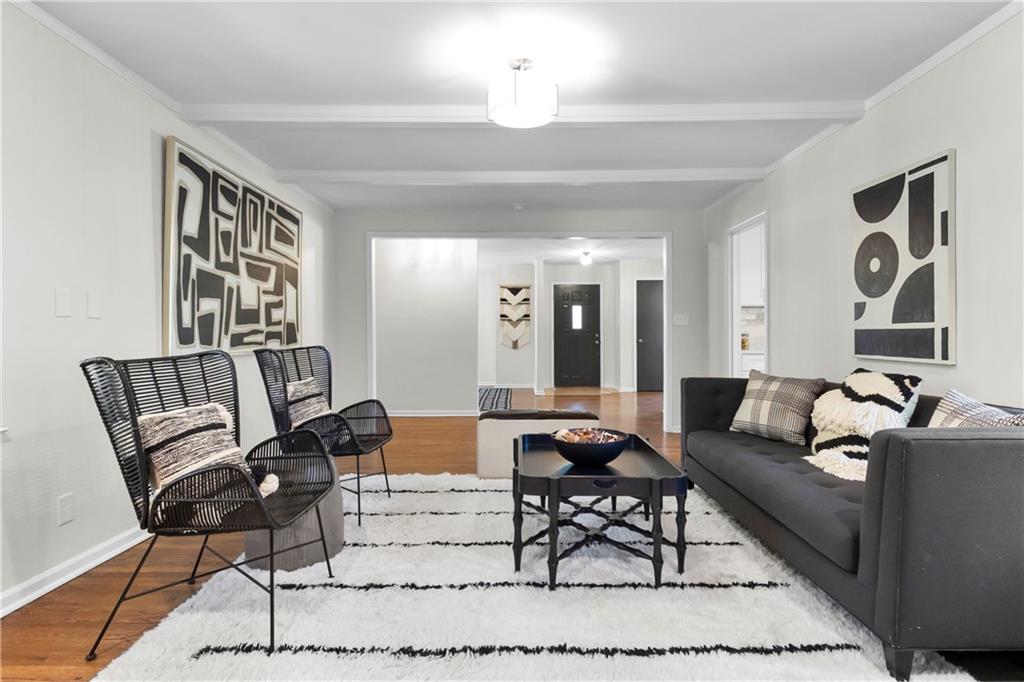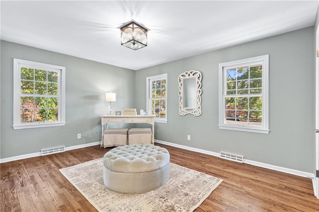 Welcome to this beautifully remodeled 1.5 / 2-story home in highly sought-after Corinth Hills! As you approach, lush landscaping and walkway set the tone for the timeless curb appeal. Step inside to discover gleaming hardwood floors and a light-filled layout designed for both everyday living and entertaining. This open floor Featuring a gracious living room with a cozy fireplace and walls of windows that flood the space with natural light. Just off the living room is a flexible room perfect for a home office or den. The formal dining room flows seamlessly into the sleek, updated kitchen, boasting stylish finishes, custom cabinetry, and modern appliances featuring a Viking Gas range. Adjoining the kitchen is a sunlit sunroom that opens to a deck. The spacious Primary Suite offers a relaxing retreat with a large sitting area- a perfect place to unwind with a drink after a long day. The full bath has double sinks and a great linen closet. The 2nd bedroom and a full bath complete this level, each exuding the same thoughtful character and warmth. The lower level features a large Family room with its own 2nd fireplace and a convenient basement garage. Ideally located just minutes from Corinth Square, Meadowbrook Park & the Village, this location offers an array of shops and restaurants nearby. This home truly offers the best of both comfort and convenience. A rare find in Corinth Hills with 5 bedrooms plus. This is a MUST SEE !! SELLER OFFERS OWNER FINANCING WITH COMPETITIVE RATES!