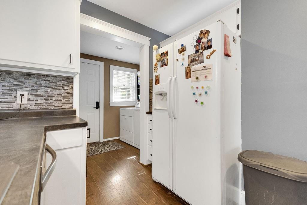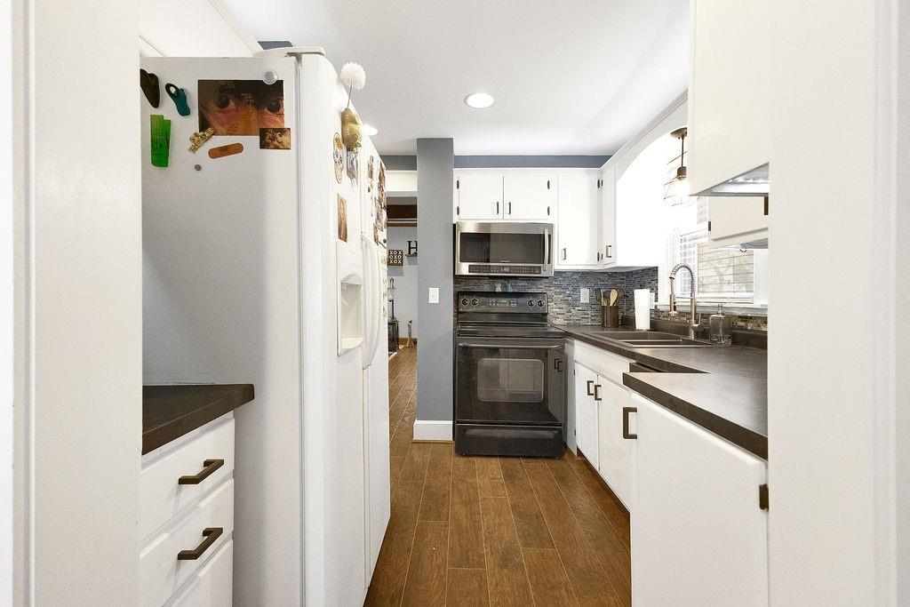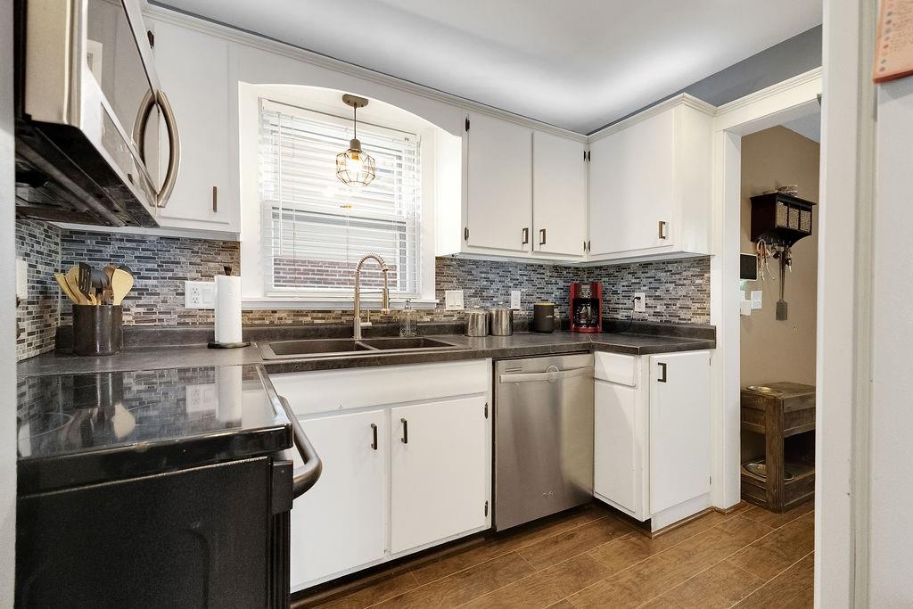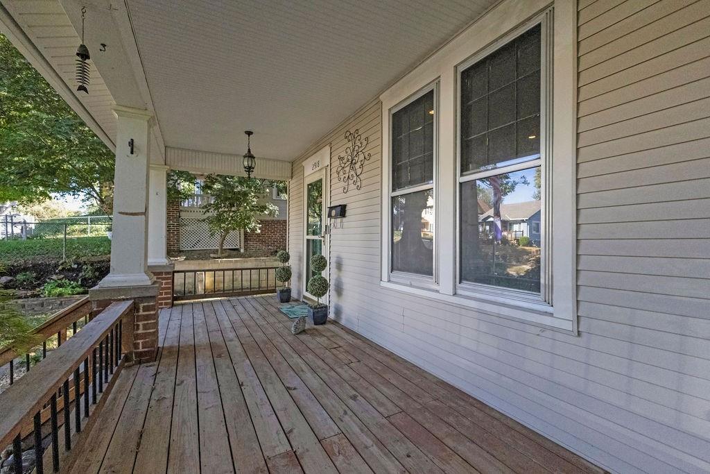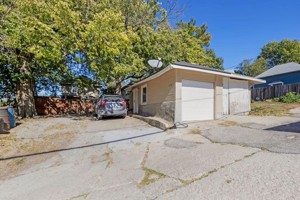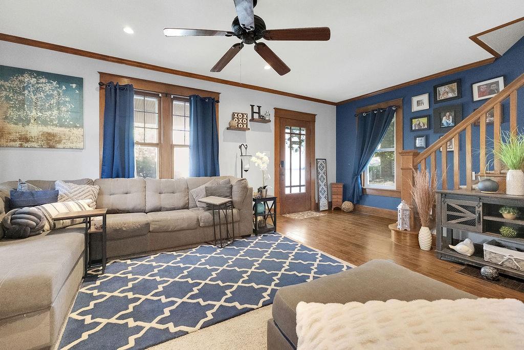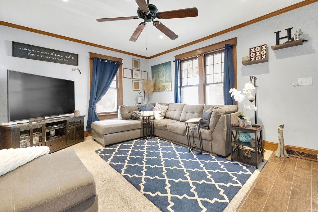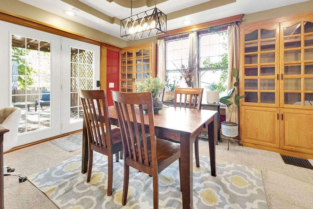 Charming two-story home blending timeless character with modern comfort! Step onto the welcoming covered front porch and into an inviting open concept main floor with rich wood trim and natural light throughout. The spacious living room flows into a formal dining room featuring a tray ceiling and French doors that open to the back deck - perfect for entertaining or relaxing outdoors. The updated kitchen includes appliances, sleek countertops, and tile backsplash, plus a convenient main floor laundry nearby. Upstairs you’ll find three comfortable bedrooms and a beautifully updated bath with a jetted tub and separate shower. A full unfinished basement with a half bath provides excellent storage or hobby space. Outside, enjoy the fenced backyard with a spacious deck area under mature shade trees. A detached one car garage and off-street parking add extra convenience. This home offers classic charm, modern touches, and great outdoor living!