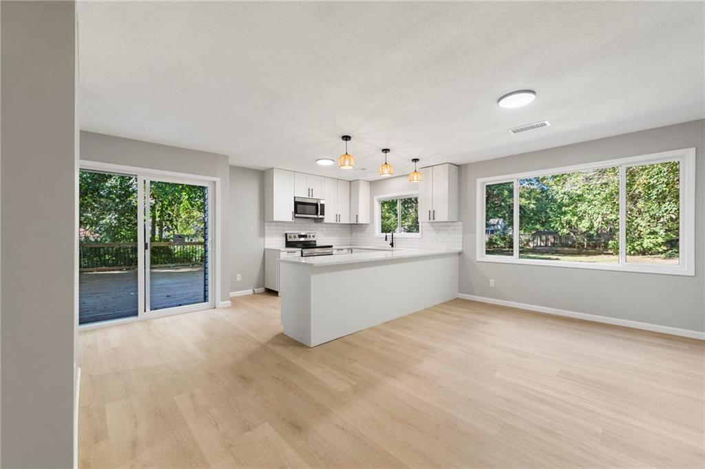 Flooded with natural light and thoughtfully reimagined, this fully renovated 3-bedroom, 2-bath home combines modern finishes with peace-of-mind upgrades — all situated on an oversized lot rarely found in the neighborhood. Inside, you’ll find brand new flooring throughout, a show-stopping kitchen with quartz countertops and a massive peninsula island, and stylishly updated bathrooms that complete the fresh, contemporary feel. Major systems have been fully updated, including a brand new HVAC system, new electrical service with updated panel and wiring, all new plumbing throughout, and new gutters. A newly built deck extends the living space outdoors — perfect for entertaining, relaxing, or enjoying the spacious yard. If you're looking for move-in ready comfort, functionality, and extra space in a beautifully updated home — this one delivers. **Brand New Roof will be installed with an accepted contract**