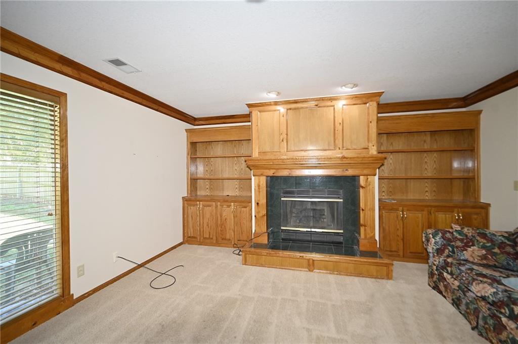 Spacious atrium floor plan. Kitchen with lots of cabinets and hardwood floors. Wood shutters, privacy fence and private backyard. Attractive fireplace with built-ins in family room. This house will need a little TLC.