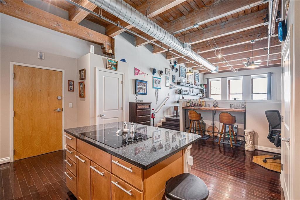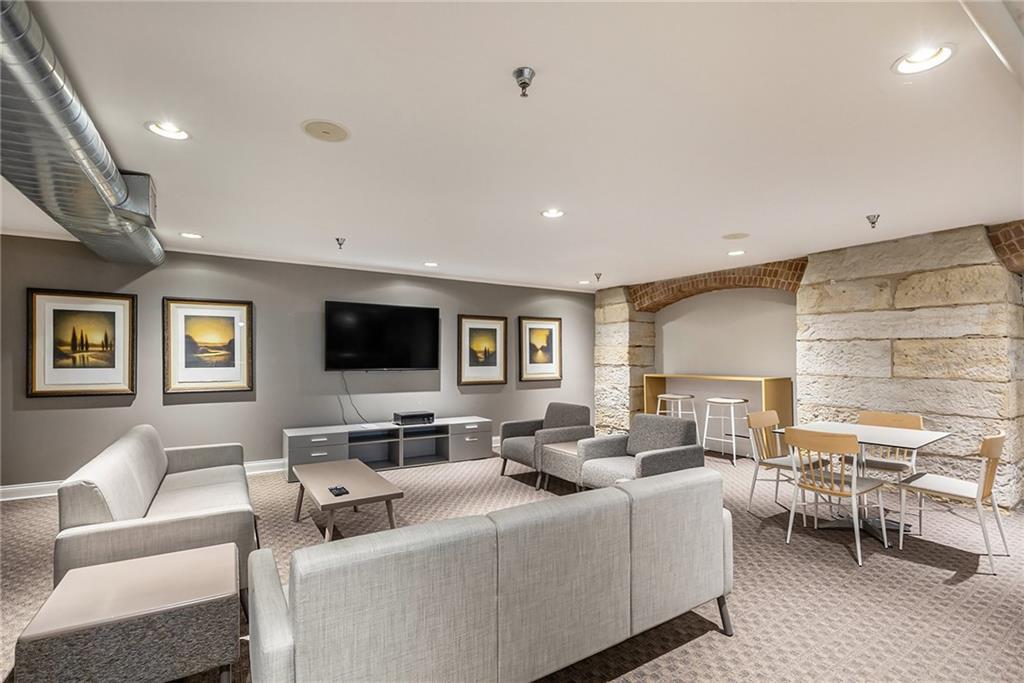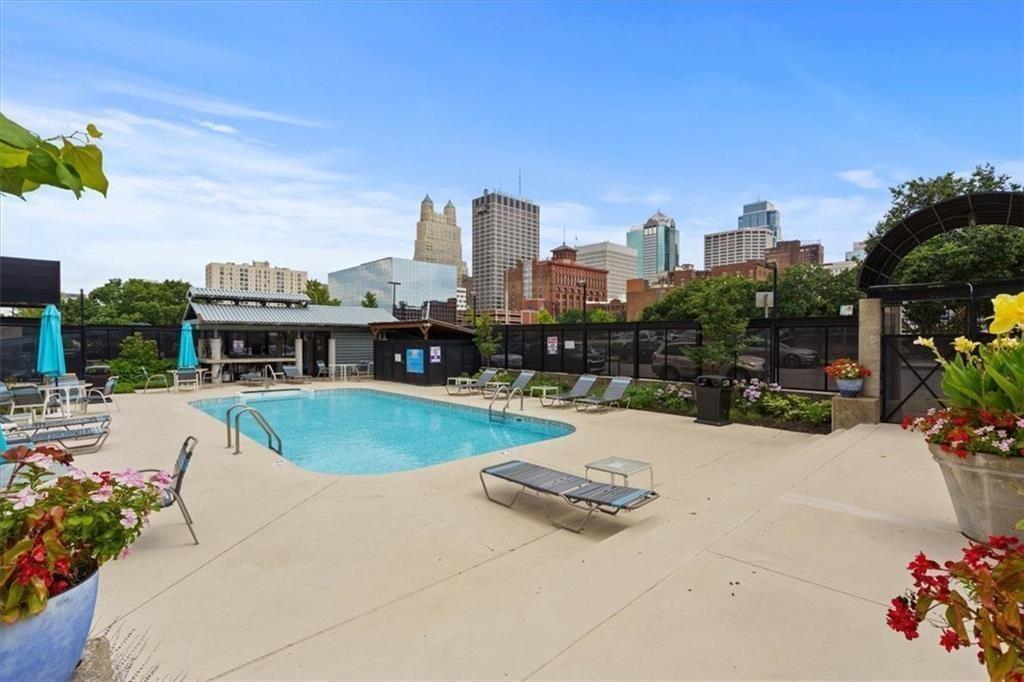 This stylish, move-in ready 1-bedroom, 1-bath condo offers a perfect blend of comfort and convenience. Step inside to find beautiful Brazilian walnut hardwood floors and an updated kitchen featuring granite countertops, an island, and stainless steel appliances. The light-filled living room boasts 12’ ceilings, a cozy gas fireplace, and impressive downtown views. The spacious bedroom includes a large closet, while the bathroom features a jetted tub and rainfall shower for a touch of luxury. Enjoy the convenience of full-size in-unit laundry, secure assigned parking, and extra basement storage. The community amenities truly shine—pool with outdoor kitchen, indoor hot tub, sauna, fitness center, movie theater, and multiple clubhouses. Plus, your HOA covers gas, water, trash, and recycling! Perfectly located near Power & Light, the River Market, shopping, dining, and nightlife. Hop on the streetcar for an easy ride to Union Station, Crown Center, the Plaza, the Plaza, and more. Downtown living doesn’t get better than this—don’t miss your chance to call this one home!