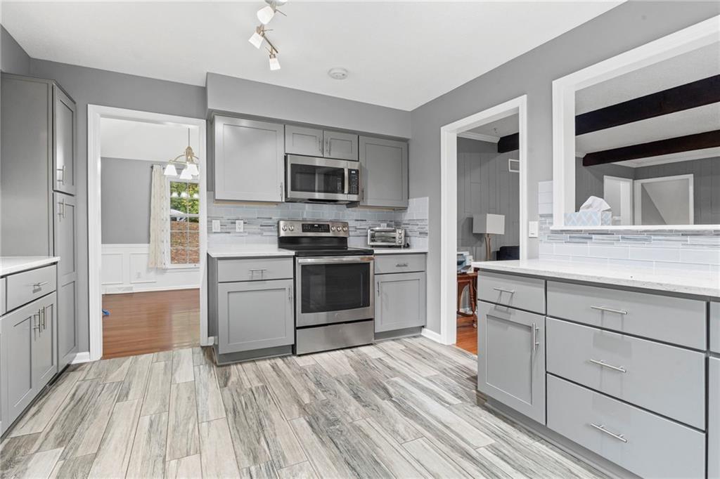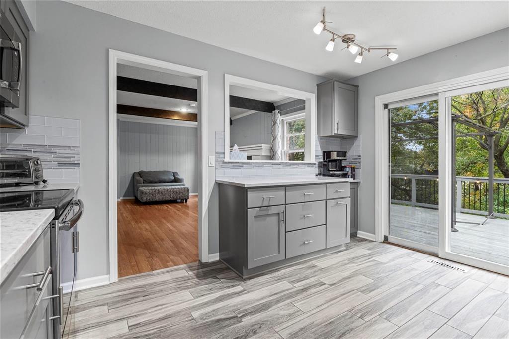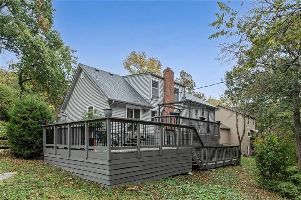 Freshly remodeled 4 bed 2.5 bath split level home in much desired Quivira Highlands. Enjoy sitting on the multi tiered deck that backs up to treed area. This back yard offers lots of privacy. Fresh paint through out. Updated flooring, baths, and kitchen are some the the updates that have been done. Finished basement with bar area would be great for entertaining! Formal living and dining as you enter the house with a large family room with cozy brick fireplace that is open to the kitchen. A great house in a great neighborhood!
