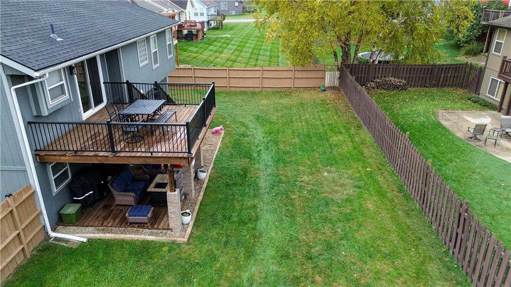 Beautifully Updated Home in Raymore! This move-in ready home showcases thoughtful updates throughout. The remodeled kitchen features granite counter tops, stylish back splash, new flooring, and Whirlpool appliances, complemented by refinished cabinets in the kitchen and bathrooms. Enjoy updated vanities, mirrors, and tile work, along with new luxury vinyl plank flooring on all levels, modern interior doors, trim, lighting, and ceiling fans. Additional highlights include a remodeled fireplace, new Lennox A/C, finished sub-basement, upgraded laundry room, new fencing, decks, and exterior doors, plus a brand-new roof in 2025. Every improvement has been completed within the past three years, reflecting quality and care inside and out.