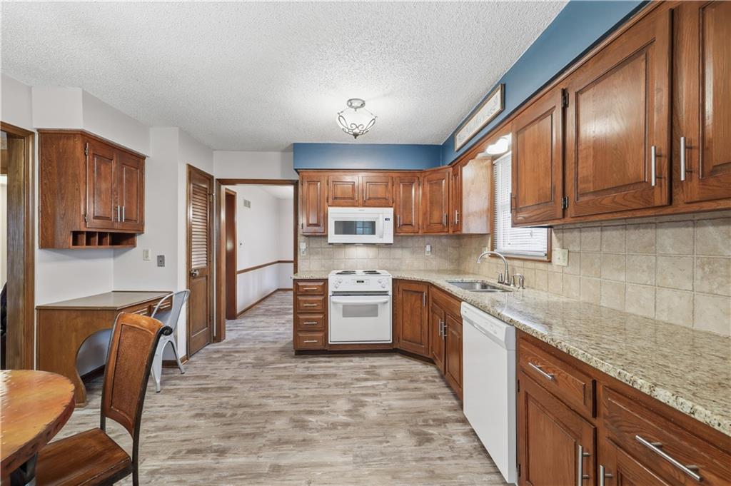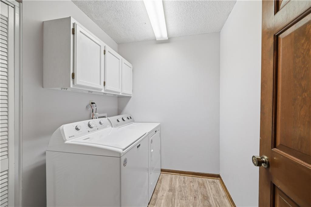Welcome to this beautifully maintained, move-in ready full ranch in the established Castle Woods neighborhood of Independence. This 3-bedroom, 2.5-bath home offers comfortable main floor living in a quiet community with convenient access to highways, shopping, and dining. Step inside to find a spacious entry that leads to an impressive great room with vaulted ceilings, exposed beams, built-ins, and a dramatic fireplace that creates a warm and inviting gathering space. The eat-in kitchen features granite countertops, updated backsplash, and a formal dining area perfect for entertaining. The main level is one-step entry from garage, and includes a separate laundry room with extra storage. The primary suite offers dual closets with built-in organization and shelving to maximize storage, along with a private en-suite bath. Downstairs, the fully finished lower level provides a wide open recreation room with a fireplace, a non-conforming bedroom, and abundant storage space. Recent updates include new refrigerator, new luxury vinyl plank flooring, newer carpet, a newer furnace (Jan 2024), new hot water heater, and Maytag washer and dryer. Outdoor features include an oversized patio, privacy-fenced backyard, and a large storage shed with ramp access. The backyard is private and peaceful, and with the shed, ideal for pets, hobbies, or outdoor entertaining. Over the years, the sellers have made thoughtful improvements such as updated windows, driveway, kitchen and bath hardware, light fixtures, granite countertops, backsplash, and easy-care landscaping. This home has been meticulously cared for and reflects true pride of ownership throughout.