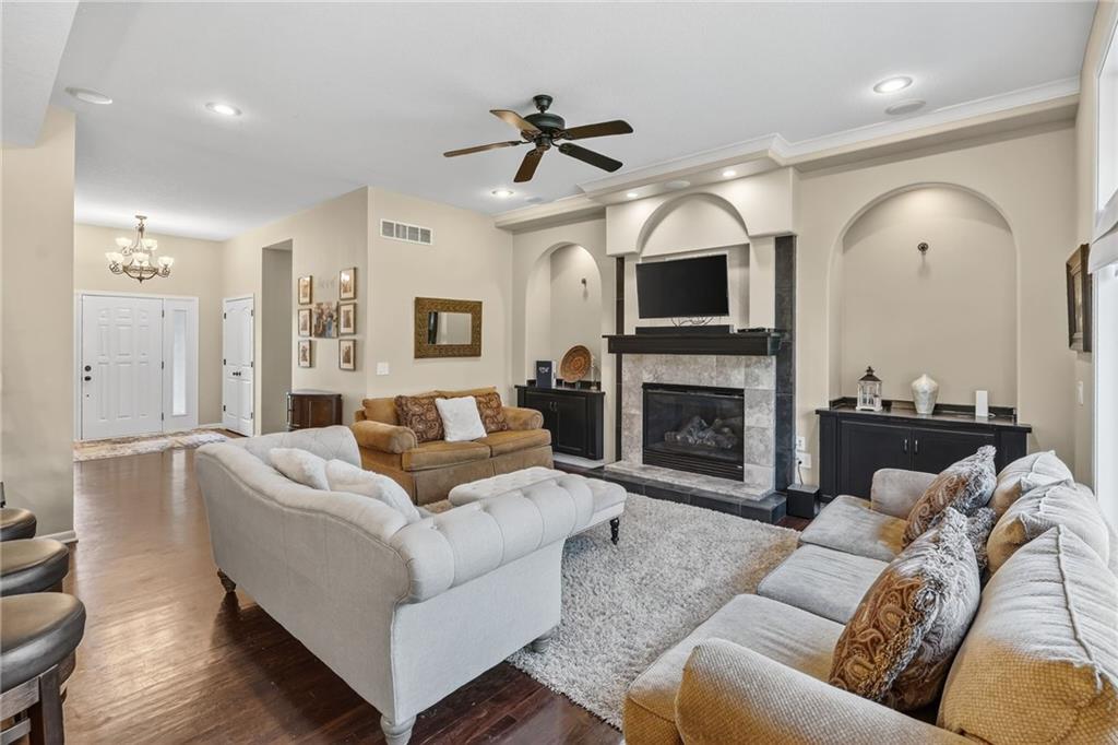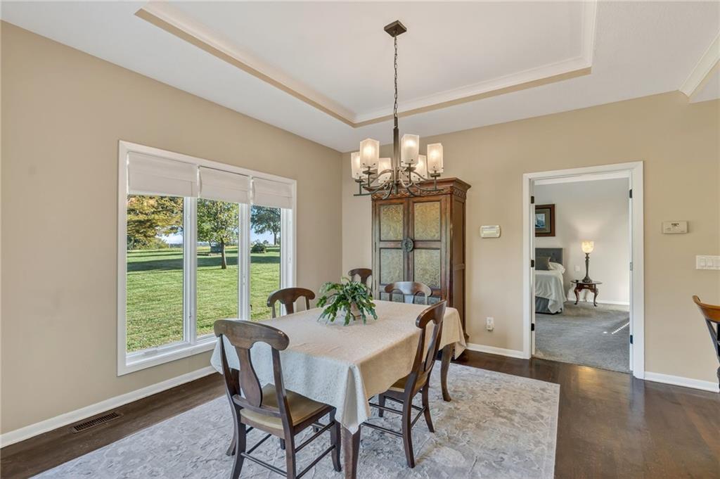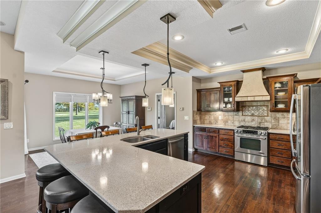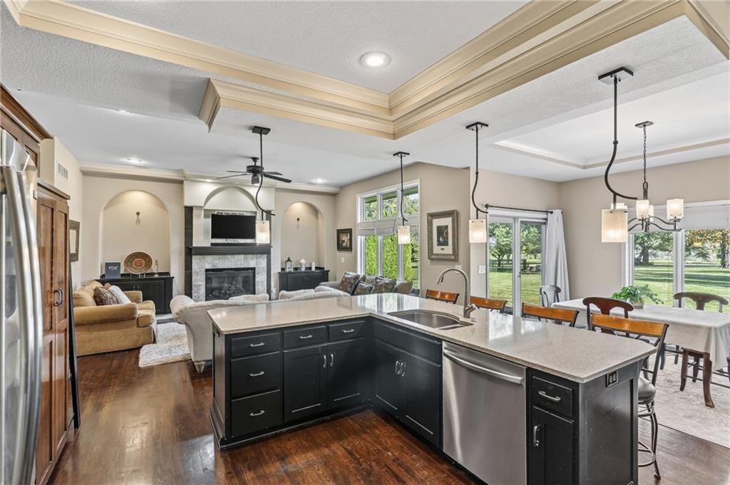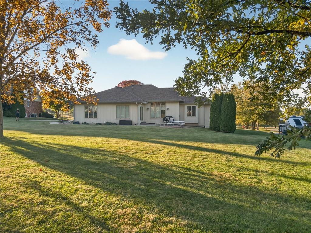 Want the serenity of acreage living—without the endless upkeep? Welcome home. This custom-built masterpiece sits gracefully on a half-acre, surrounded by open fields that stretch endlessly in front and behind, offering uninterrupted views of both sunrise and sunset. Every window frames a moment of beauty, every detail whispers sophistication. Step inside to an expansive open floor plan where sunlight dances across hardwoods and architectural details—arched entries, trayed ceilings, and a custom fireplace that anchors the heart of the home. The chef’s kitchen is nothing short of spectacular: a massive island with seating for seven or more, top-of-the-line gas range and hood, abundant custom cabinetry, and endless counter space that invites gathering, creating, and connection. On the main level, discover three spacious bedrooms, a dedicated office, and the convenience of main-floor laundry. The primary suite feels like a private retreat—complete with a spa-inspired bath featuring a sliding barn door, jetted tub, dual shower heads, double sinks, and an enviable walk-in closet. Two additional bedrooms share a beautifully appointed Jack-and-Jill bath, each with its own walk-in closet. Downstairs, the possibilities expand. A large finished basement with tall ceilings offers a true fourth bedroom, two non-conforming bedrooms, a theater room, and an expansive storage area with built-in shelving. Outside, a flat backyard blends seamlessly into open countryside—peaceful, private, and perfect for gatherings under the stars. The oversized three-car garage has been professionally finished to perfection, ready for cars, hobbies, or an extra workspace. With updated lighting, fresh paint throughout, and a newer roof, this home delivers the ideal blend of refined living and effortless country calm—where every day begins and ends with a view worth a million dollars.