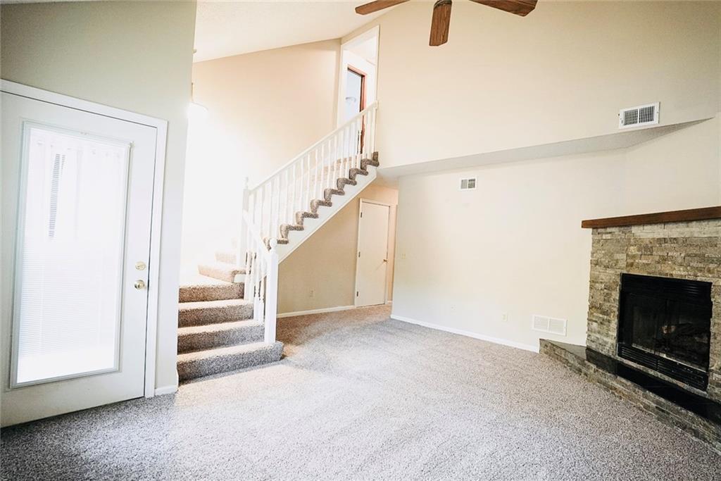 Tons of space in this half-duplex in Olathe with convenient highway access! Master on main level! New carpet in family room and bedrooms, large bedrooms w/walk-in large closets, fireplace, Large open kitchen with pantry & lots of cabinets! new paint, new SS appliances, LVT in hall kitchen and baths. Garage door opener & remote. Tall Privacy/fenced yard. New sod in backyard. Seller just purchased a one year home warranty! Priced to sell quick!!!