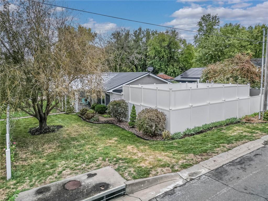 COMPLETELY UPDATED AND MOVE-IN READY, THIS STUNNING 3-BEDROOM RANCH BLENDS MODERN COMFORT WITH SMART, ENERGY-EFFICIENT LIVING! Thoughtfully renovated from the ground up, the home features all-new plumbing, electrical (including a new main line), windows, flooring, kitchen, and baths—plus a new metal roof added last year. With 36 solar panels for low energy costs, this home is as practical as it is beautiful. The bright, open floor plan offers vaulted ceilings, a cozy fireplace in the living room, and a chef’s kitchen with a gas cooktop, built-in appliances, and custom countertops. The primary suite impresses with vaulted ceilings, double vanities, a spacious walk-in shower, and dual walk-in closets. A sunny enclosed porch opens to a private backyard with a gazebo, garden space, and an above-ground pool with a new liner—perfect for summer relaxation. The detached garage provides extra storage with an upstairs loft, all on a well-maintained corner lot with privacy fencing and a convenient location close to everything.