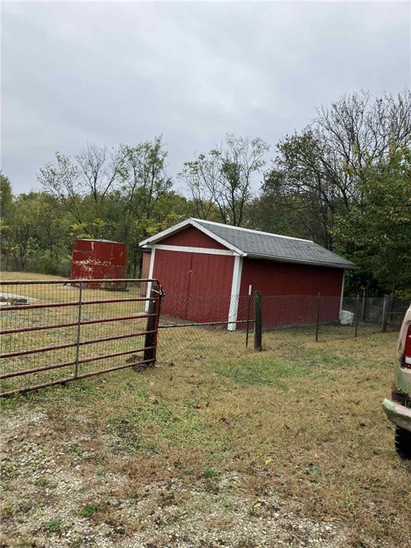 Starter home 3 bedroom 1.5 bath. Detached garage, storage building, storm shelter all located on 1 acre of ground. City utilities- Blue Mound Kansas