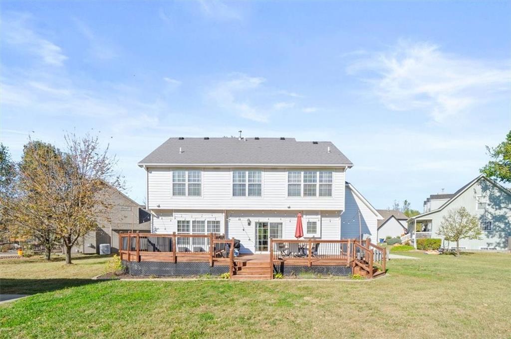 Welcome to your new home in the heart the desired Briarwood Subdivision! This spacious two-story home sits proudly on just under an acre, the largest lot in the cul-de-sac! The main floor features rich hardwood floors, large windows that fill each room with natural light, and an inviting open layout made for both relaxing and entertaining. The kitchen is a true highlight, boasting beautiful quartz countertops, a spacious custom island offering plenty of storage, and room to cook and connect with loved ones. With five comfortable bedrooms and four full bathrooms, there’s plenty of space for everyone to spread out. The finished basement adds even more versatility—perfect for a playroom, media space, or home gym. Outside, your massive backyard is ready for every season, cozy fall evenings by the fire pit, and kids laughing in the adorable playhouse. There’s truly space for everyone and everything here. Offering the perfect setting for outdoor fun, family gatherings, and making memories for years to come. Located in the friendly town of Eudora, KS, you’ll enjoy the peace of small-town living with easy access to Lawrence and the Kansas City metro. **NEW ROOF TO BE COMPLETED By Monday, November 3 weather permitting!**