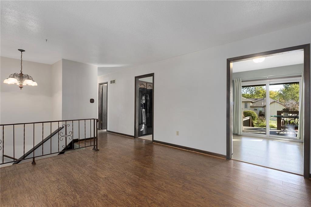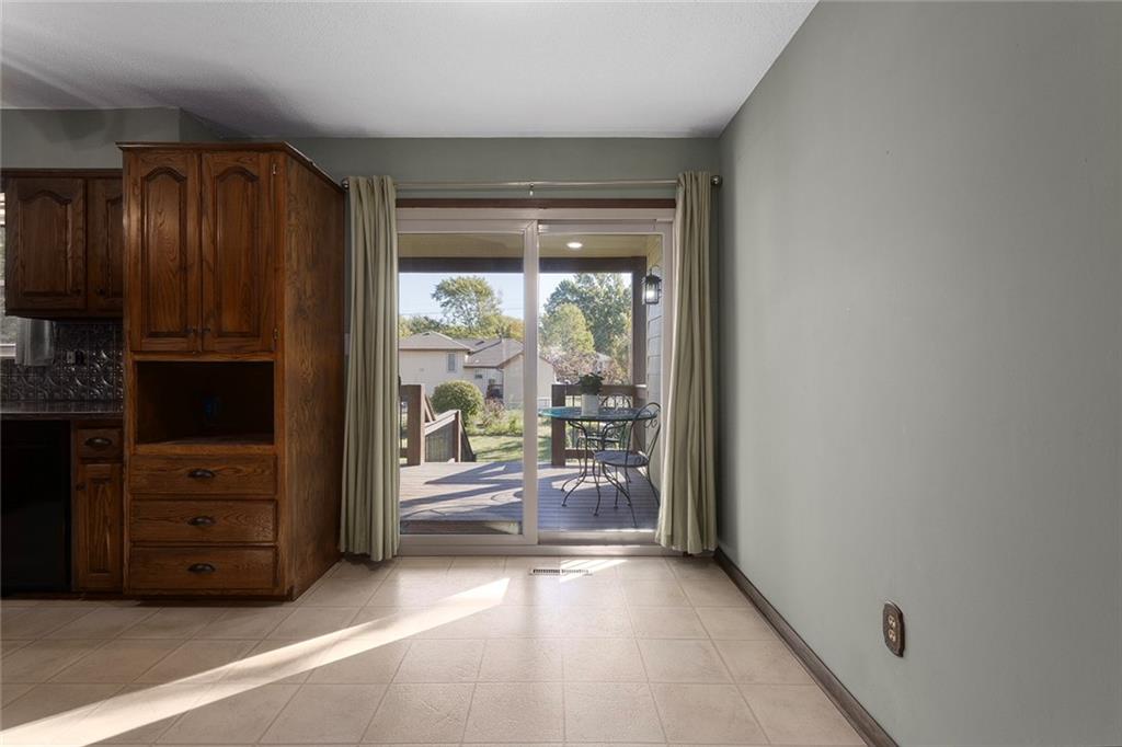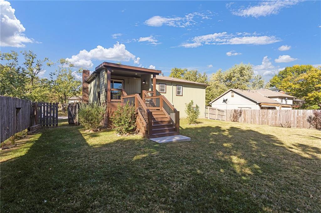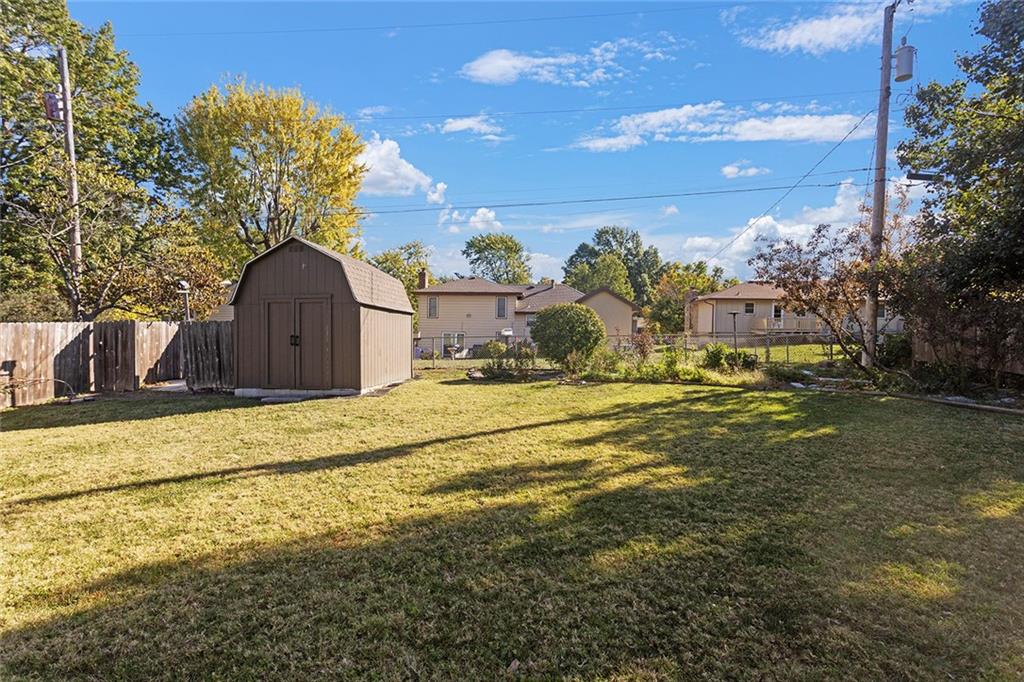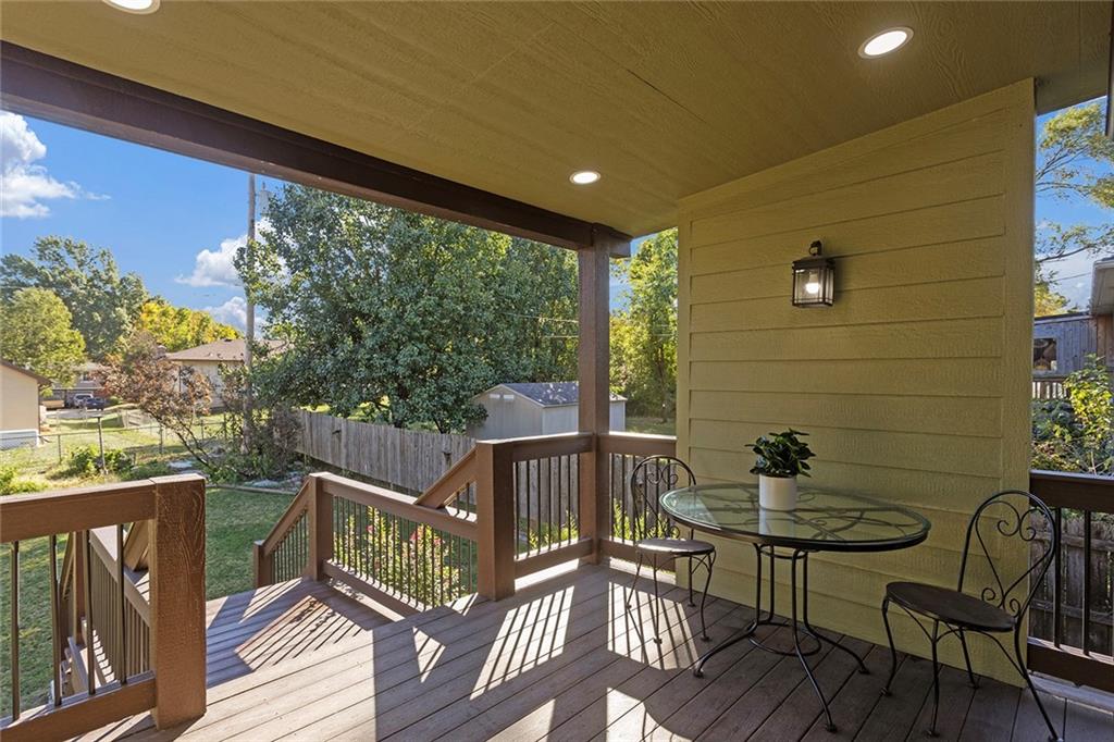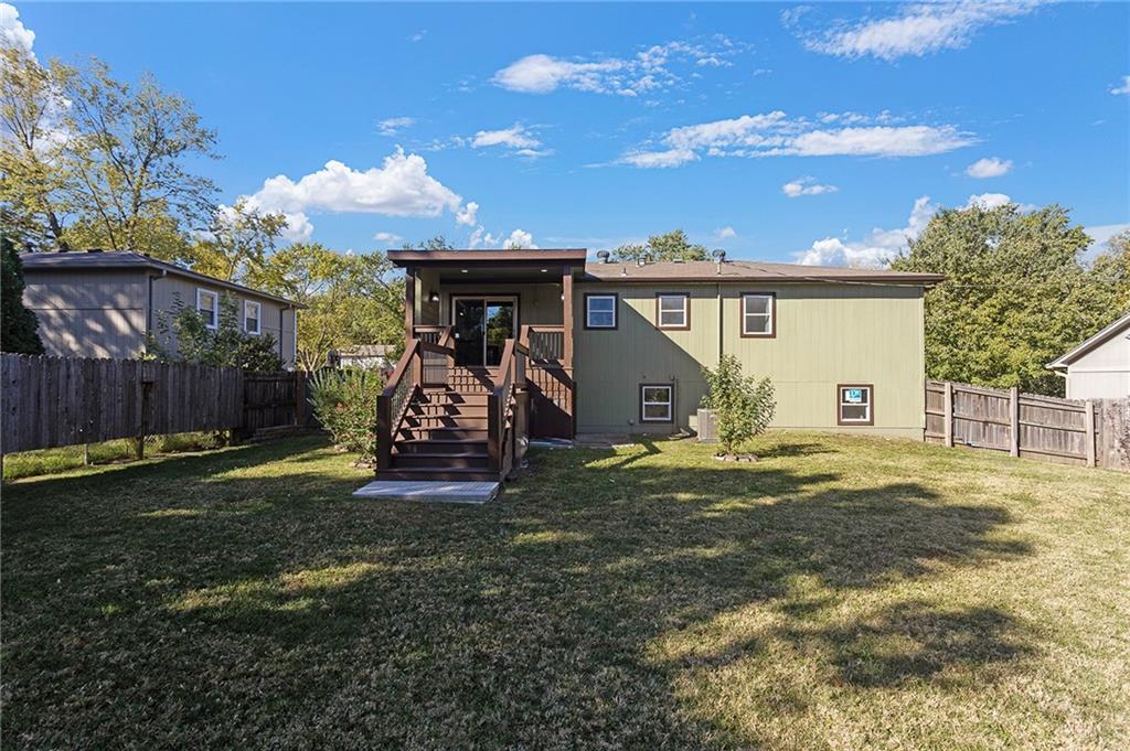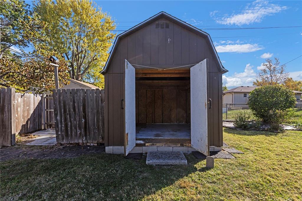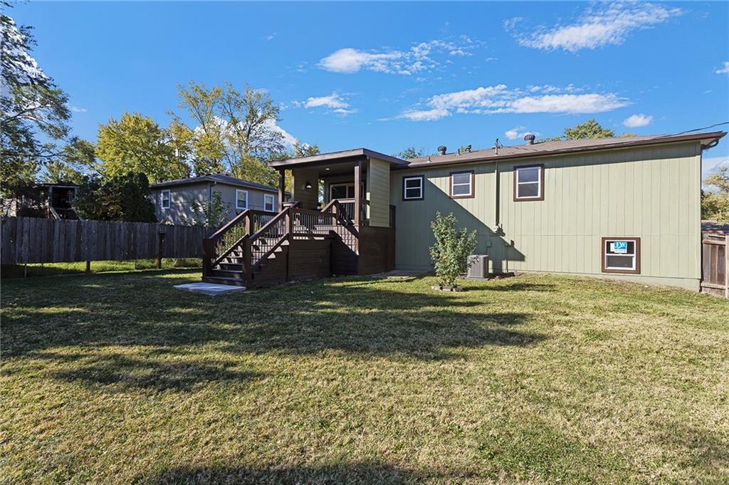 Thoughtfully maintained Olathe gem! Main level features primary bedroom, (2) secondary bedrooms and full bath. Newer HVAC, water heater, and windows, plus low-maintenance composite decking in front and back. Beautiful, spacious fenced backyard with an oversized shed that’s well-kept, and ready for use. All appliances stay! Downstairs you'll find a second unfinished living area with fireplace that could be used as an additional family room, office or non-conforming 4th bedroom, stubbed for bath as well. Lots of possibilities to make this one your own!
