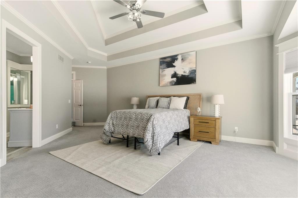 Wonderful main level living opportunity to buy in Loch Lloyd and experience the fantastic neighborhood, lifestyle, community and amenities of Loch Lloyd! Seller has spared no expense updating the home inside and out and spent over 225K in updates including all major mechanicals, Kitchen remodel, Master bathroom remodel, fabulous covered outdoor space, new driveway with lifetime sealant and more. Lot is generously sized and backs to walking trails and greenspace. Open concept 1.5 story with main level Master, laundry, versatile office/dining room and large living room for entertaining. Two bedrooms are located upstairs and a 4th bedroom with en-suite is located in the lower level with bar and living room. Don’t wait to view this one!!