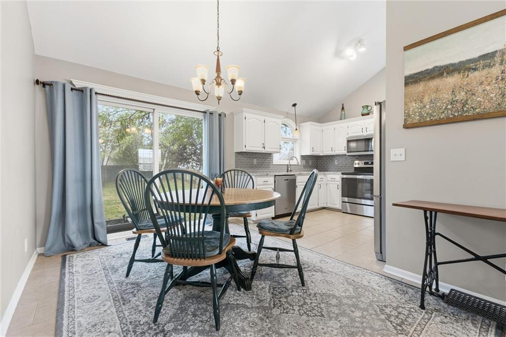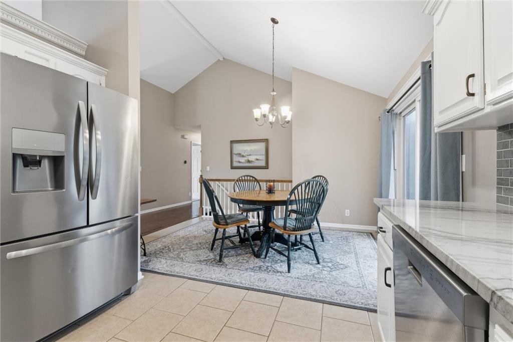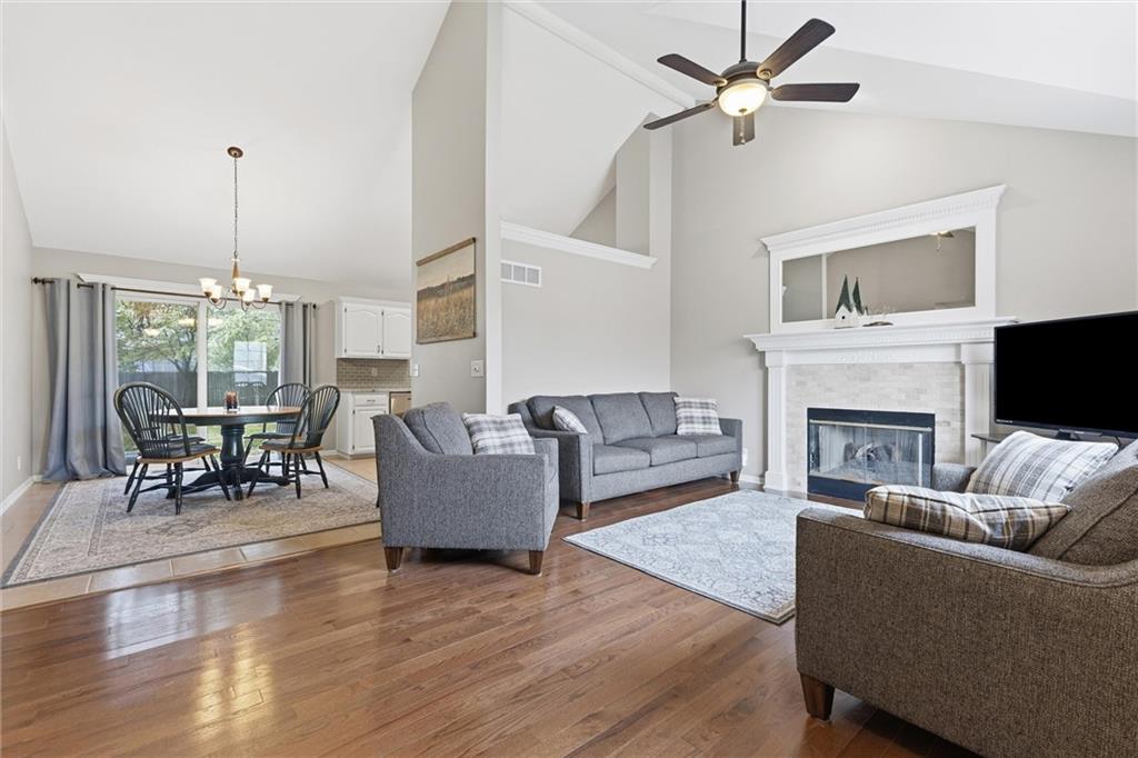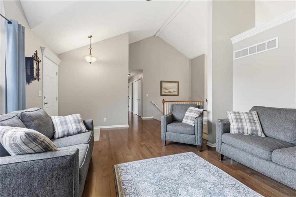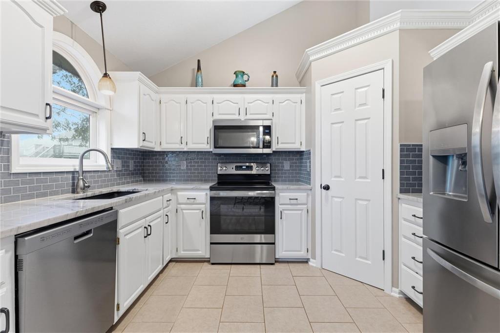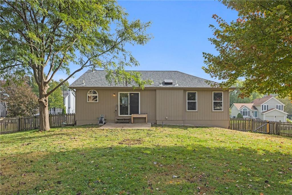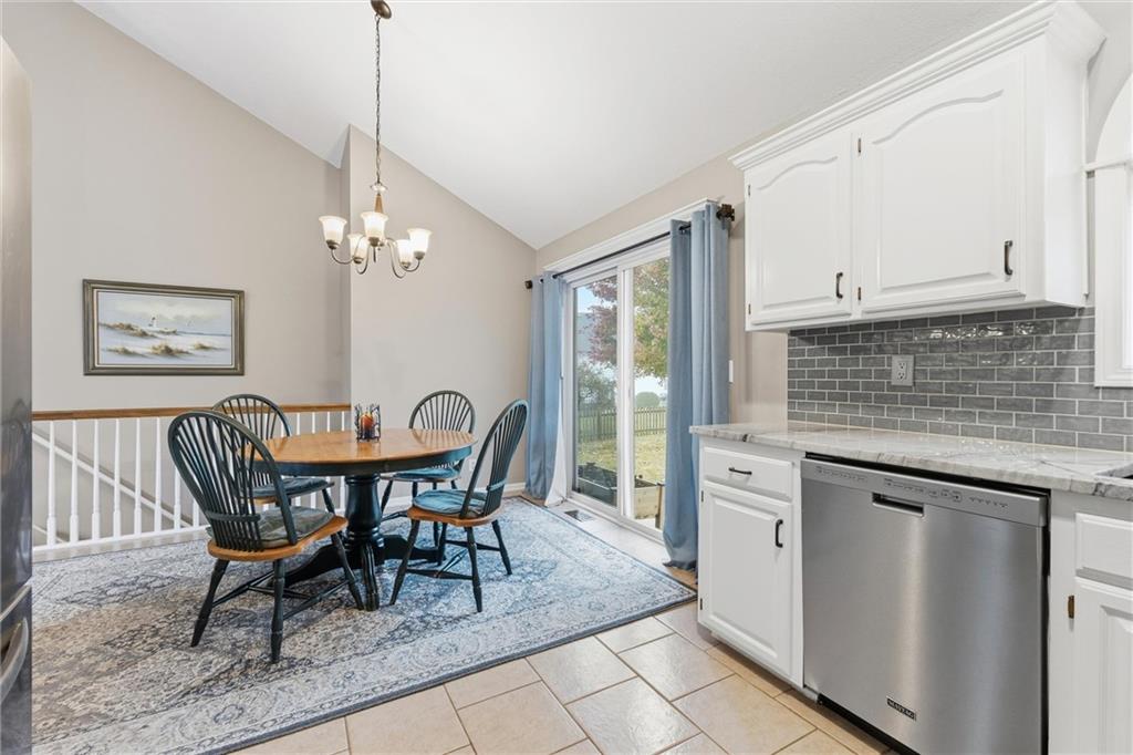 This beautifully maintained raised ranch offers great curb appeal and is located in a quiet, private neighborhood just 10 minutes from the airport, within the highly sought-after Staley High School area. The community features a beautiful park with two playgrounds, a pavilion with BBQ grills, and a fully stocked fishing pond—perfect for relaxing weekends or evening walks. Inside, the main level includes laundry conveniently located near the bedrooms, a spacious family room with vaulted ceilings, and a walk-in pantry in the fully updated kitchen. The primary suite offers a private bath and walk-in closet, adding to the comfort and functionality of the layout. The kitchen was fully remodeled in 2023, featuring refinished cabinetry, stunning quartzite countertops, a stylish new backsplash, and all new appliances, which stay with the home. The finished basement provides an additional living area and a full bathroom—perfect for guests or entertaining. Major upgrades include a brand-new roof (less than one year old), new garage doors, tracks, motors, and springs, and a whole-house humidifier. Outside, enjoy the large, private fenced backyard—perfect for pets, family gatherings, or relaxing evenings. Pride of ownership shines throughout every inch of this home—well cared for over 15+ years and truly move-in ready in a fantastic location!