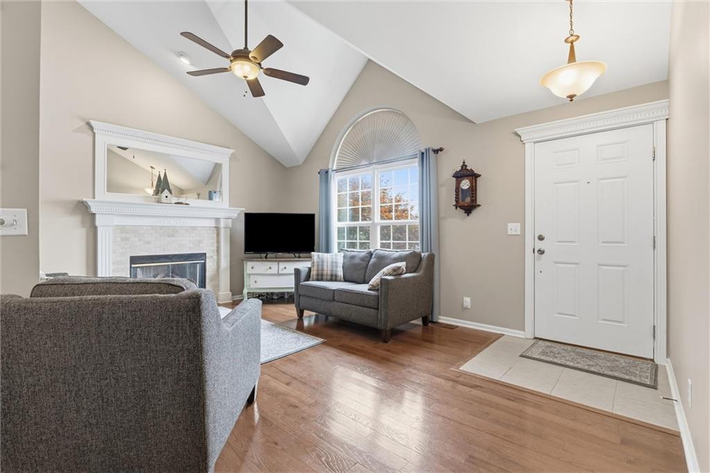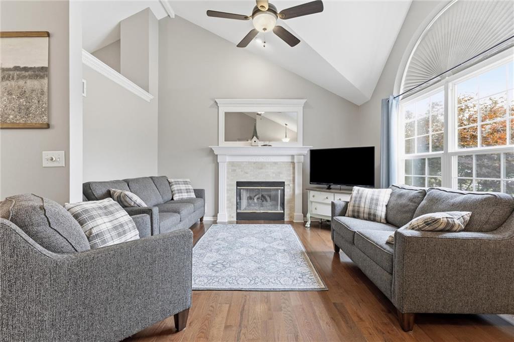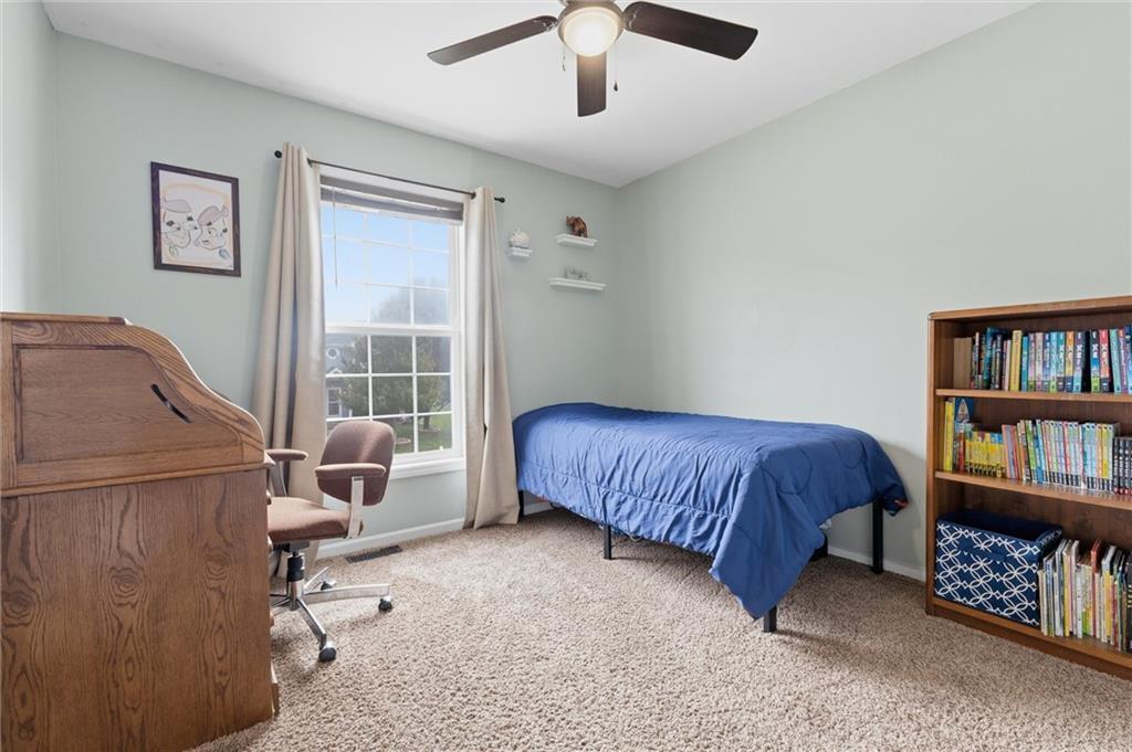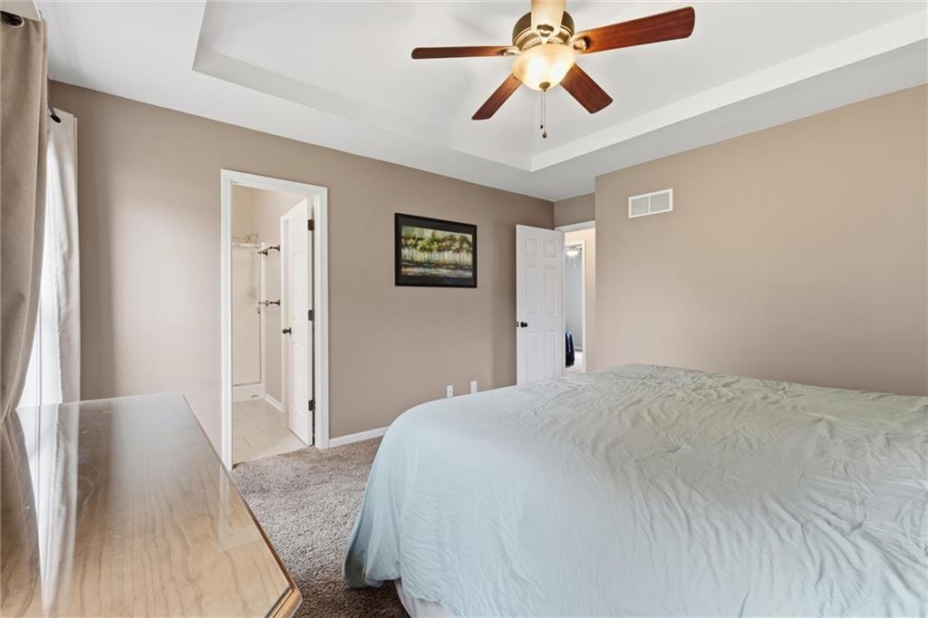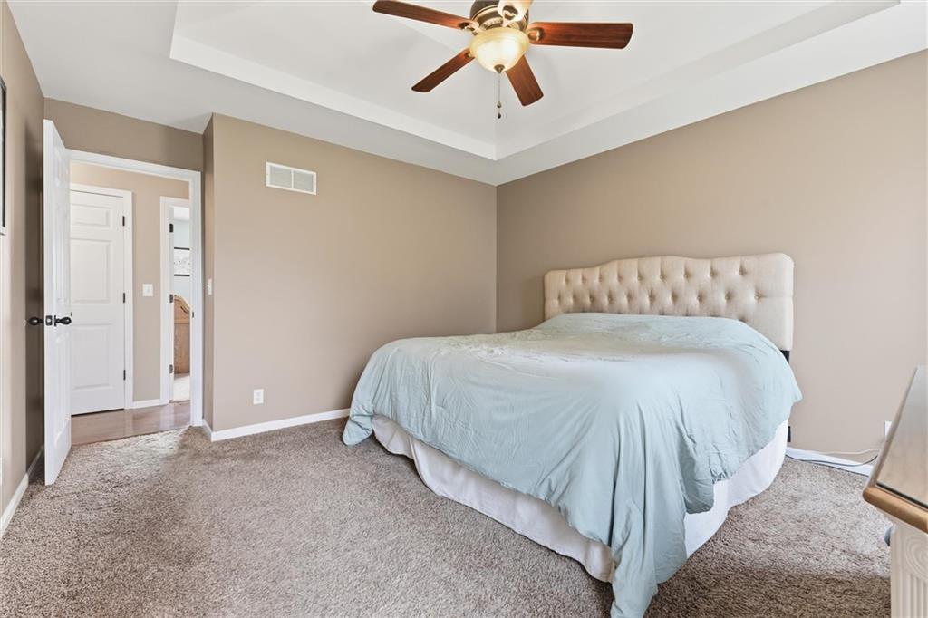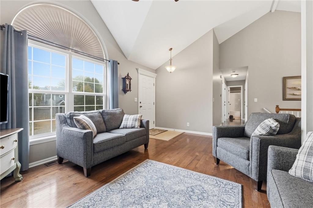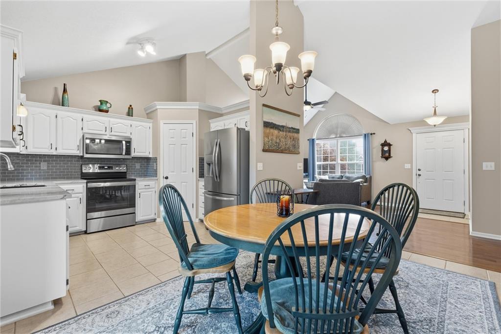 This beautifully maintained raised ranch offers great curb appeal and is located in a quiet, private neighborhood just 10 minutes from the airport, within the highly sought-after Staley High School area. The community features a beautiful park with two playgrounds, a pavilion with BBQ grills, and a fully stocked fishing pond—perfect for relaxing weekends or evening walks. Inside, the main level includes laundry conveniently located near the bedrooms, a spacious family room with vaulted ceilings, and a walk-in pantry in the fully updated kitchen. The primary suite offers a private bath and walk-in closet, adding to the comfort and functionality of the layout. The kitchen was fully remodeled in 2023, featuring refinished cabinetry, stunning quartzite countertops, a stylish new backsplash, and all new appliances, which stay with the home. The finished basement provides an additional living area and a full bathroom—perfect for guests or entertaining. Major upgrades include a brand-new roof (less than one year old), new garage doors, tracks, motors, and springs, and a whole-house humidifier. Outside, enjoy the large, private fenced backyard—perfect for pets, family gatherings, or relaxing evenings. Pride of ownership shines throughout every inch of this home—well cared for over 15+ years and truly move-in ready in a fantastic location!