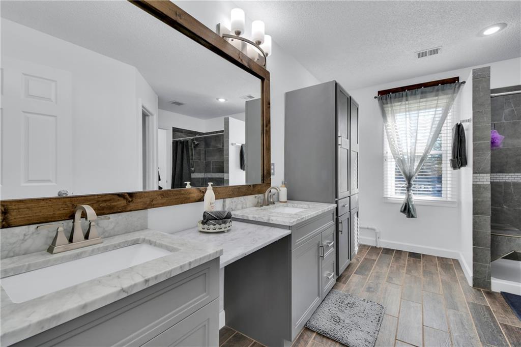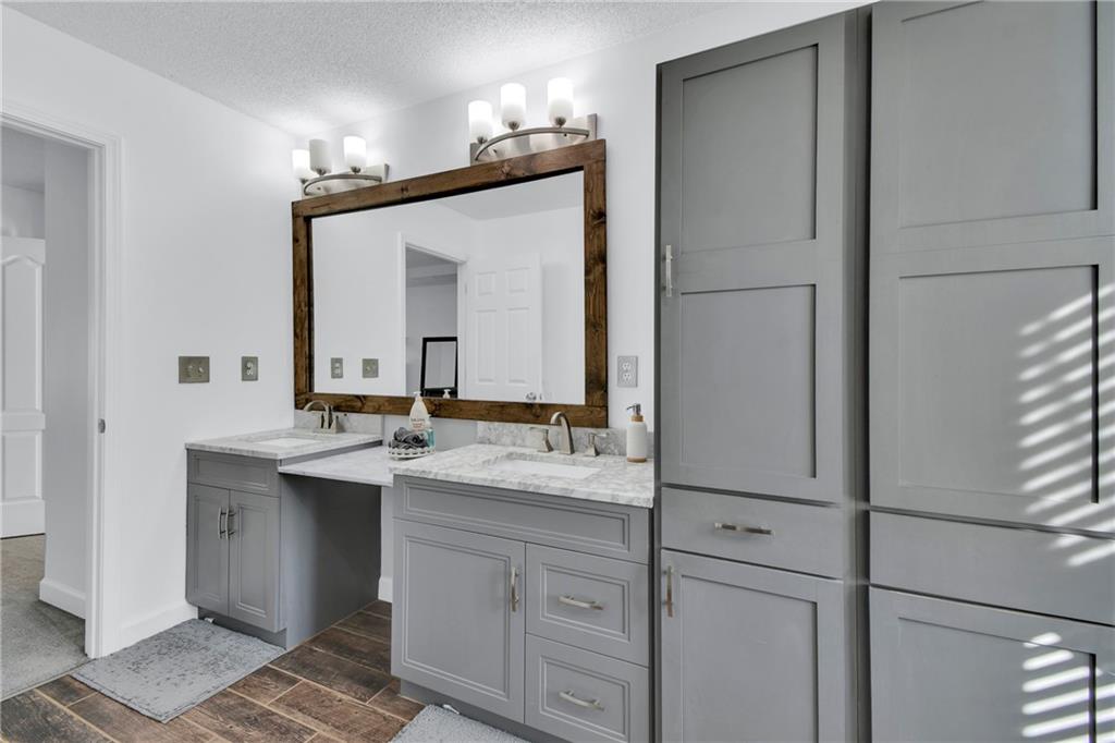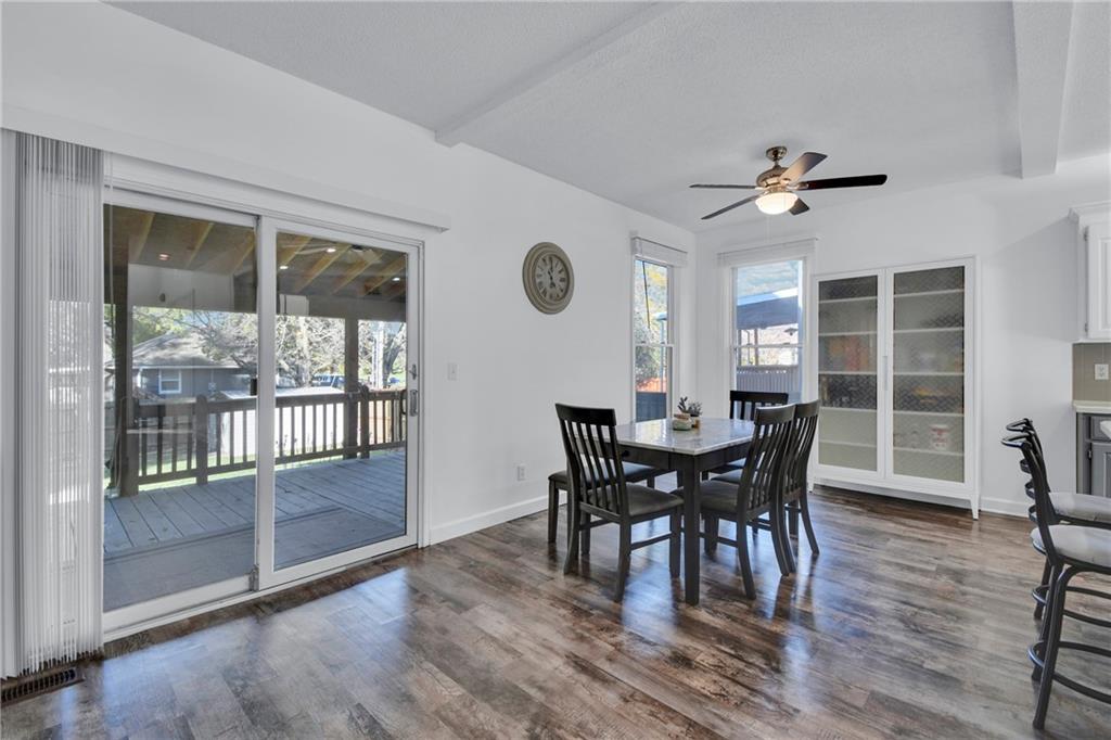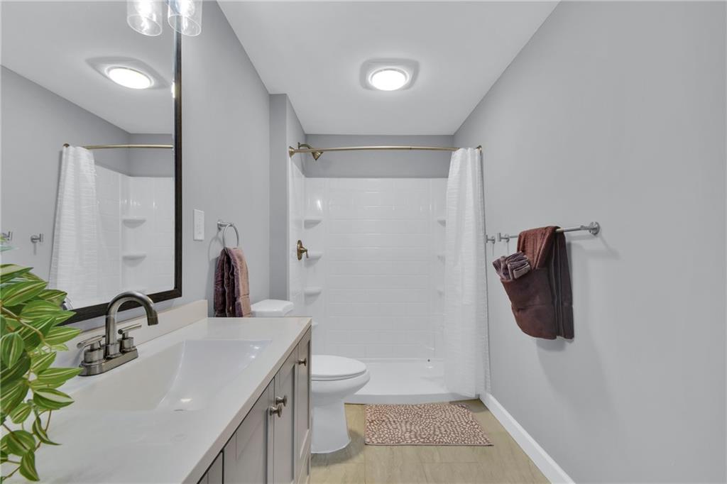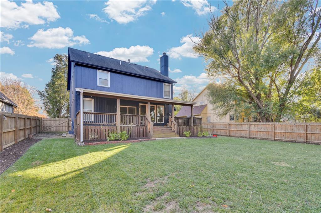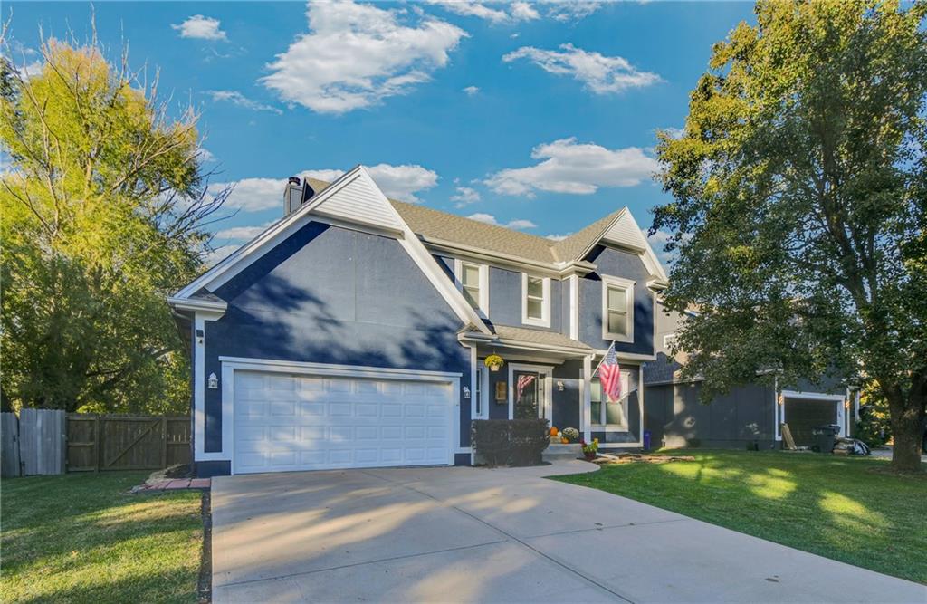 Beautifully Updated Home in Award-Winning Olathe Schools! Stunning curb appeal and timeless charm welcome you to this immaculate 2-story home, ideally located in the highly sought-after Olathe School District just behind Chisholm Trail Middle School and near Sunnyside Elementary, with quick access to Garmin HQ, highways, restaurants, and shops. Step inside to a freshly painted bright white interior that feels modern and inviting. The open floor plan features newer luxury vinyl plank flooring throughout the main level, seamlessly connecting the spacious living room, dining area, and kitchen. The kitchen offers ample and bright cabinets, plenty of counter space, and newer appliances perfect for everyday living and entertaining. The living room greats you with a cozy fireplace and large windows overlooking the covered back deck and beautifully maintained backyard, ideal for outdoor gatherings or quiet evenings. Upstairs, the light-filled primary suite includes double vanities, a walk-in shower, and a generous walk-in closet. The basement is complete with a full bathroom, adding versatile living space perfect for a family room, gym, or home office. With its prime location, stylish updates, and welcoming neighborhood, this home is truly move-in ready!