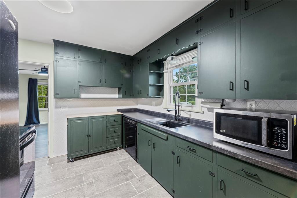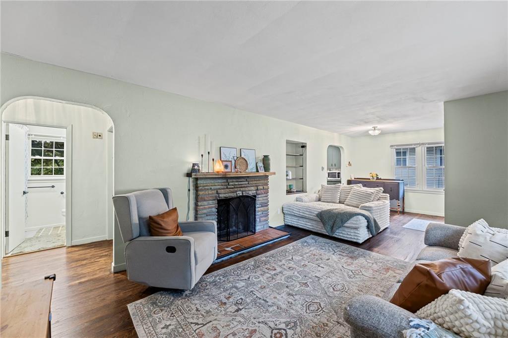 DON'T MISS OUT on this cozy, stylish, and move in ready home nestled in the Northland. As you arrive to the home, you will notice an extra long driveway providing tons of parking for family gatherings or football tailgates! Enter through the front door and you are greeted with beautifully refinished original hardwood floors, trendy wall colors, and a warm and inviting fireplace. In the kitchen you will find tasteful and modern updates such as: painted cabinets, new tile flooring, backsplash, countertops, fixtures, and a mobile island (which stays with the home!) providing additional counterspace for all of your cooking needs. The main bathroom features new tile floor, new sink, toilet, mirror, and fixtures. Continue to the oversized master bedroom, featuring a walk in closet, tons of natural light, and a door to the exterior. The backyard is massive, treed, and serene. Close to highways, shopping, trails and parks. A MUST SEE!