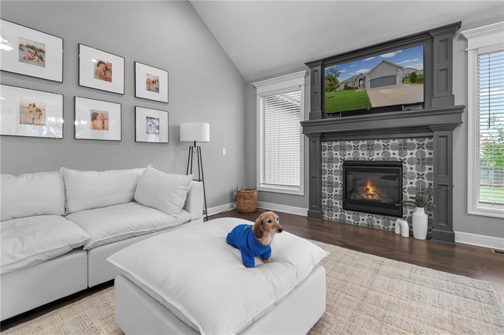 Meet Maggie, our adorable long-haired miniature dachshund and proud mascot — you’ll spot her in two of the listing photos, ready to give you a warm welcome home! This charming 5-bedroom, 3-bath ranch offers the perfect blend of comfort and style. The great room features soaring ceilings and a cozy gas fireplace, creating an inviting space to relax. The kitchen boasts beautiful wood cabinets, granite countertops, and an oversized island with a breakfast bar — ideal for entertaining. A separate dining area opens to a covered patio with a ceiling fan, perfect for outdoor enjoyment. The primary suite showcases a 10-foot tray ceiling, a spacious walk-in closet, and a luxurious bath with ample storage, a soaking tub, and a separate shower. Two additional bedrooms and a full bath are located off the great room. The finished basement adds even more living space, featuring a large rec room, two bedrooms, and a shared full bath. With laundry hookups on both the main level and in the garage, a two-car garage, a sprinkler system, and access to nearby parks, walking trails, and community amenities — this home has it all. Maggie says, “Welcome home — you’re going to love it here!”