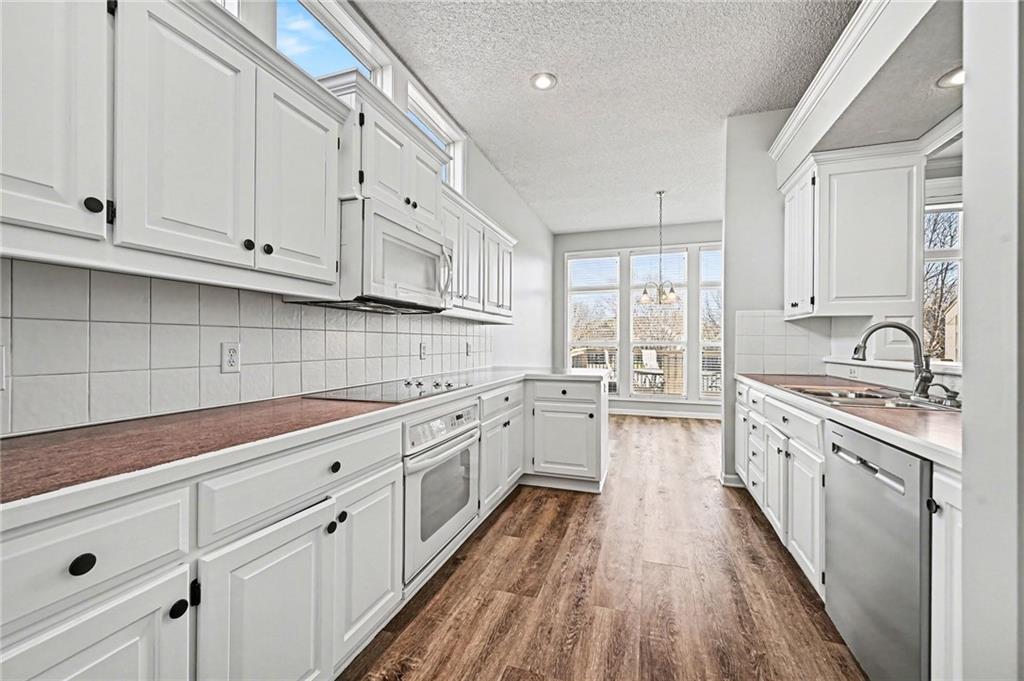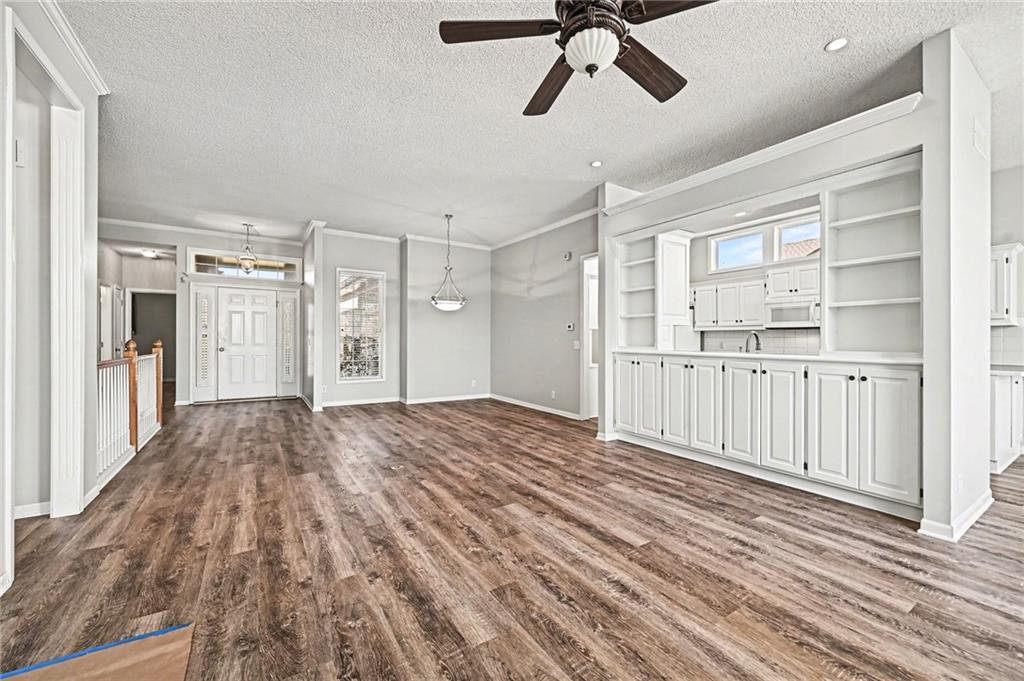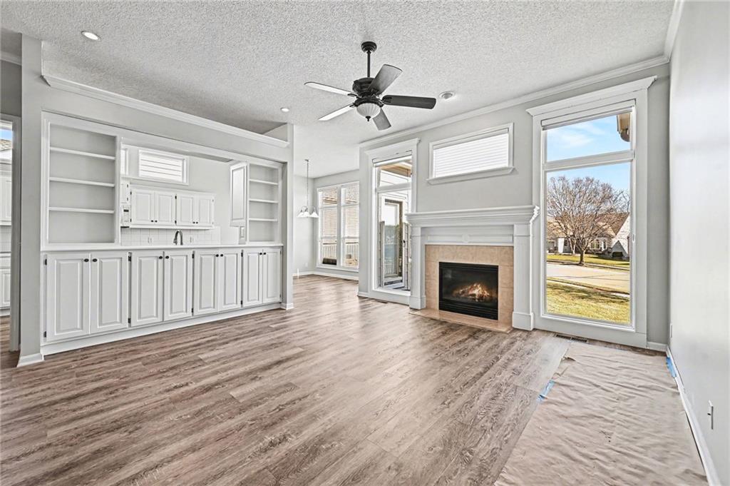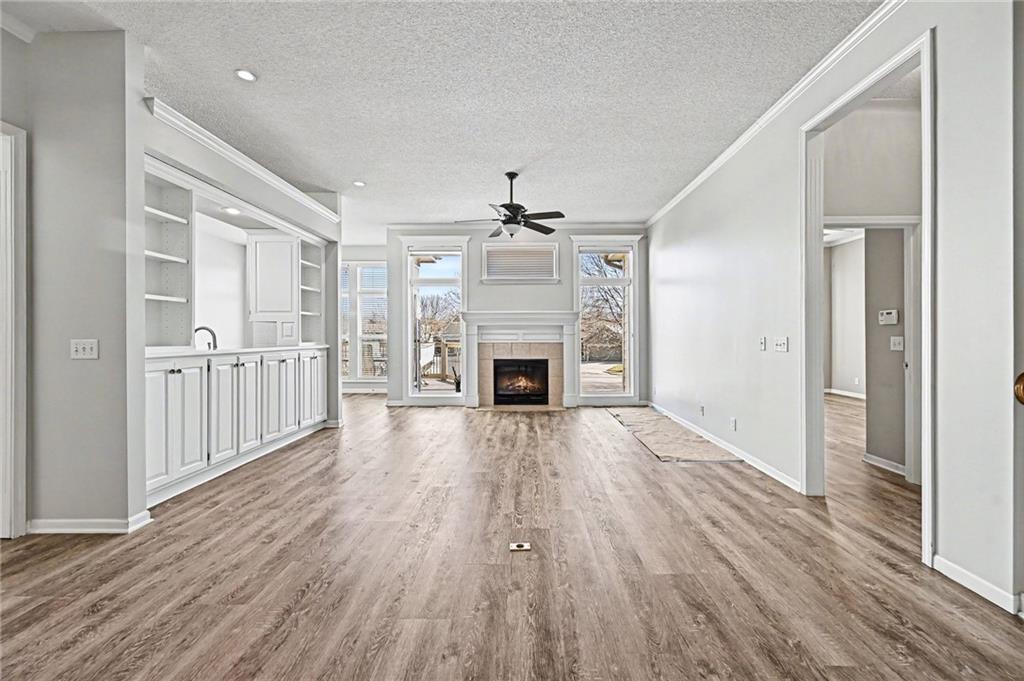 Reverse ranch on a corner lot tucked within a small cul-de-sac offering low-maintenance living with lawn care and snow removal included through the HOA. Main-level living features an open layout connecting the living room, dining area, and eat-in kitchen with LVP flooring, updated lighting, and freshly painted walls and cabinets. A cozy fireplace anchors the main space, perfect for everyday gatherings. The primary suite includes a private bath, while a second bedroom and full hall bath complete the main floor. From the two-car garage, step directly into the laundry room leading to the kitchen for convenience. The daylight lower level offers a spacious family room, two additional bedrooms, a full bath, and 600 sq ft of unfinished storage. Enjoy evenings on the newly painted deck overlooking the landscaped yard. Close to Barry Road shopping and dining, Line Creek Trail, and Zona Rosa — easy living in a quiet north Kansas City community. ?? Nearby Amenities Barry Road shops and dining – 0.5 mi Line Creek Trail and Park – 0.6 mi Zona Rosa Town Center – 1.1 mi Highway 152 access – 0.8 mi