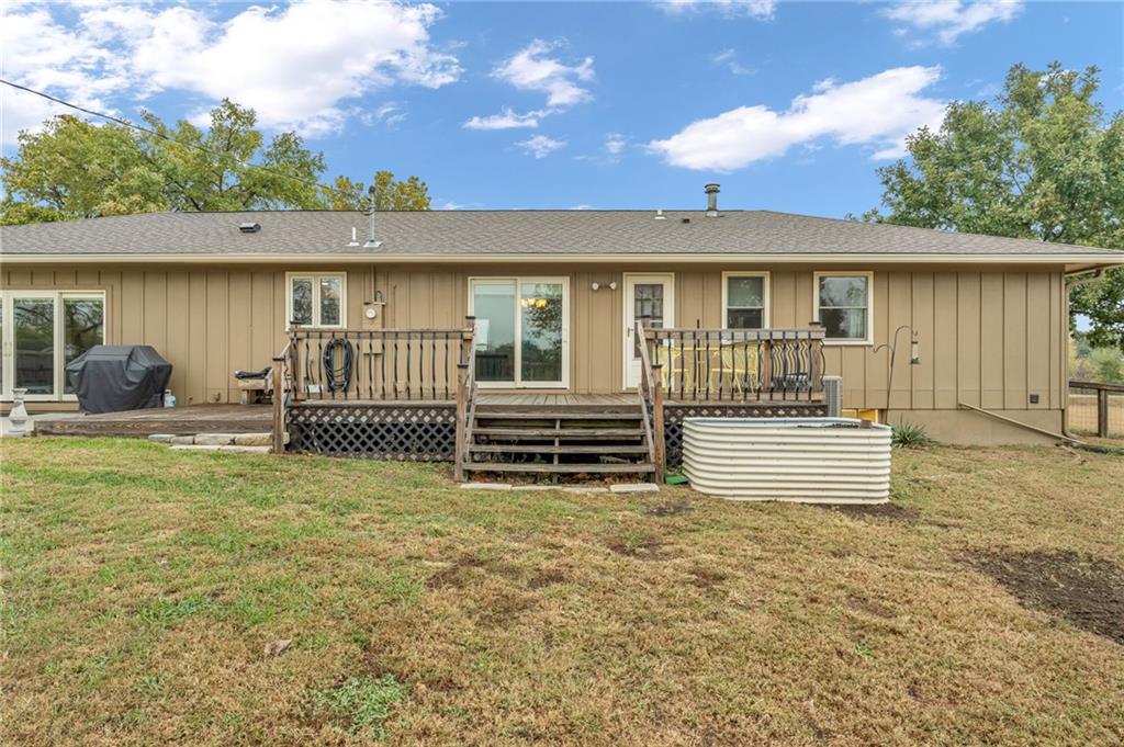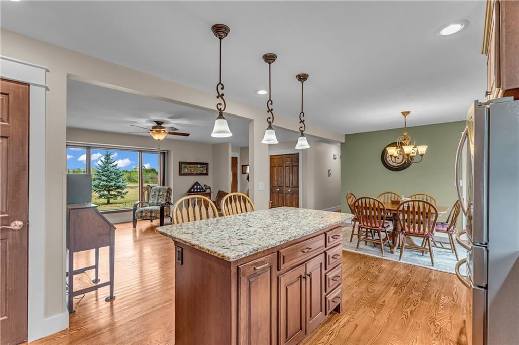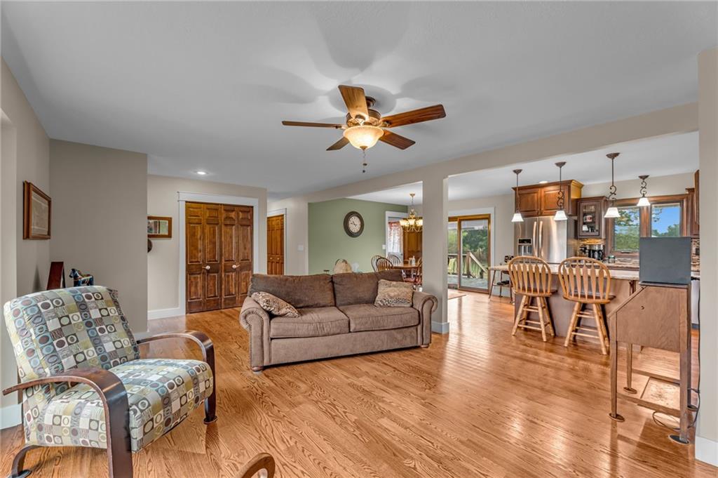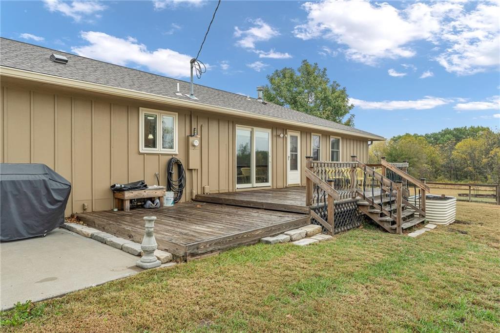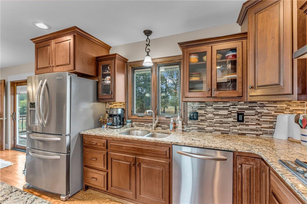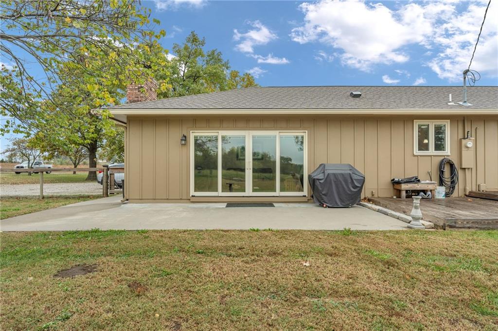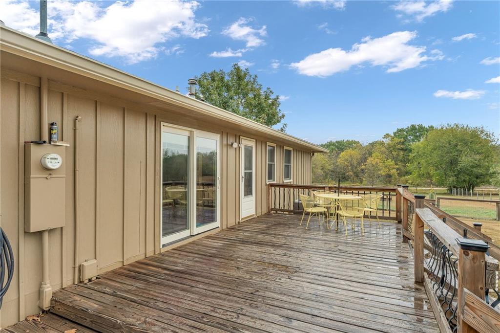 Nestled just northeast of Lawrence, this beautifully updated ranch-style home offers the perfect blend of tranquility and convenience. Located just minutes from I-70 and North Lawrence, it provides easy access to both city amenities and peaceful countryside living. The main level features four spacious bedrooms and two bathrooms. Step inside to an open floor plan that showcases a beautiful kitchen, living room, and dining area. Highlights include hardwood floors, stainless steel appliances, and energy-efficient doors throughout. The fully finished basement offers a second living space with a luxurious shower and a non-conforming bedroom—perfect for guests or a home office. Enjoy year-round comfort with a heated garage, a generous rear patio overlooking open green space—ideal for relaxing or hosting gatherings. This property is a must-see for anyone seeking space, style, and serenity just outside the city.