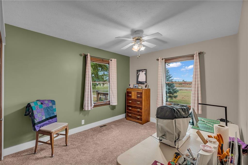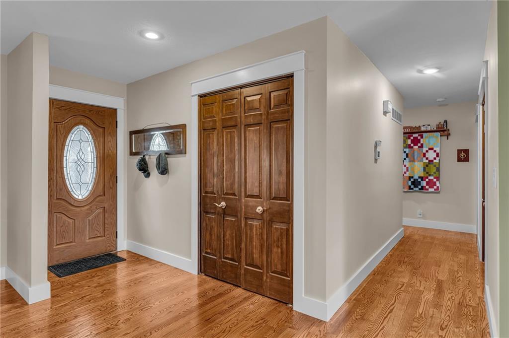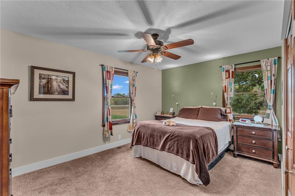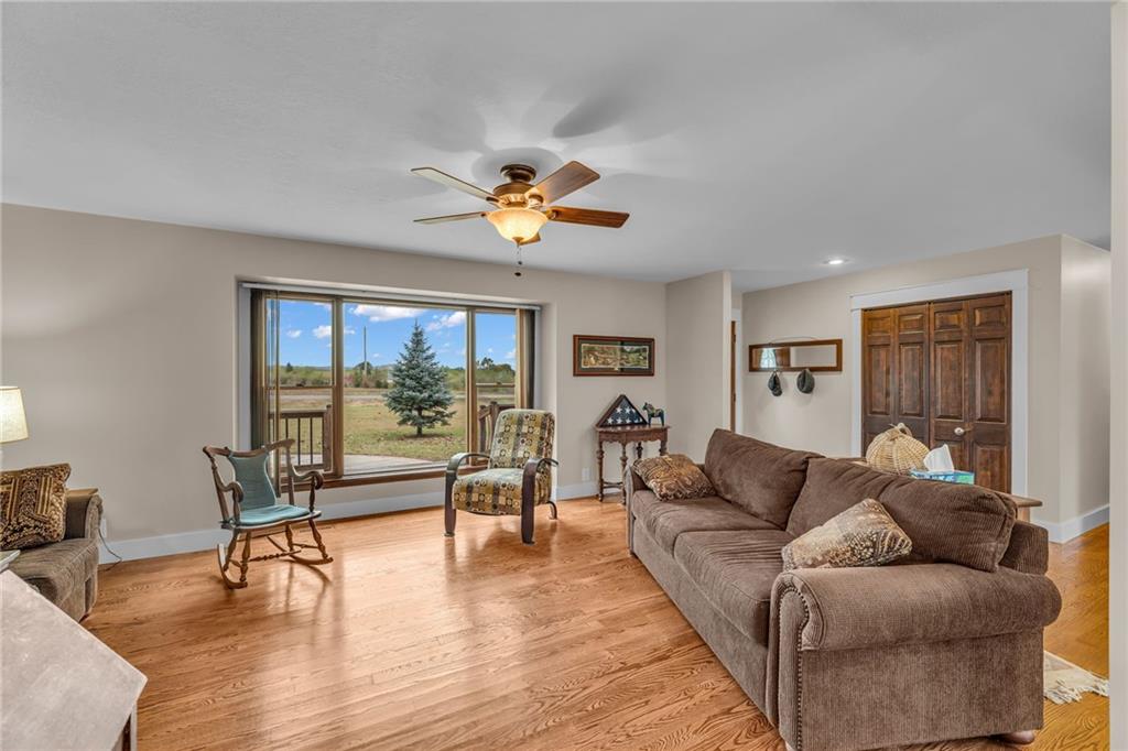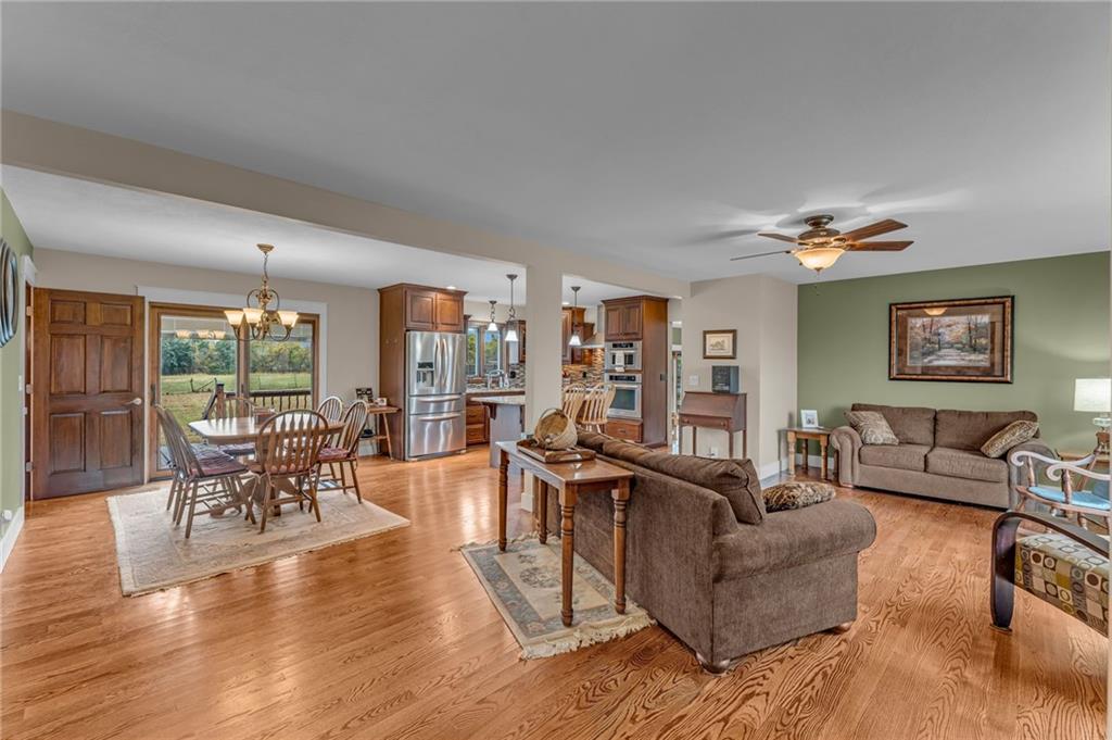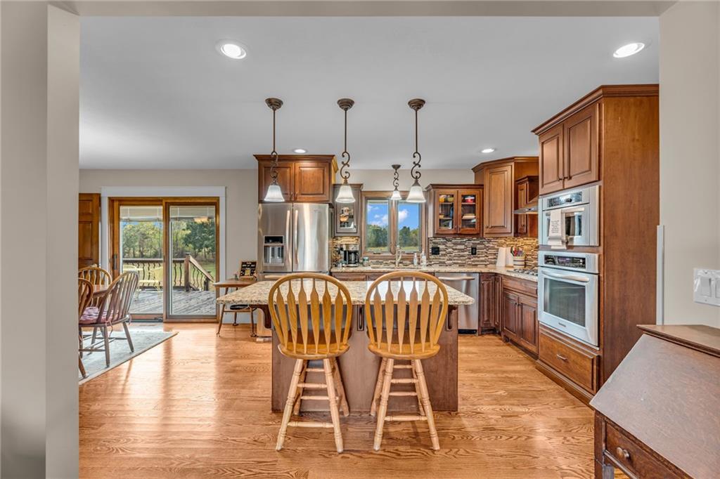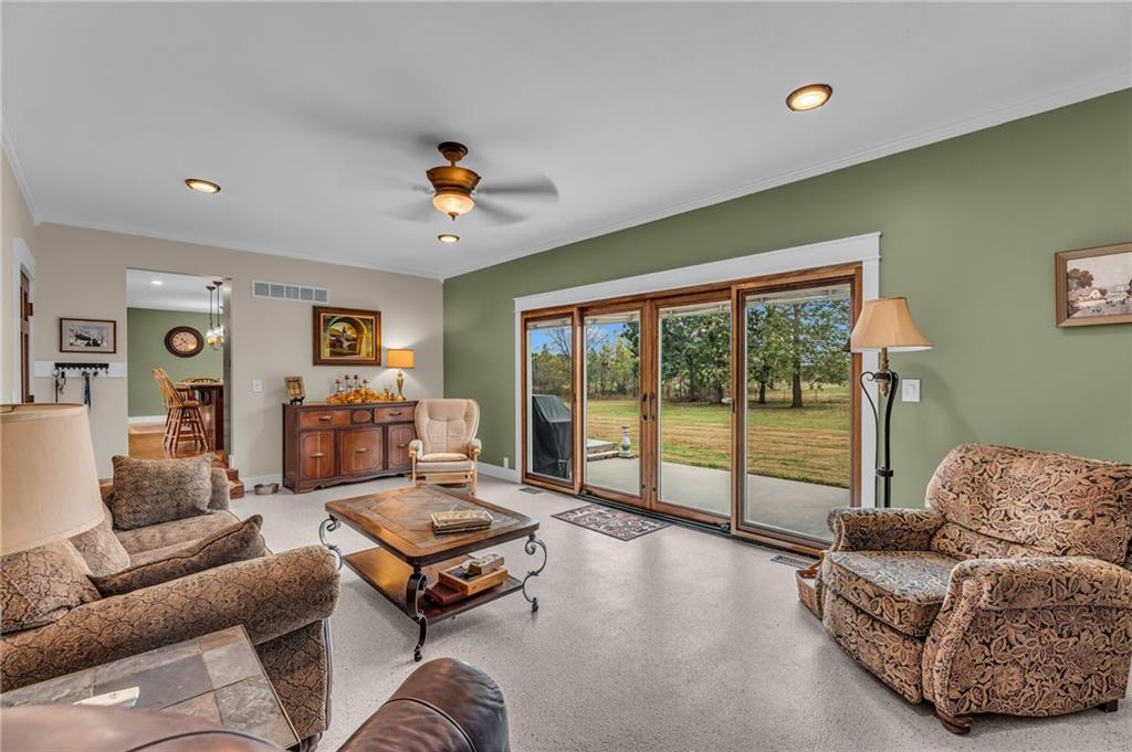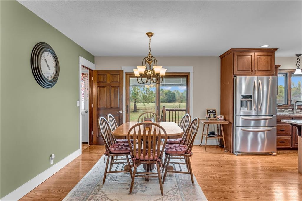 Nestled just northeast of Lawrence, this beautifully updated ranch-style home offers the perfect blend of tranquility and convenience. Located just minutes from I-70 and North Lawrence, it provides easy access to both city amenities and peaceful countryside living. The main level features four spacious bedrooms and two bathrooms. Step inside to an open floor plan that showcases a beautiful kitchen, living room, and dining area. Highlights include hardwood floors, stainless steel appliances, and energy-efficient doors throughout. The fully finished basement offers a second living space with a luxurious shower and a non-conforming bedroom—perfect for guests or a home office. Enjoy year-round comfort with a heated garage, a generous rear patio overlooking open green space—ideal for relaxing or hosting gatherings. This property is a must-see for anyone seeking space, style, and serenity just outside the city.