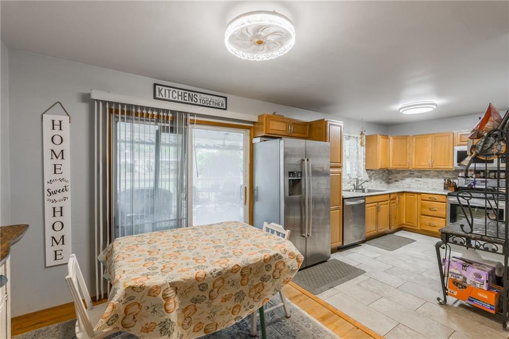 Charming raised ranch in the established Gracemor neighborhood offering 3 bedrooms, 1.5 baths, and a partially finished lower level. This well-maintained home blends comfort and function in a convenient Kansas City north location. The newer kitchen features stainless steel appliances, tile flooring, and ample cabinet storage, opening to the dining area with sliding doors to a covered composite deck, ideal for year-round enjoyment. Hardwood floors flow throughout the main level, adding warmth and character. The full bath has been nicely updated, and all appliances, including the washer, dryer, and refrigerator stay with the home. The lower level offers additional living space perfect for a family room, home office, or hobby area, along with a convenient half bath in the garage. Enjoy outdoor living in the fenced backyard with a newer storage shed, expanded patio, and plenty of room for entertaining, pets, or gardening. A two-car garage provides excellent storage and parking. Conveniently located near Ford and major highways all within the North Kansas City School District.