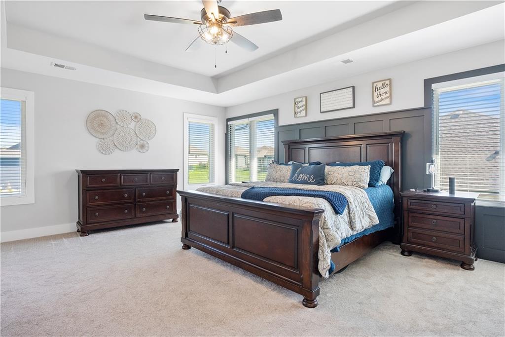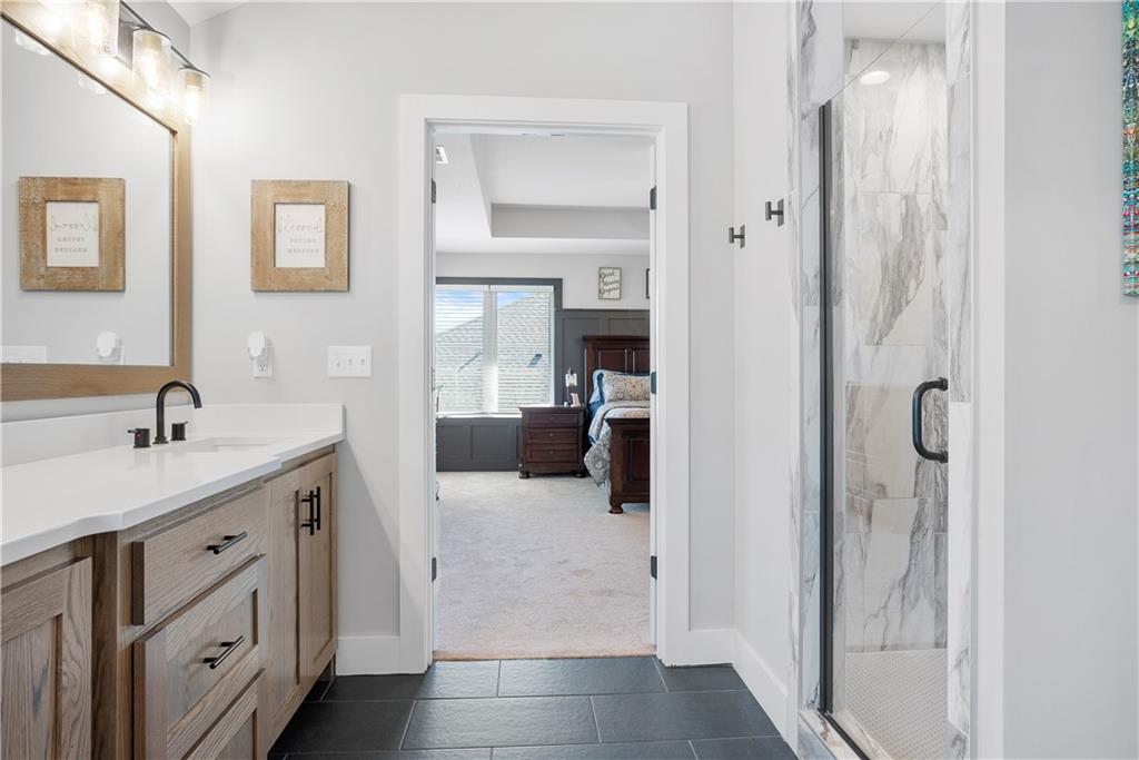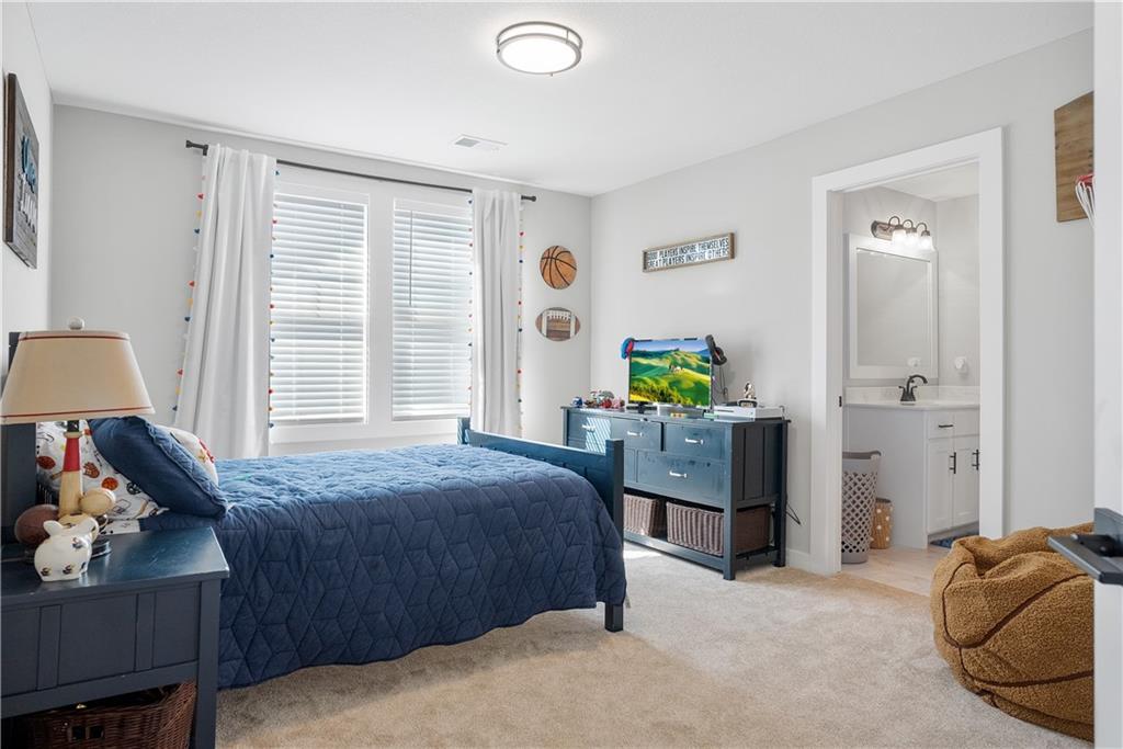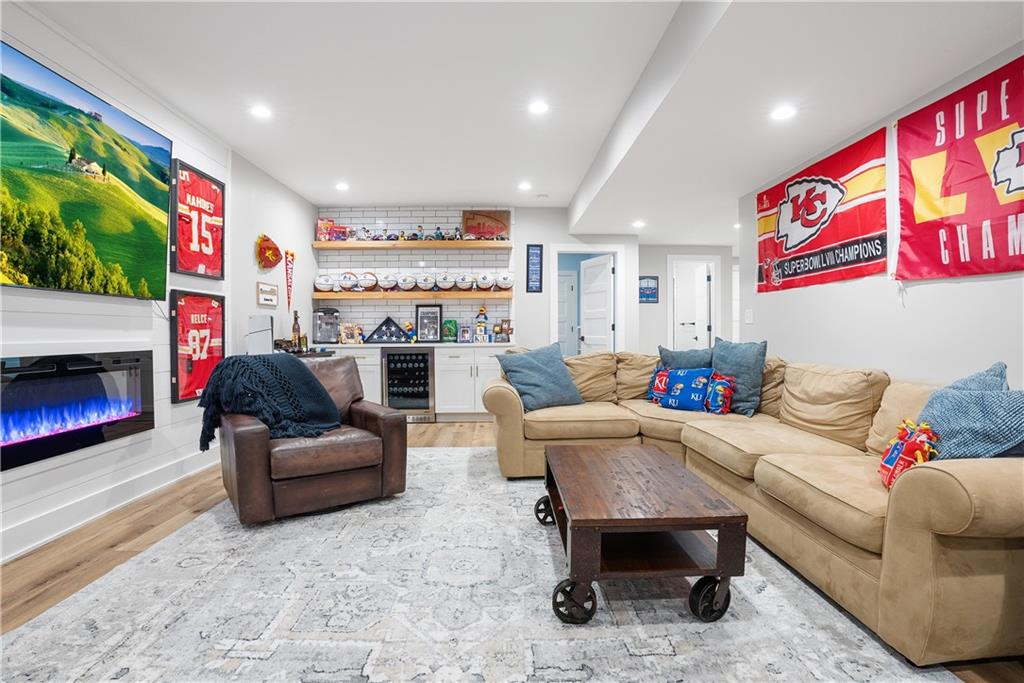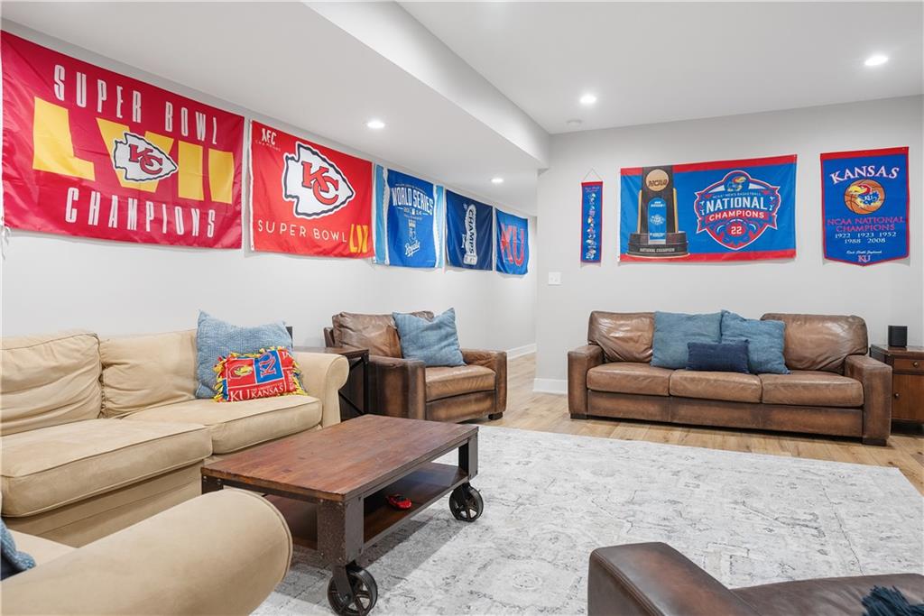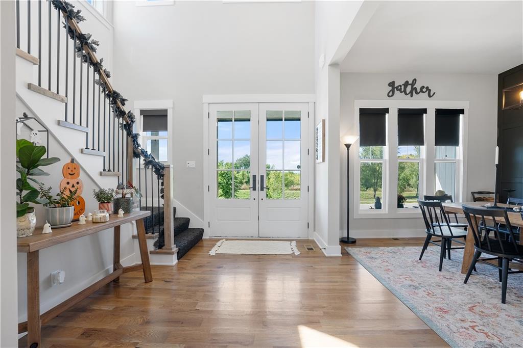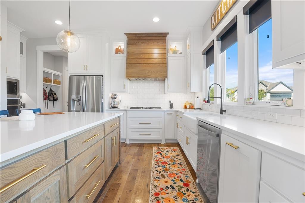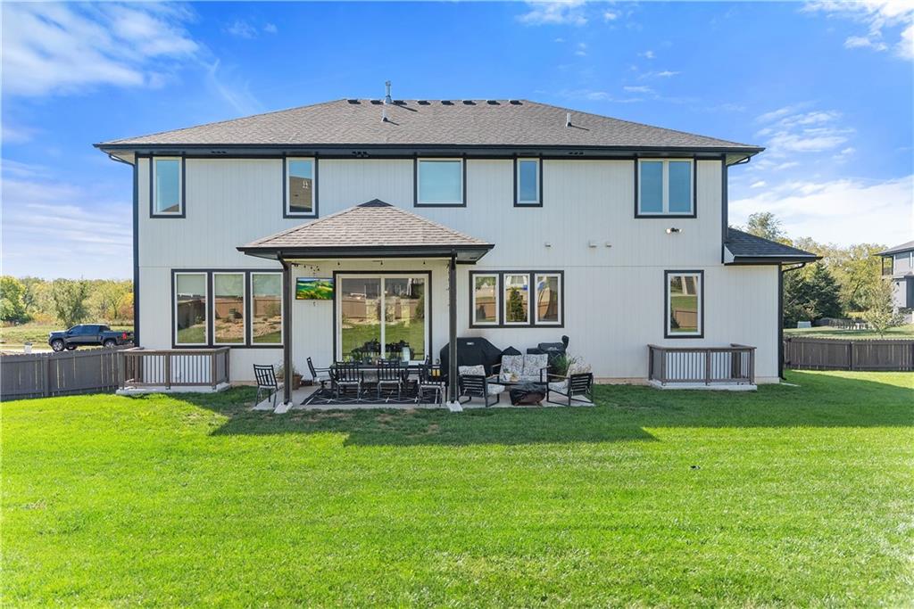 Built in 2021 and loaded with upgrades, this 7-bed/5-bath home delivers over 4,500 finished sq ft of bright, modern living. An open main level features wide-plank hardwoods, tall ceilings, lots of natural light, and a chef’s kitchen with quartz countertops, oversized island, soft-close cabinetry, walk-in pantry, and stainless appliances. Flexible main-level bedroom/guest suite could also be a separate office or playroom. The luxurious primary suite offers a spa bath with large walk-in shower, soaking tub, dual vanities, and an expansive closet. Secondary bedrooms are spacious with great storage. The finished lower level is an entertainer’s dream—huge rec/media area, wet bar, fitness/flex space, 6th and 7th bedroom, full bath, and ample storage. Outdoor living shines with a covered patio/deck and usable yard. 3-car garage, mudroom, irrigation, and smart-home touches round it out. Fantastic Shawnee location near everyday conveniences and major employers with quick access to K-7, K-10 & I-435. Minutes to Shawnee Mission Park & Lake, Mill Creek Streamway Trail, Lenexa City Center & Public Market, shopping/dining, and entertainment at The Legends/Children’s Mercy Park/Kansas Speedway. Enjoy the best of modern construction, thoughtful design, and a move-in-ready lifestyle in a highly convenient corridor.