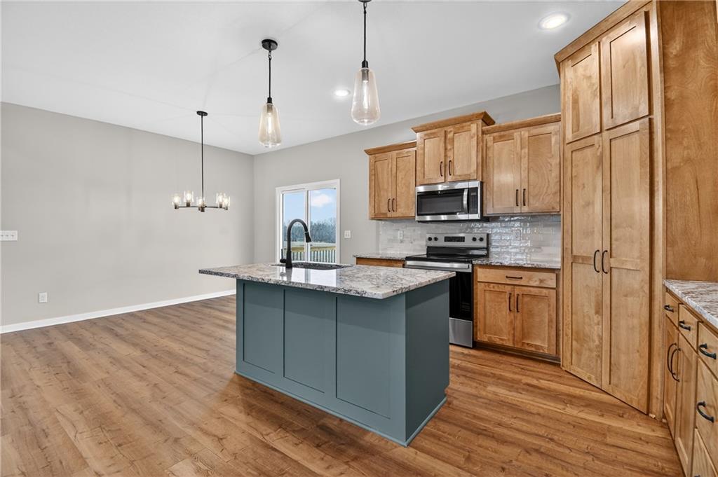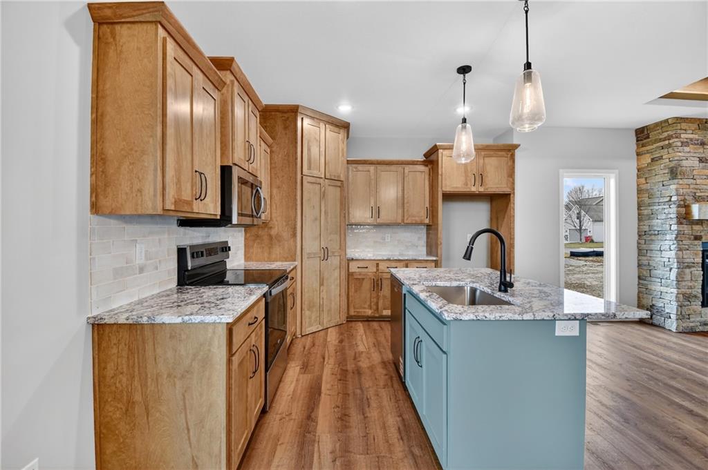 Stunning new construction ranch/reverse 1.5 with walk-out basement and 3-car garage! This 4-bedroom, 3-bath home features an open-concept main level with stained cabinetry, spacious dining area, and inviting living room with fireplace and custom ceiling detail. Convenient mudroom with boot bench and main-level laundry add everyday functionality to this home! Enjoy enhanced accessibility and thoughtful design with all main-level interior doors that are 36” wide, including the primary bedroom, bathroom, and closet doors! The primary suite includes a stunning accent wall, dual walk-in closets, and a beautifully tiled walk-in shower. The Finished lower level features two additional bedrooms, full bath, large family room, and walk-out to covered patio. Even with the additional living space you can benefit from the ample storage spaces offered in the basement! Do not miss your opportunity to enjoy quality craftsmanship and modern finishes inside and out with this new construction home!