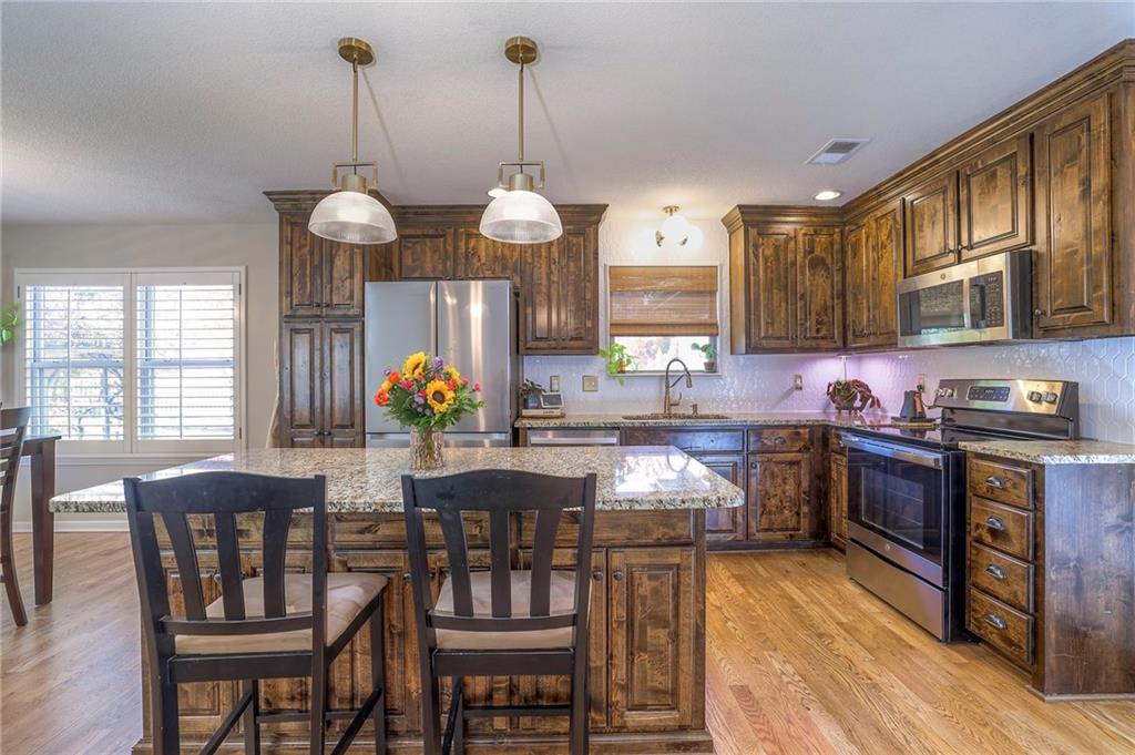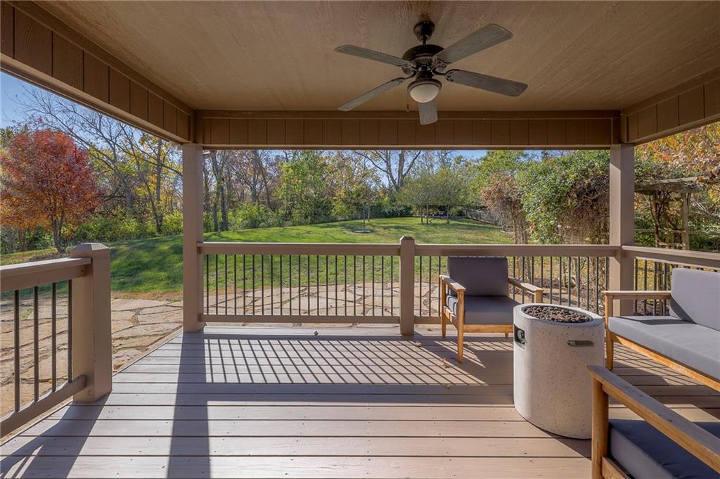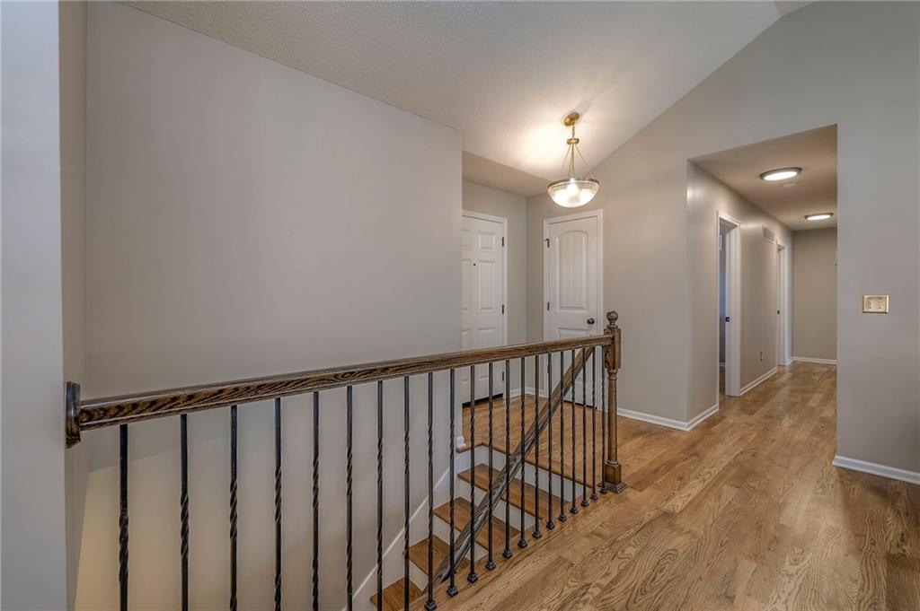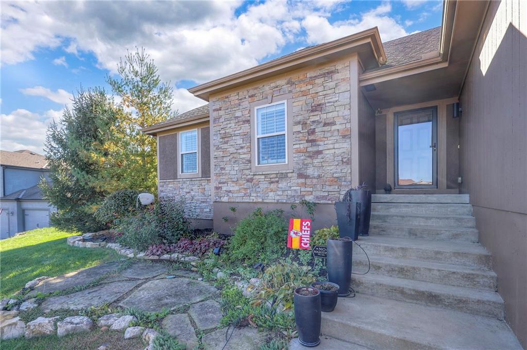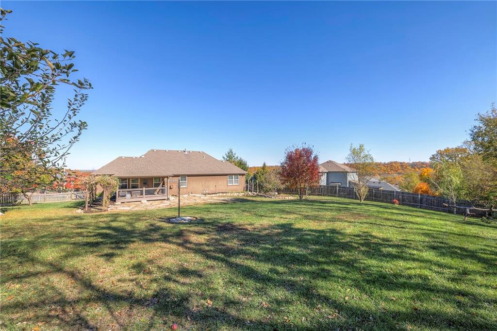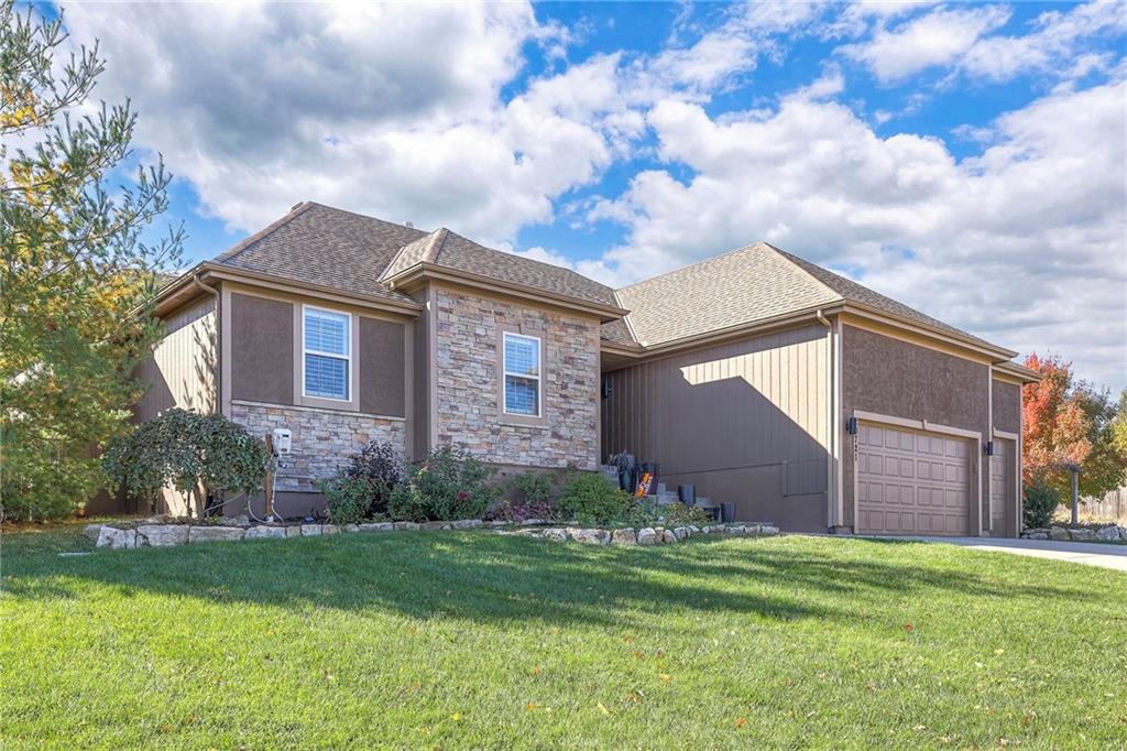 Lovely ranch home perfectly situated on an oversized .54-acre corner lot in Shawnee! Step inside to discover beautifully refinished hardwood floors throughout the main level, fresh interior paint, and new light fixtures that make the home feel bright and updated. The open layout seamlessly connects the living room, kitchen, and dining area for effortless everyday living. The living room features a vaulted ceiling, plantation shutters, a cozy fireplace, and wonderful natural light, creating a warm and peaceful space to relax. The kitchen is equally impressive, featuring granite countertops, stainless steel appliances, a large island, and ample pantry space—perfect for both cooking and entertaining. Step outside to a covered deck overlooking your large, fenced backyard, which backs onto a private, treed area. Whether you’re hosting gatherings or enjoying your morning coffee, this outdoor setting offers beauty and tranquility. The primary suite features a vaulted ceiling, a walk-in closet, and an en-suite bath with a double vanity, shower, and a large soaking tub. Two additional main-level bedrooms include hardwood floors and generous closet space. The finished basement expands your living space with a spacious rec room ideal for movie nights, watch parties, or game days. A fourth bedroom with a huge walk-in closet and updated full bath, plus a bonus office or workout room, offers even more flexibility. There’s also abundant storage or workshop space for all your extras. Laundry hookups are available on both the main level and in the basement for added convenience. The three-car garage features tall ceilings and ample space, even accommodating a full-size truck. Fantastic location close to Shawnee Mission Parkway amenities, City Center’s new development at 87th Street, and zoned for the De Soto School District, including Mill Valley High School. Enjoy the tree-filled scenery that makes this part of Shawnee so special. Make this beautifully updated ranch home yours