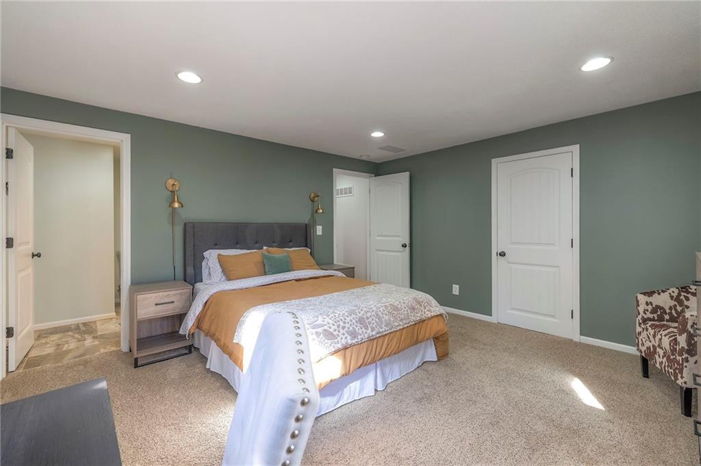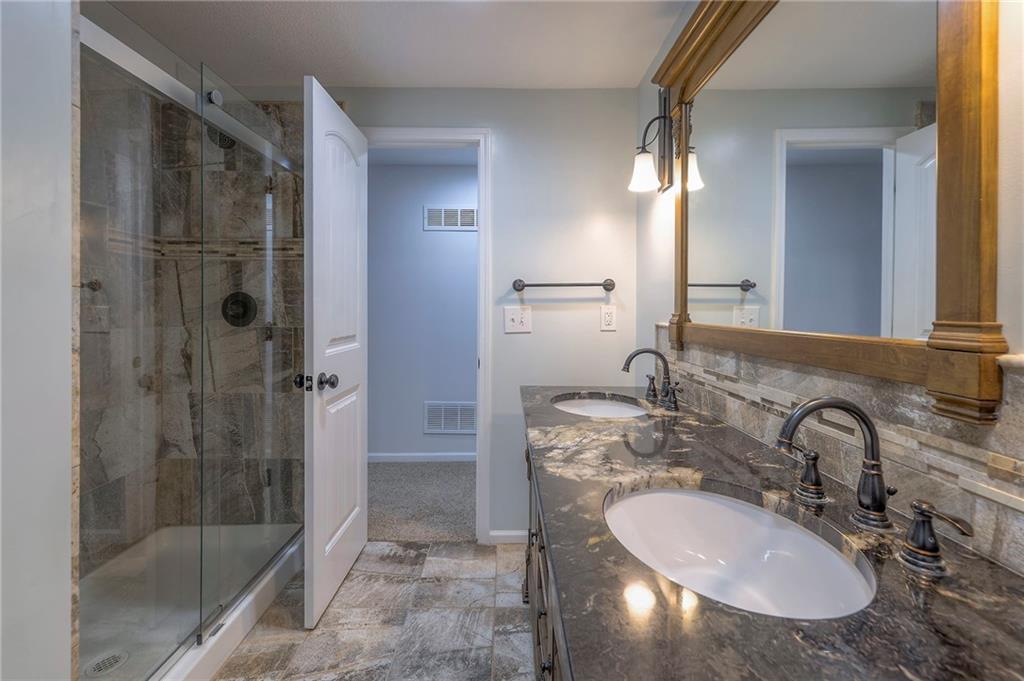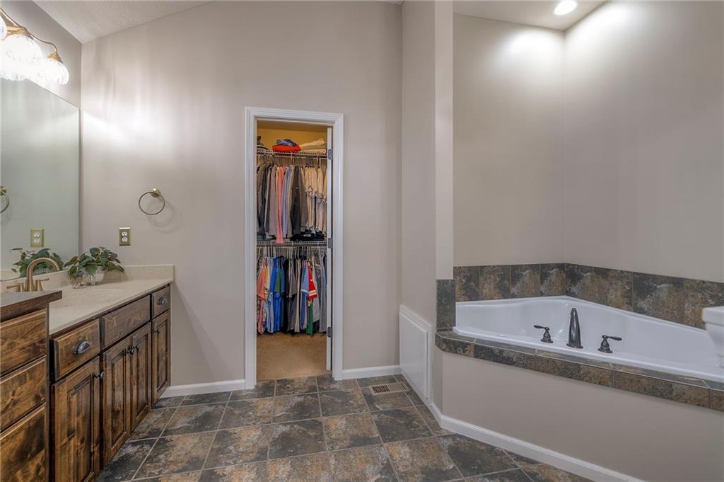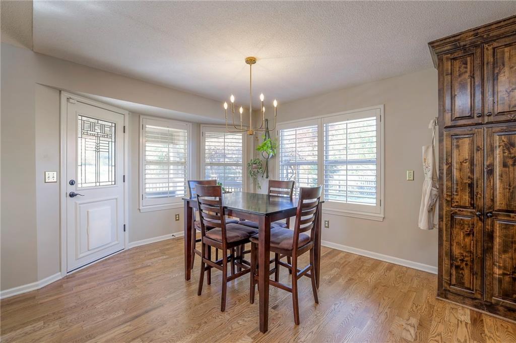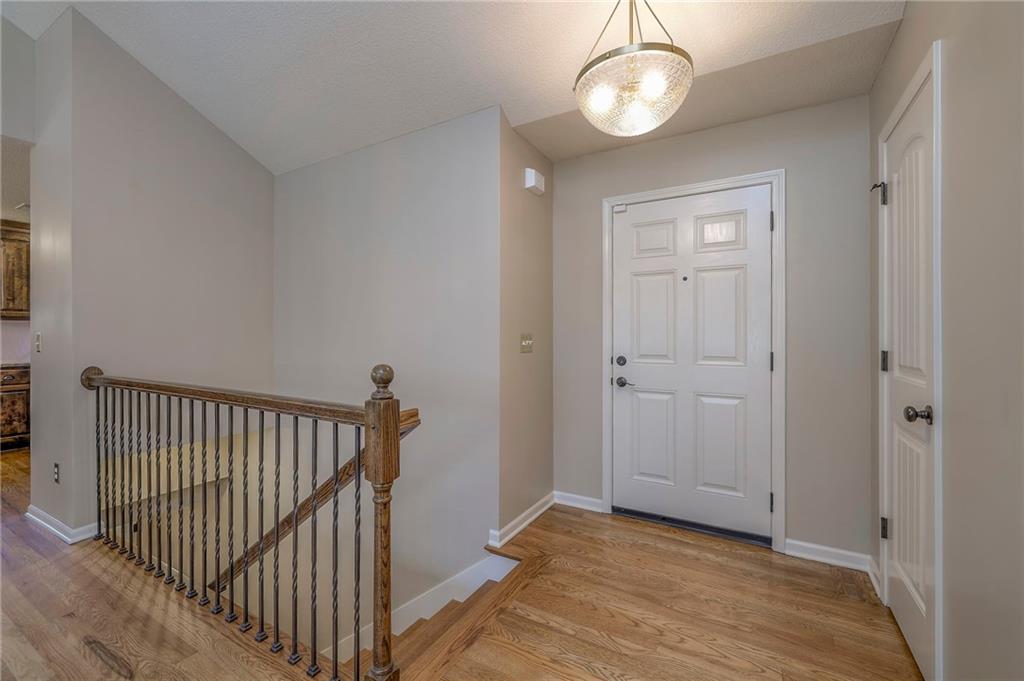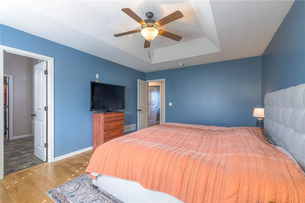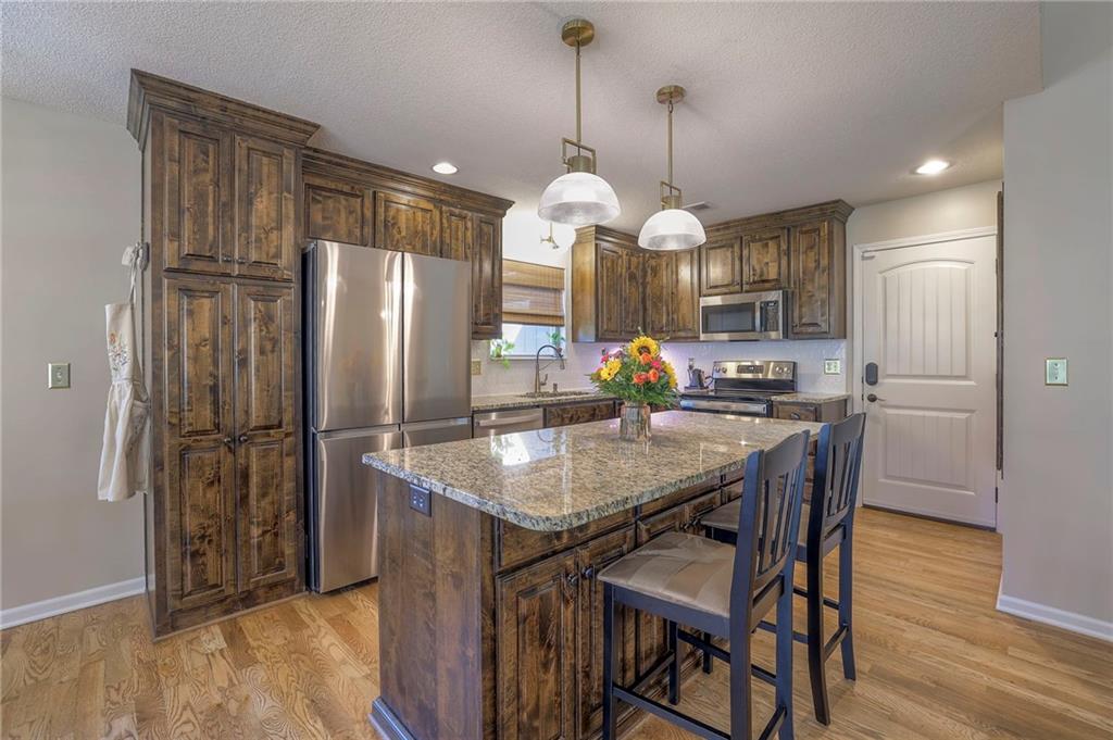 Lovely ranch home perfectly situated on an oversized .54-acre corner lot in Shawnee! Step inside to discover beautifully refinished hardwood floors throughout the main level, fresh interior paint, and new light fixtures that make the home feel bright and updated. The open layout seamlessly connects the living room, kitchen, and dining area for effortless everyday living. The living room features a vaulted ceiling, plantation shutters, a cozy fireplace, and wonderful natural light, creating a warm and peaceful space to relax. The kitchen is equally impressive, featuring granite countertops, stainless steel appliances, a large island, and ample pantry space—perfect for both cooking and entertaining. Step outside to a covered deck overlooking your large, fenced backyard, which backs onto a private, treed area. Whether you’re hosting gatherings or enjoying your morning coffee, this outdoor setting offers beauty and tranquility. The primary suite features a vaulted ceiling, a walk-in closet, and an en-suite bath with a double vanity, shower, and a large soaking tub. Two additional main-level bedrooms include hardwood floors and generous closet space. The finished basement expands your living space with a spacious rec room ideal for movie nights, watch parties, or game days. A fourth bedroom with a huge walk-in closet and updated full bath, plus a bonus office or workout room, offers even more flexibility. There’s also abundant storage or workshop space for all your extras. Laundry hookups are available on both the main level and in the basement for added convenience. The three-car garage features tall ceilings and ample space, even accommodating a full-size truck. Fantastic location close to Shawnee Mission Parkway amenities, City Center’s new development at 87th Street, and zoned for the De Soto School District, including Mill Valley High School. Enjoy the tree-filled scenery that makes this part of Shawnee so special. Make this beautifully updated ranch home yours