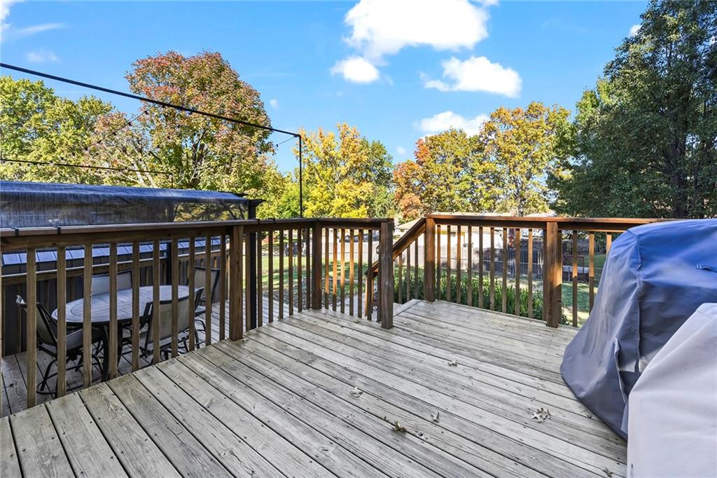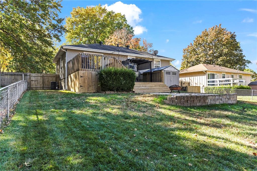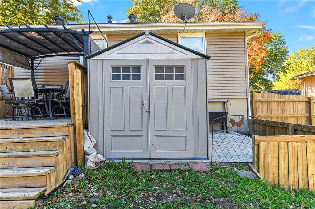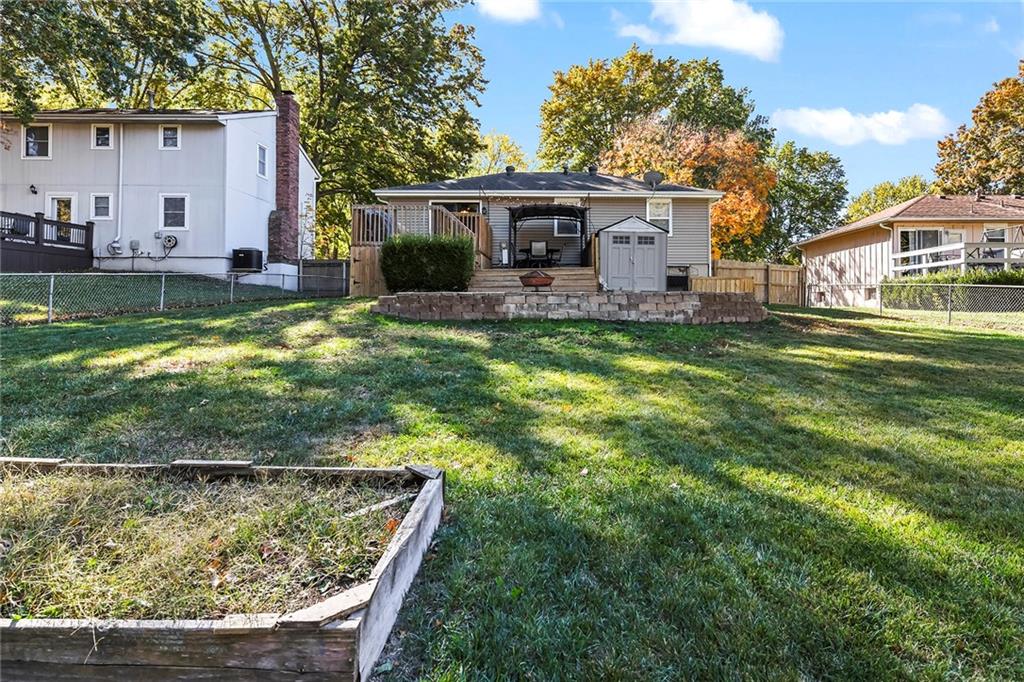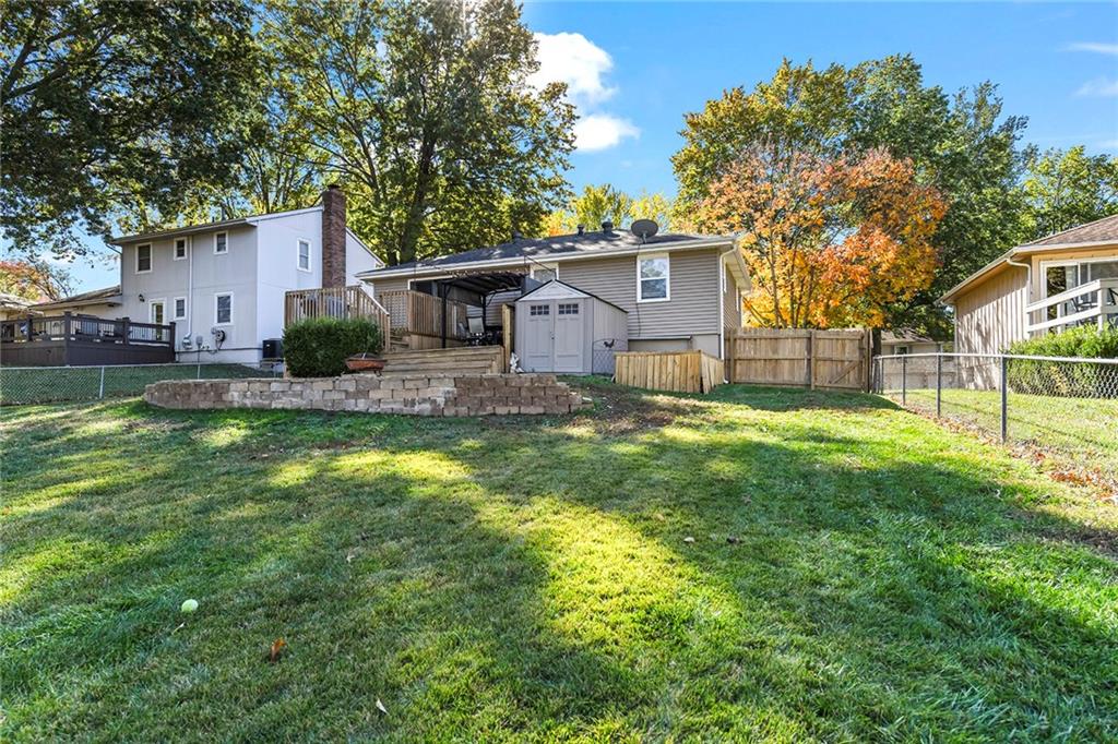 This darling Blue Springs raised ranch is cute as a button and loaded with great features. Freshly updated kitchen with new LVP flooring, painted cabinets and new granite countertops are just the start. Both bathrooms have also had recent renovations, new LVP flooring in all bedrooms, updated lighting and main level carpet just 2 years old. Finished lower level with additional rec or office space. Outside you will find an entertaining paradise with 2-tiered deck, pergola that stays with the home, plus patio. Don't miss the additional storage under the deck and the storage shed stays, too. Fenced yard offers plenty of space for kids or pets to play. Vinyl windows and siding make exterior maintenance a breeze. The convenient location of this home puts you just minutes from shopping and highway access. Two blocks from William Bryant elementary and a stone's throw from Blue Springs South High School and YMCA.