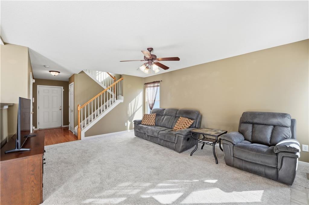 Don't miss out on this one! This is a great floorplan with 2 bedrooms and 2 baths on 2nd floor plus spacious loft for office or media area. Main level has large living room with gas fireplace, half bath and eat in kitchen that walks out to the outdoor patio and yard. Large unfinished daylight basement for storage or future finish. Updates include: brand new carpet throughout plus new vinyl plank in the kitchen plus furnace and A/C new in 2022 and hot water heater in 2024. Great location with easy highway access and near shopping and great dining. Liberty schools.