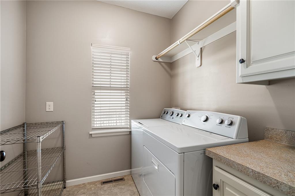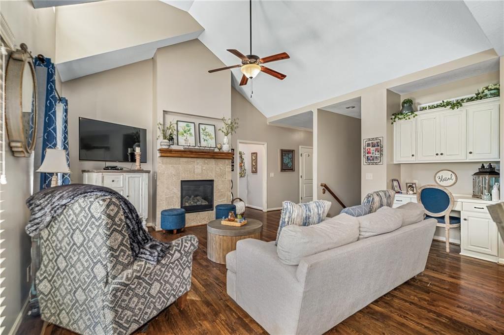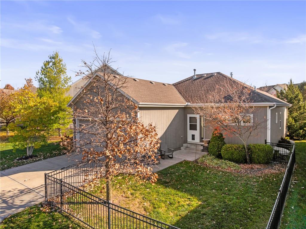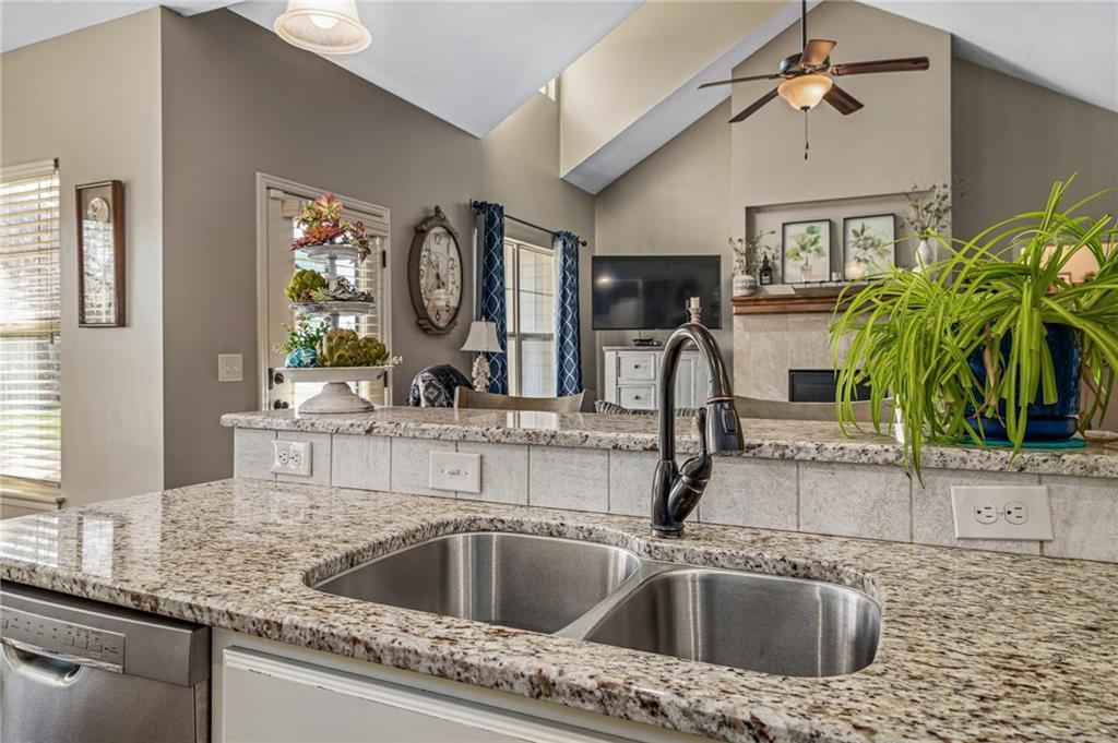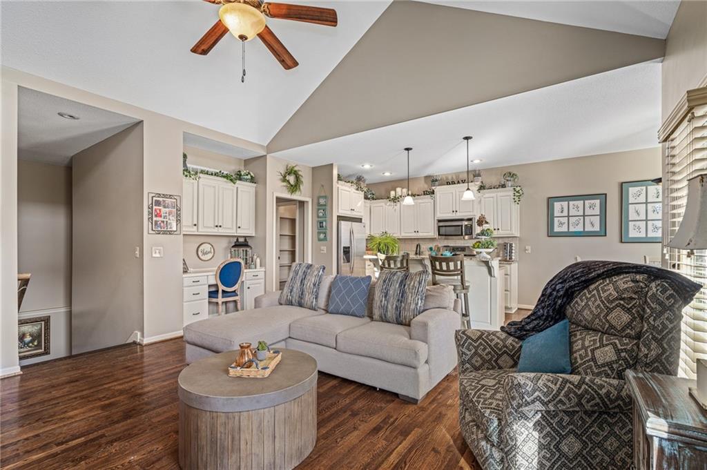 Welcome Home to Comfort, Style & Effortless Living! This stunning 3-bedroom, 2.5-bath Home delivers that “ahhh” feeling from the moment you walk in. You’ll instantly notice the vaulted ceilings, gleaming hardwood floors, and the cozy gas fireplace that anchors the living room—perfect for curling up with coffee or your favorite Kansas City Chiefs game. Step into the modern kitchen featuring granite countertops, a spacious island, and a sun-drenched dining area surrounded by windows—because every meal deserves a little natural light! The primary suite is your own private retreat, new carpet now with a redesigned spa-worthy bathroom showcasing a roomy glass-enclosed shower, soaking tub, elegant vanity area, and large walk-in closet for all your wardrobe wins. Downstairs, discover two more spacious bedrooms—each with its own walk-in closet—connected by a Jack & Jill bathroom with double vanities, ideal for guests or family. Enjoy peaceful neighborhood views and trails just outside your door. This Home blends low-maintenance living with high-style comfort, offering the perfect balance between convenience and luxury. Amenities are all the 4 pools, tennis courts, pickleball courts ,trails, and amenities of the Stonebridge Area! So go ahead—unpack, relax, and start loving where you live!