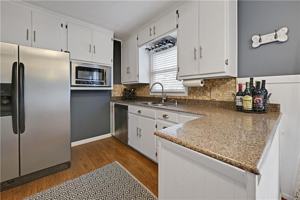 Much to love in this perfectly located Overland Park true ranch home! Gleaming hardwoods throughout, plenty of smooth Quartz counters with painted cabinets going to ceiling for extra storage, stainless steel appliances, newer plumbing, newer Furnace, updated windows, and 7-year old roof! Washer/dryer and refrigerator stay! Fully-fenced spacious backyard to enjoy summer fun and beautiful fireplace in livingroom for cozy evenings inside! Good closet space and attic space for extra storage! Don't let this one slip away!